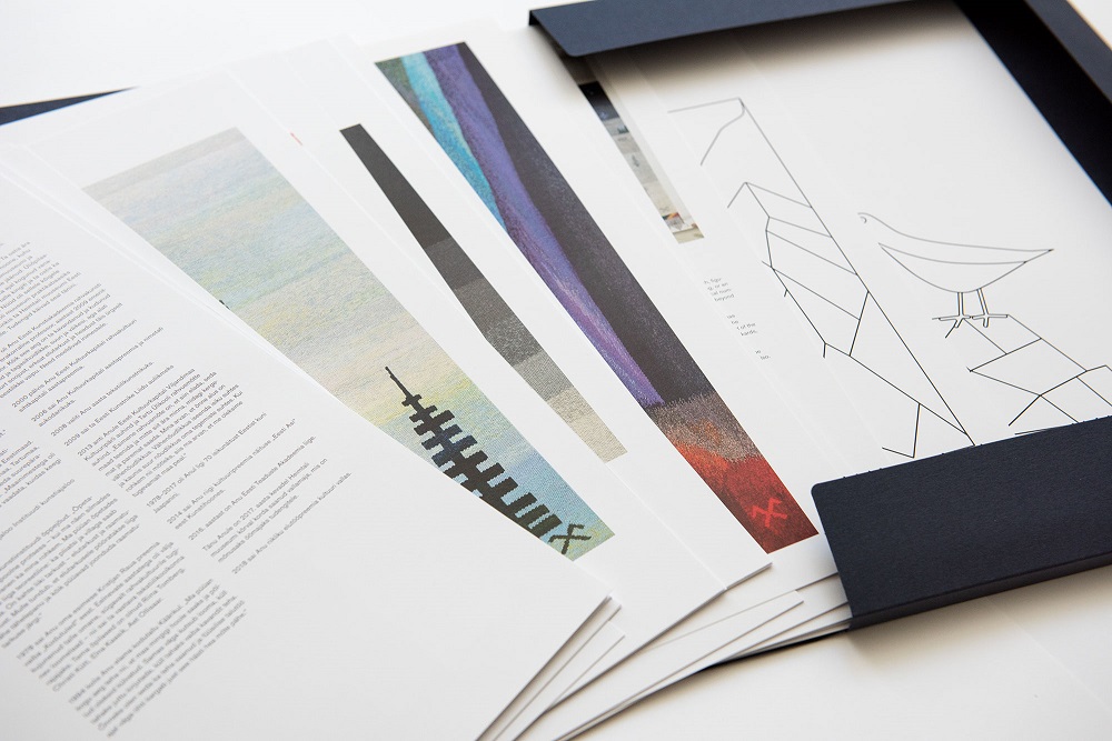 „Kujunduses saime inspiratsiooni varem laialt levinud kunstnikumappidest. Idee teha vaipadest traditsioonilise kataloogi asemel mapp tuli Anu Raualt endalt, kuid olime juba aastaid oodanud võimalust justnimelt kunstniku mappi kujundada,“ ütles Marje Eelma.