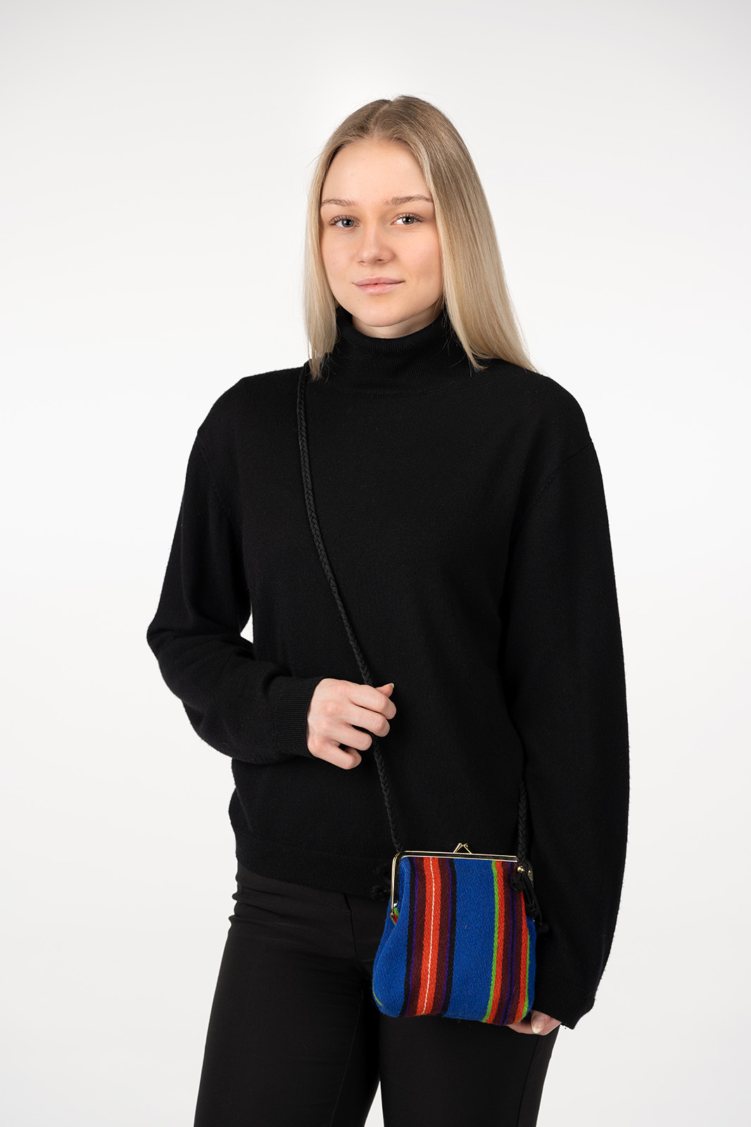 Kaunis villane õlakott. Koti mõõdud on 170×190 mm.
