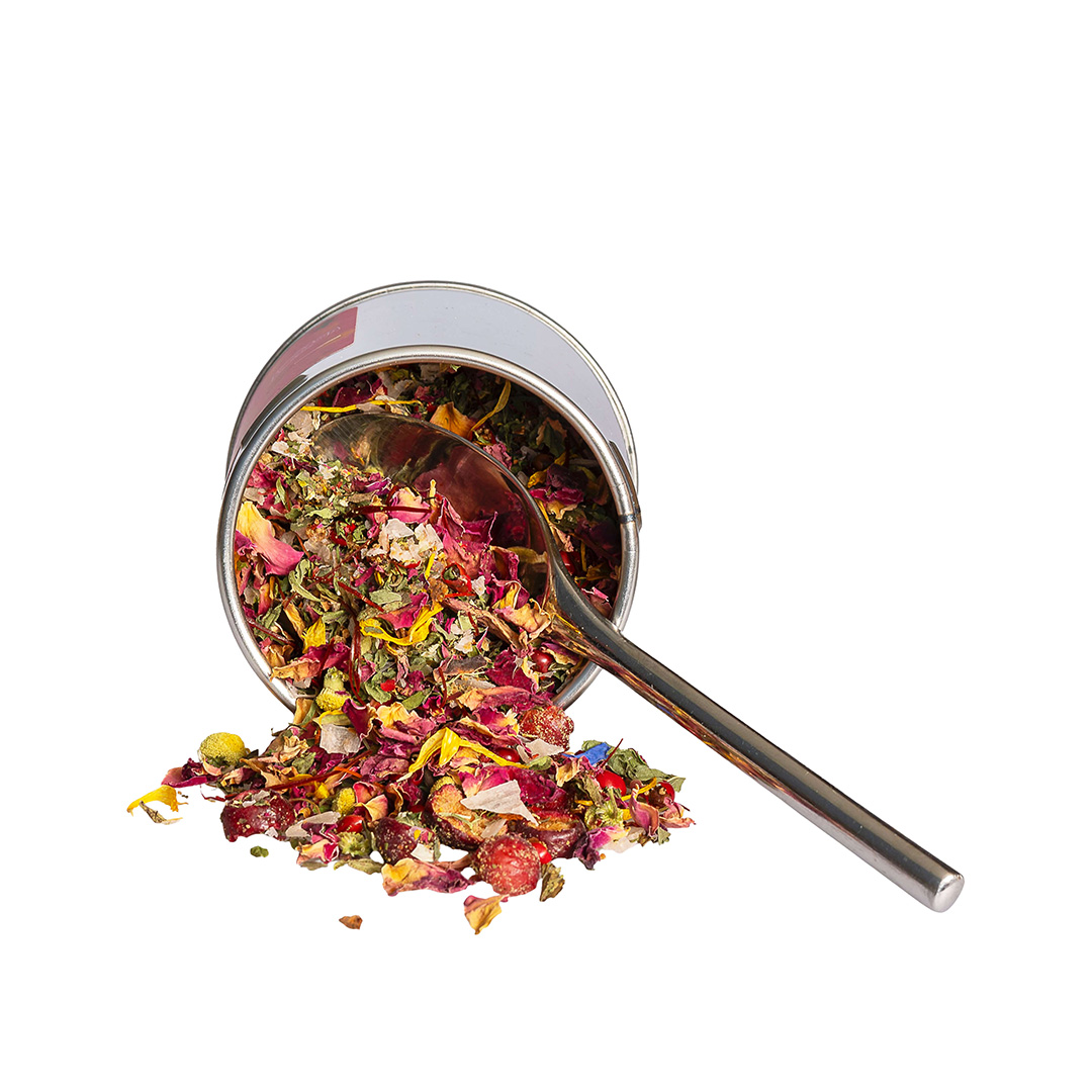 Koostisosad: Himalaaja soolahelbed 15%, jõhvikas, roosiõied, roosuhkur, münt, basiilik, saialill.