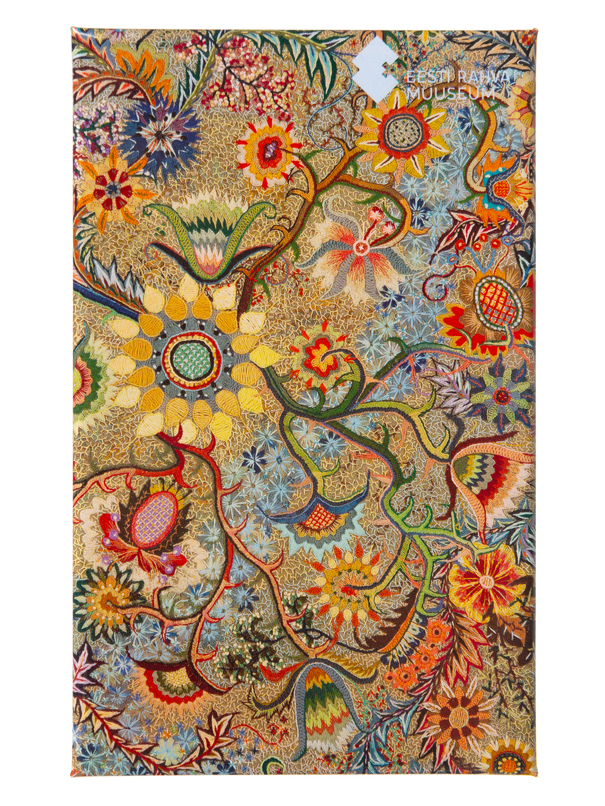 Magneti kujunduses on kasutatud Eesti Rahva Muuseumi kogudes oleva teki detaili (ERM A 878:1).