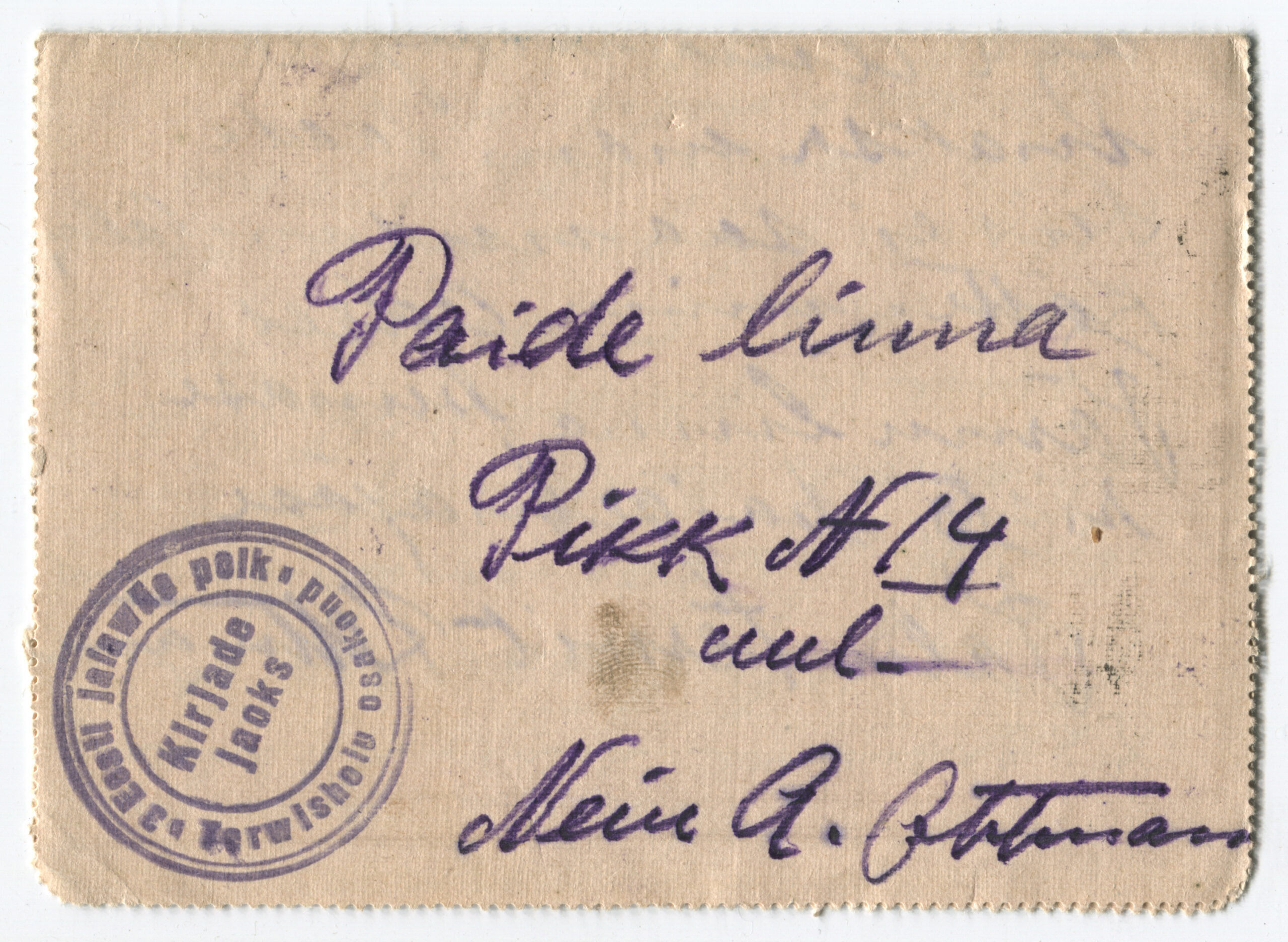 7. jalaväe polgu kortermeistri ladu asus Võrus Tartu tn 15.8 JALAWÄE POLK / Kirjadele