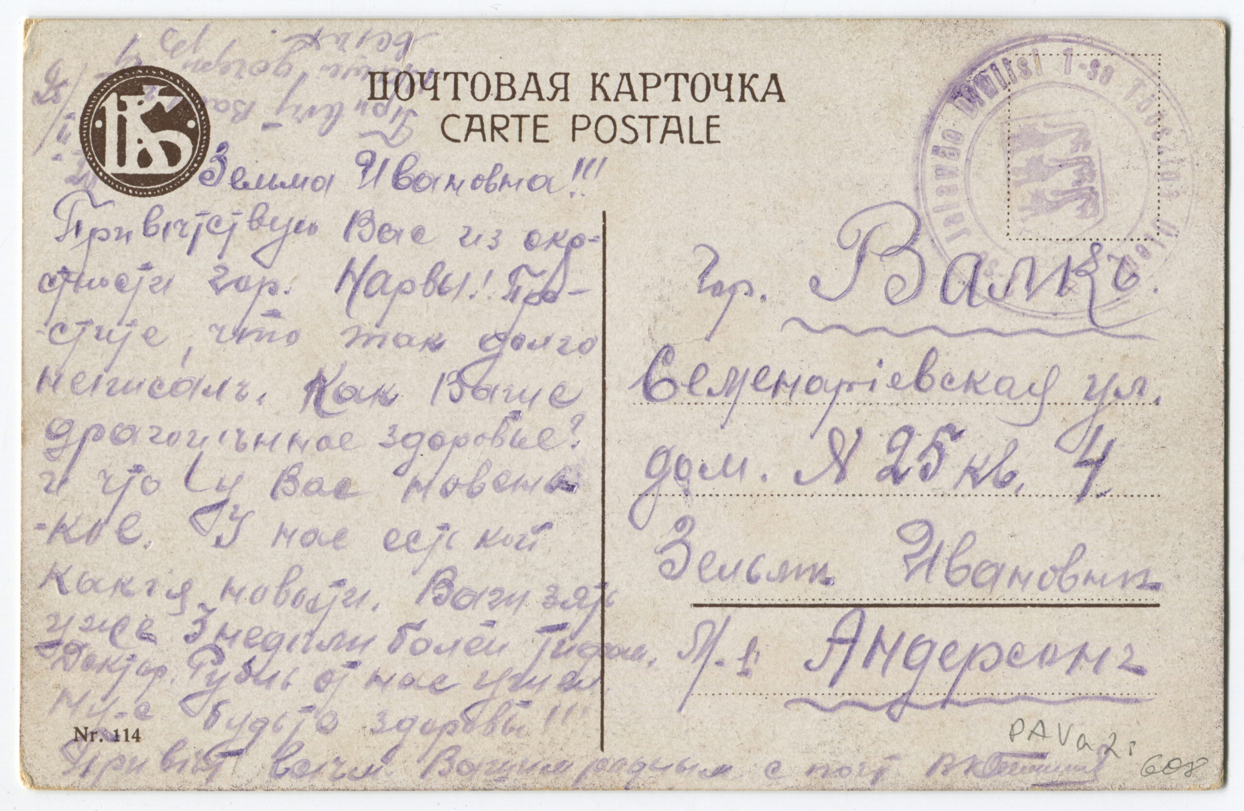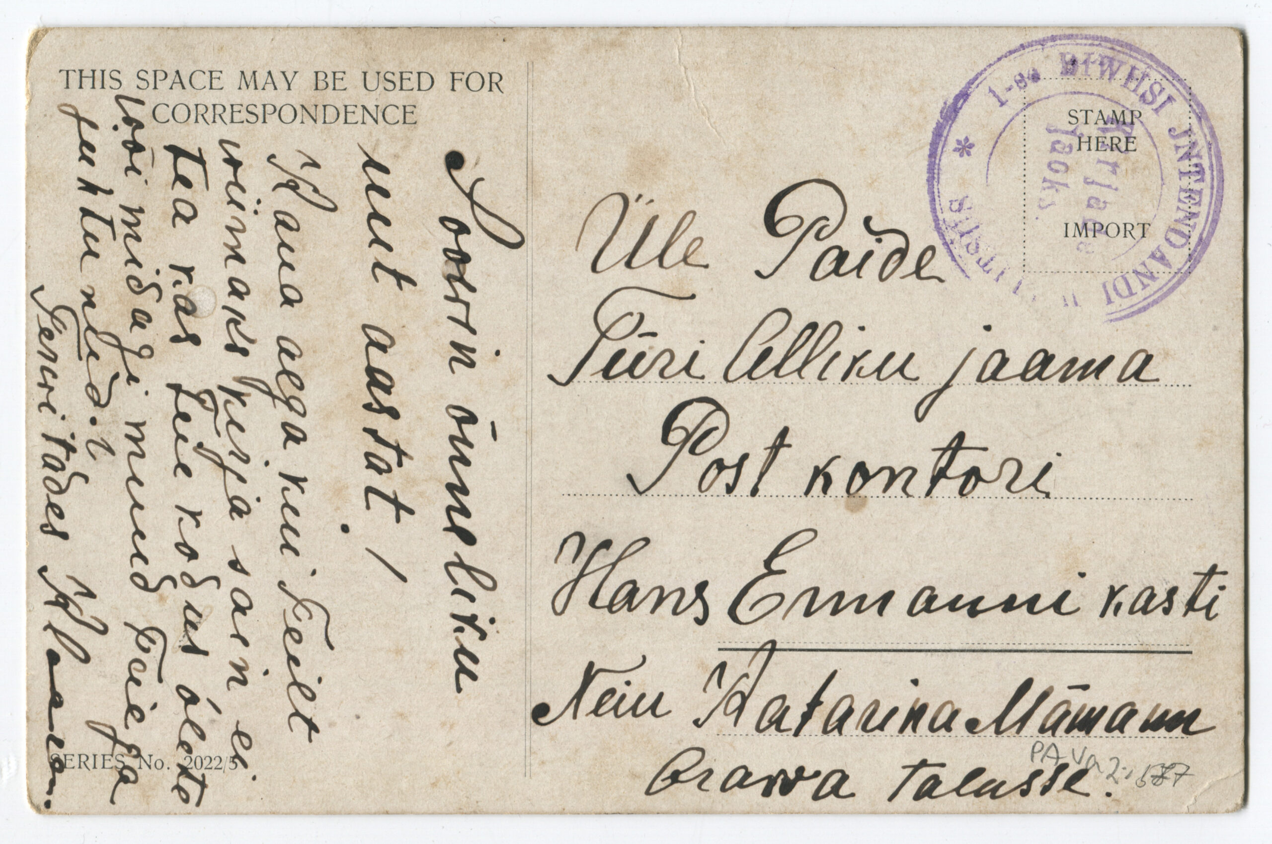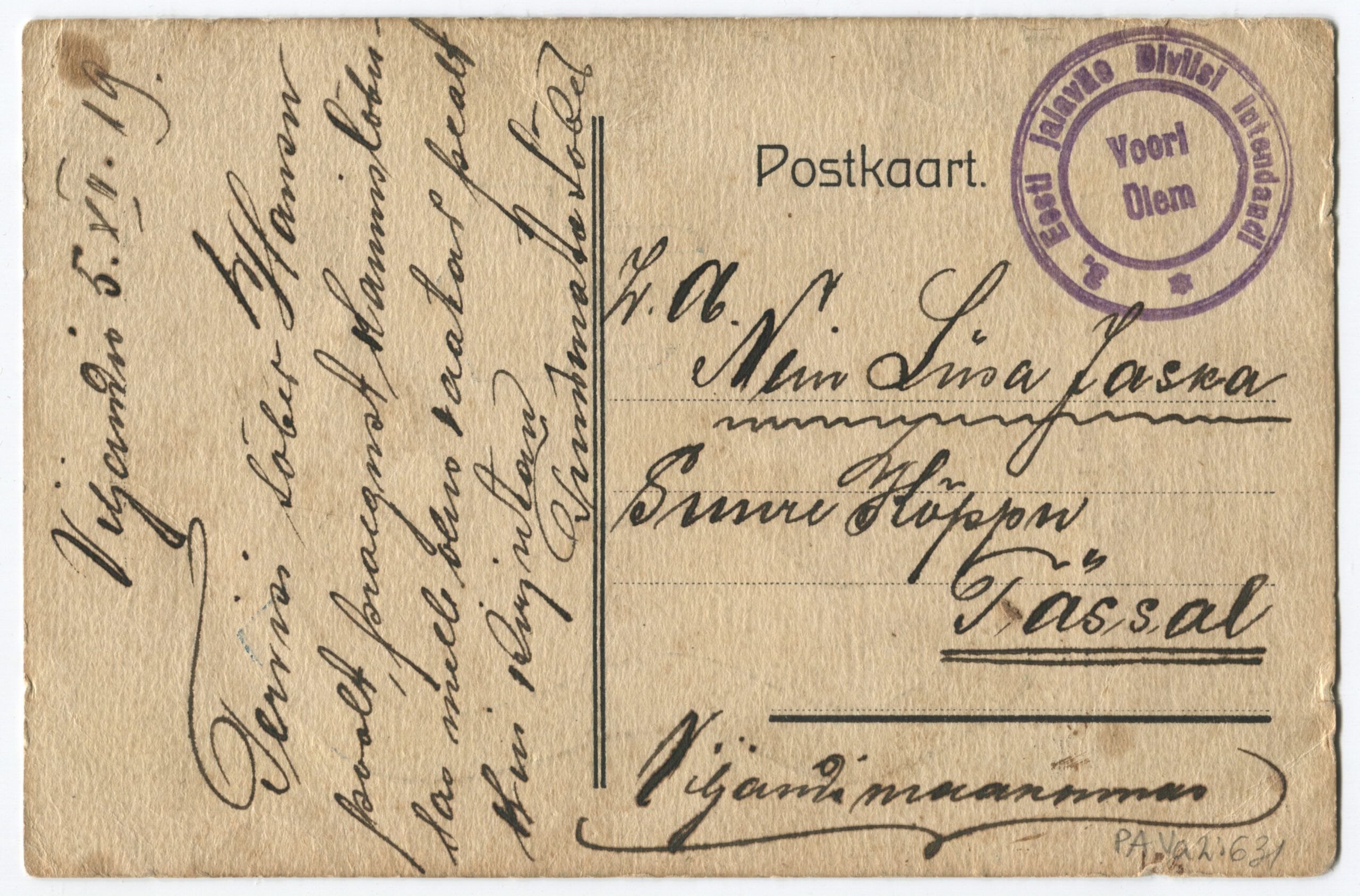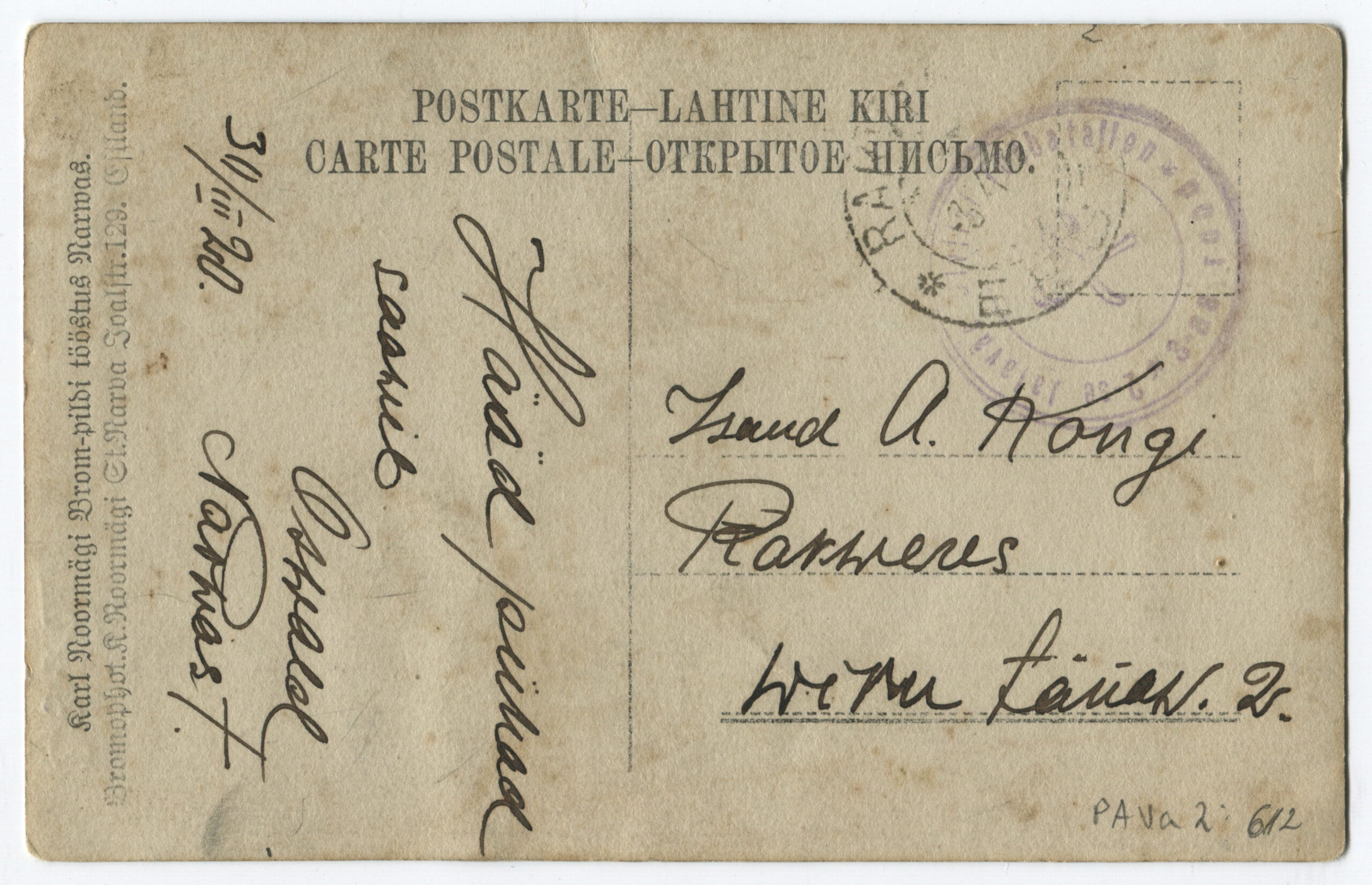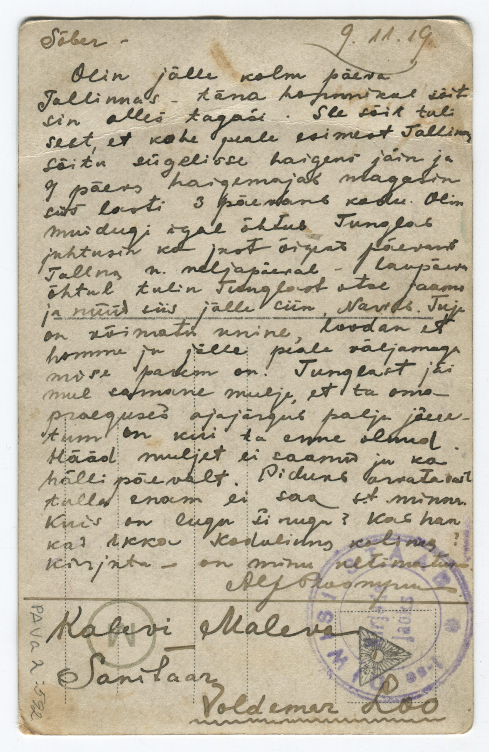 Kiri on saadetud päev pärast Vabadussõja lõppemist. Kalendertempel: Abja, 3.02.1920