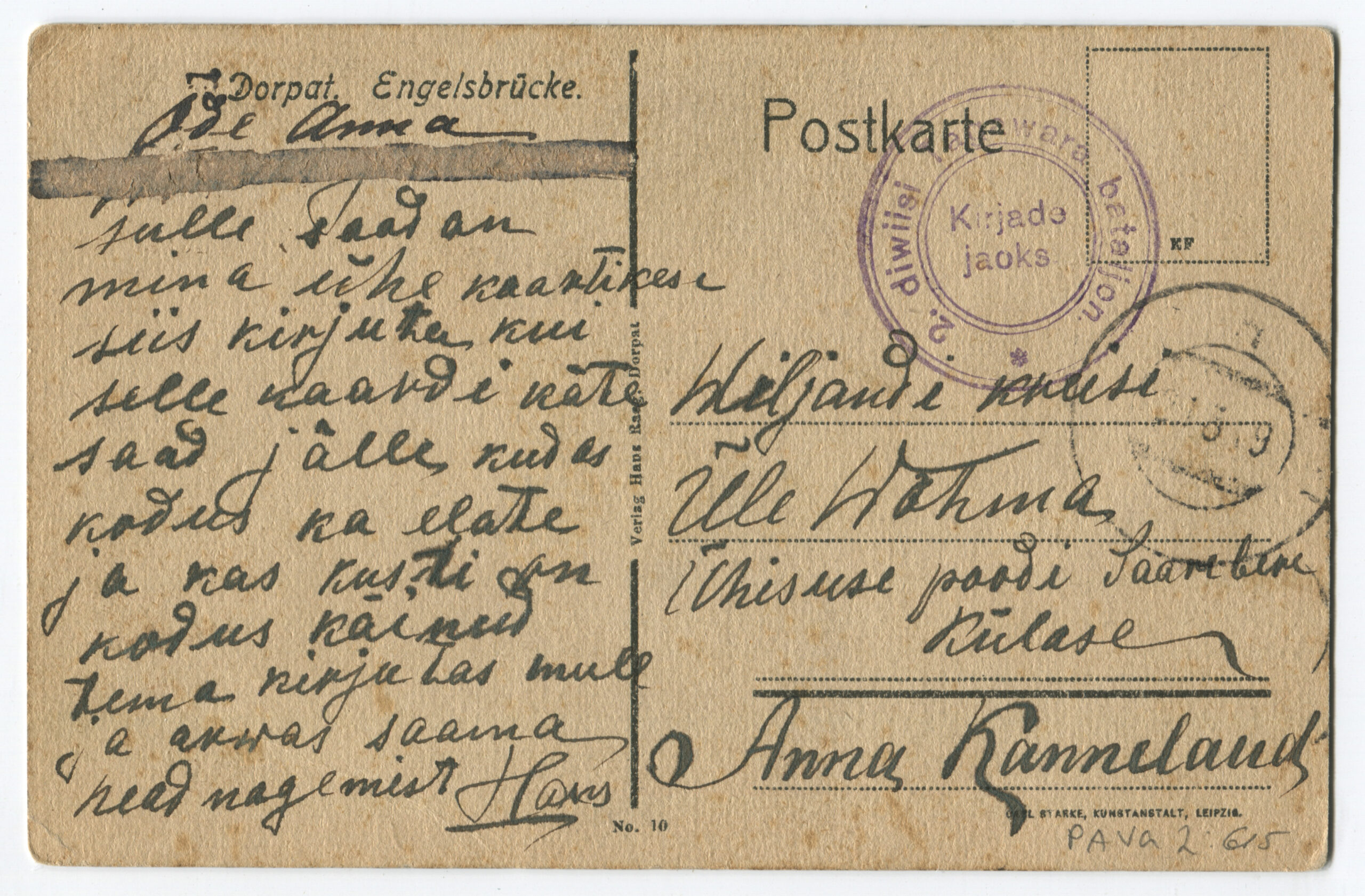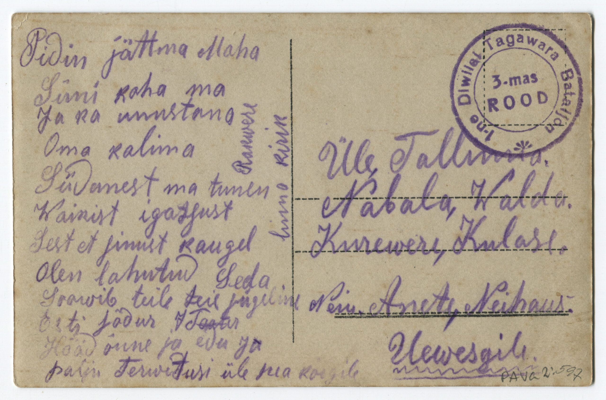 ERMTempel: 2. diwiisi Tagawara bataljoni / Kirjade jaoks