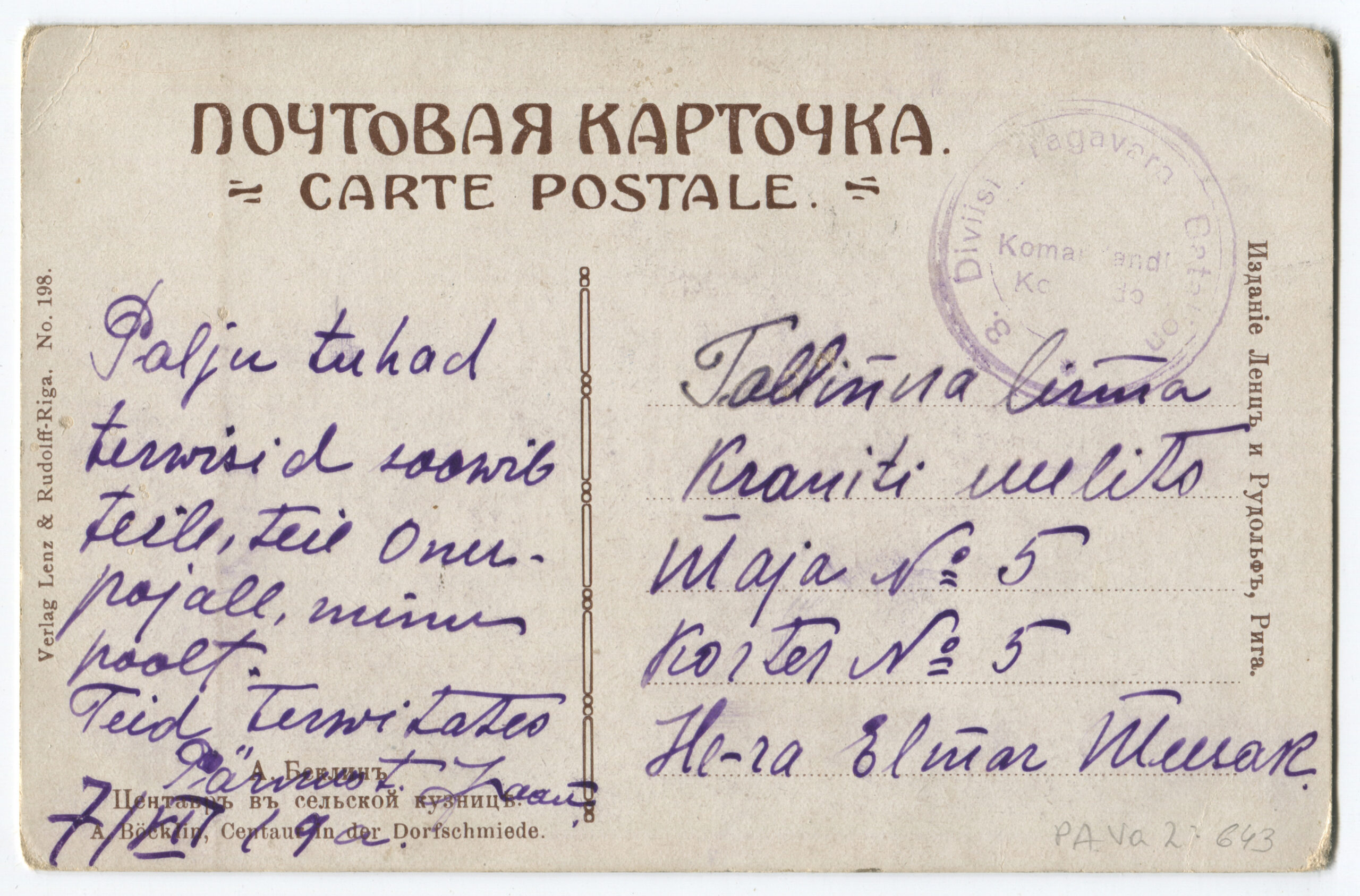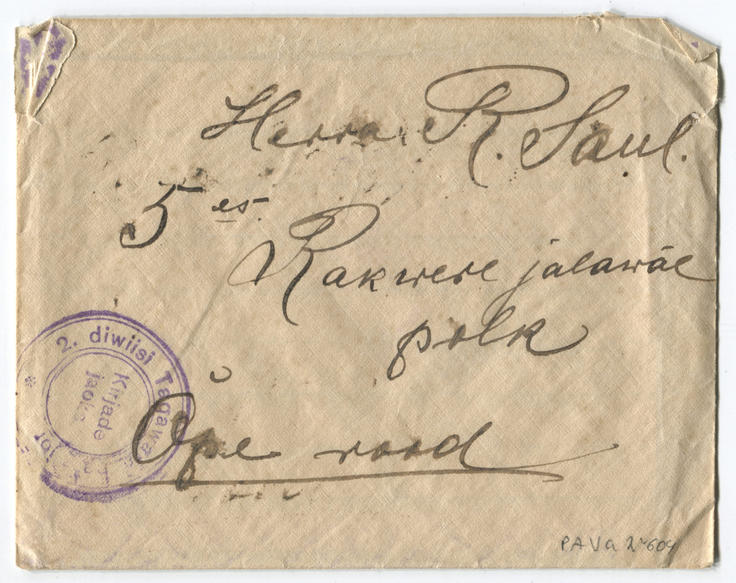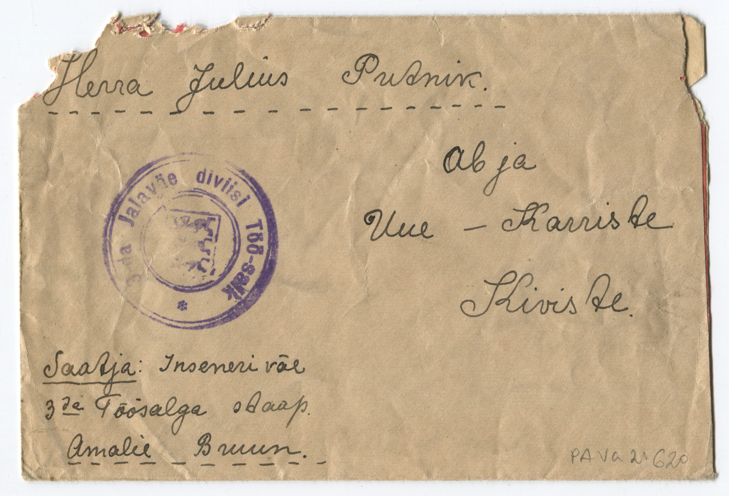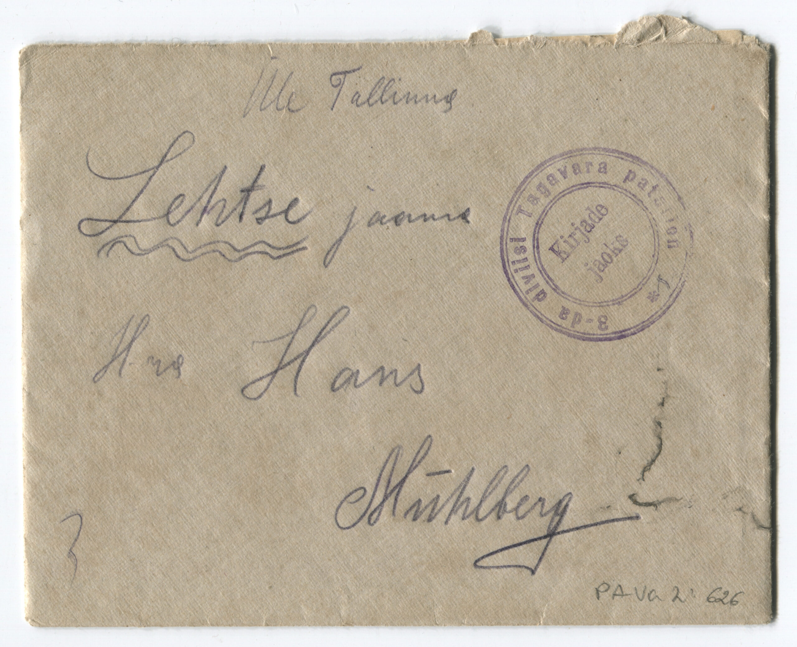 ERMTempel: 3 jalaväe diviisi Intendandivalitsus / Kirjadele