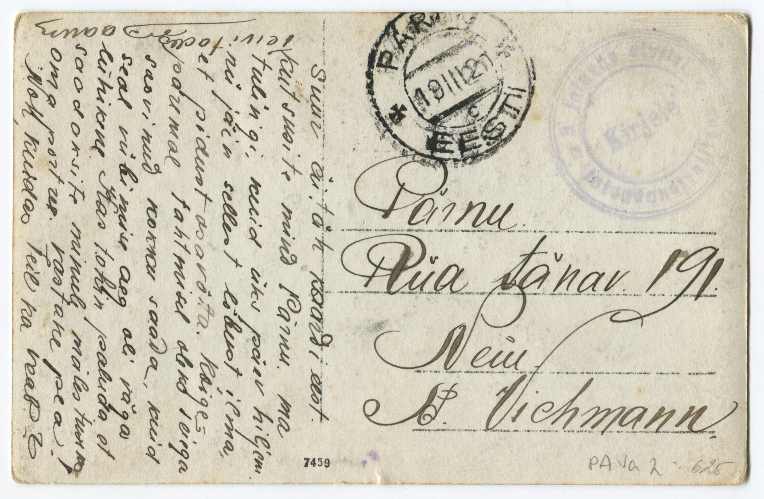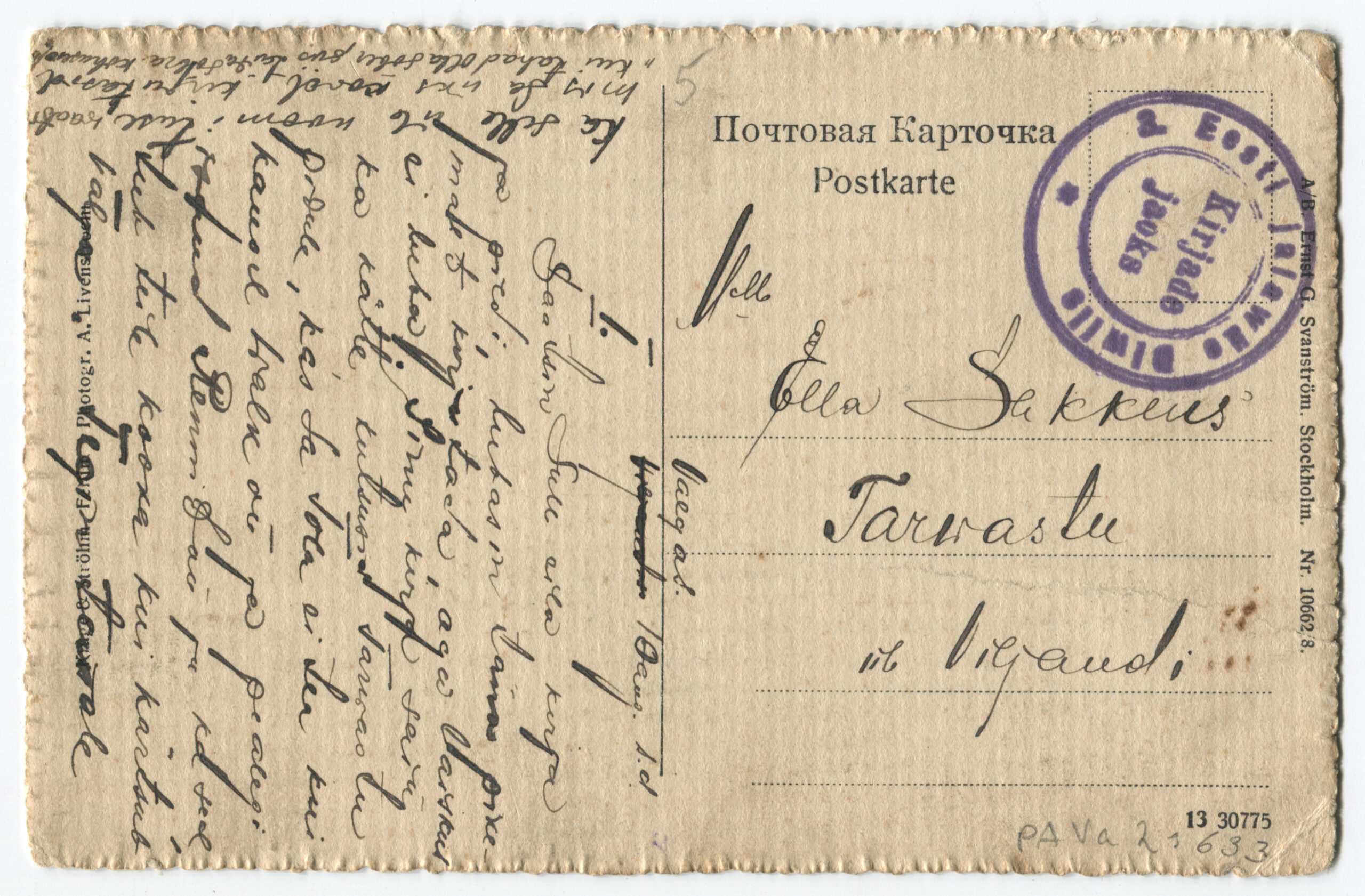 Kiri on saadetud 11.03.1919 Rakverest 1. suurtükiväepolgu staapi.