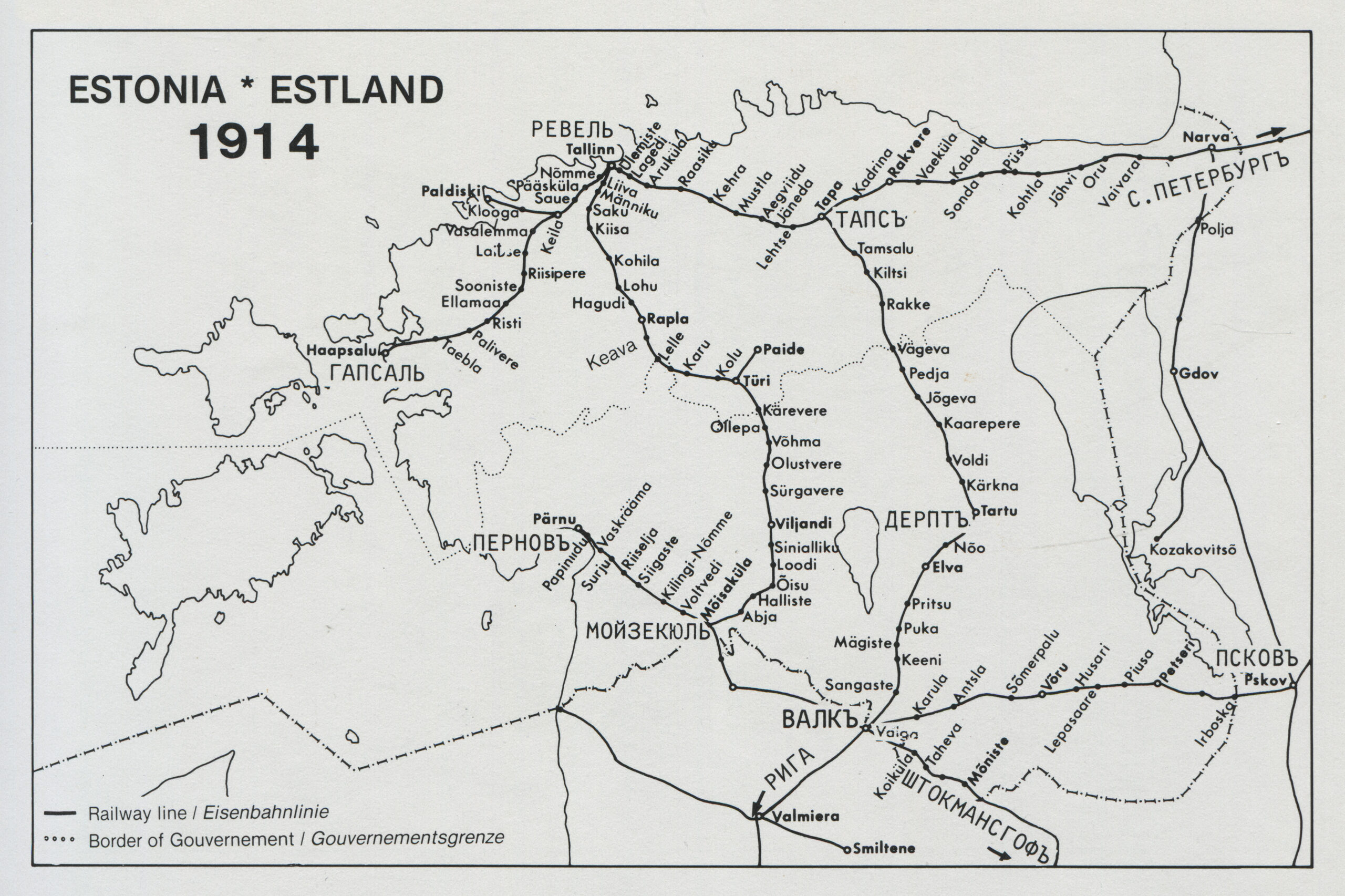 ERMi koguEesti raudtee kaart 1914