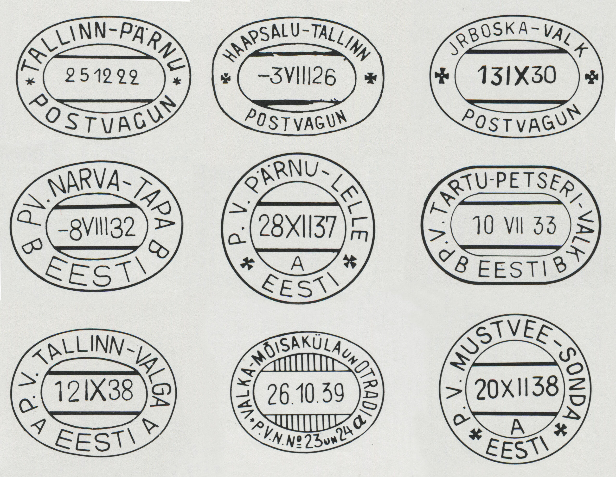 Eesti filateelia käsiraamat (koostajad V. Hurt, E. Ojaste), 1986, lk 503-520 Raudteeposti templid