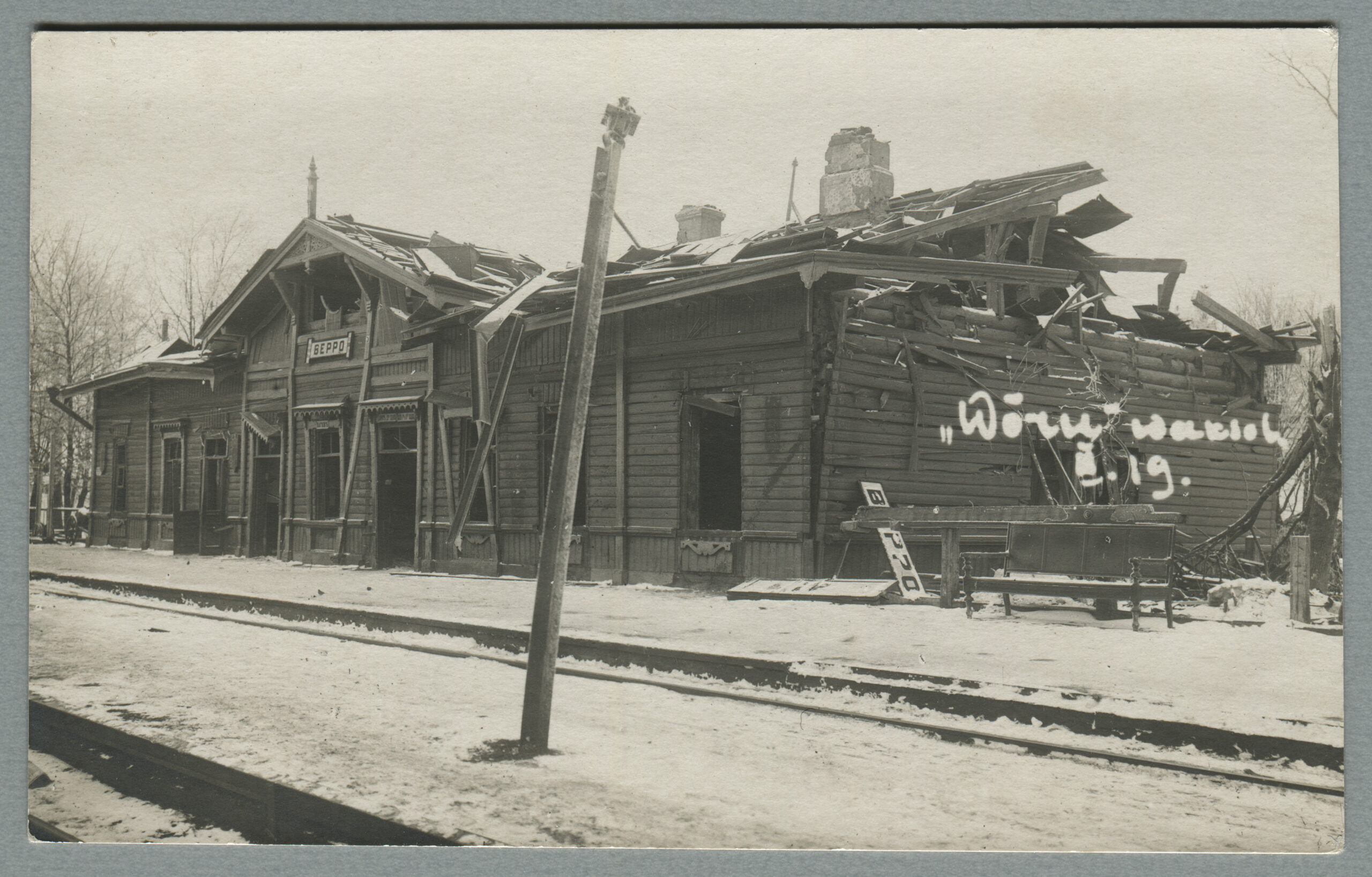 ERMi koguVõru lagunenud jaamahoone, märts 1919