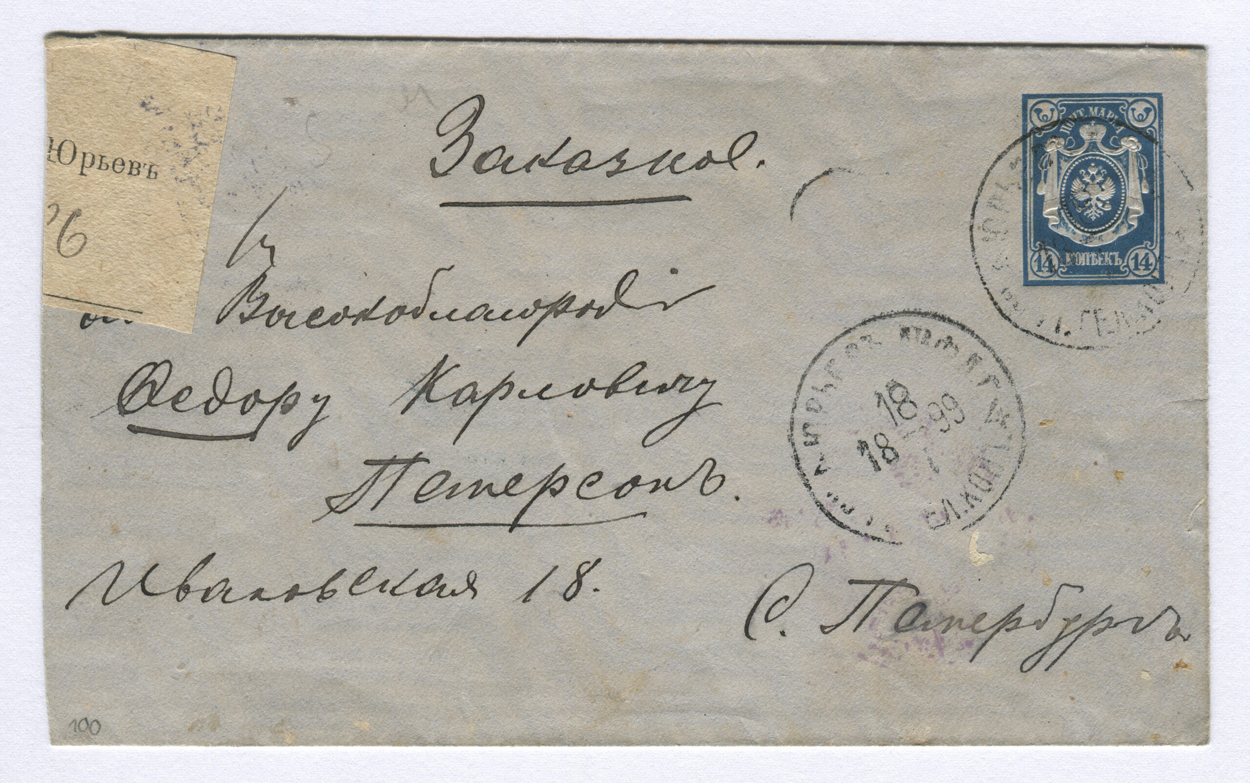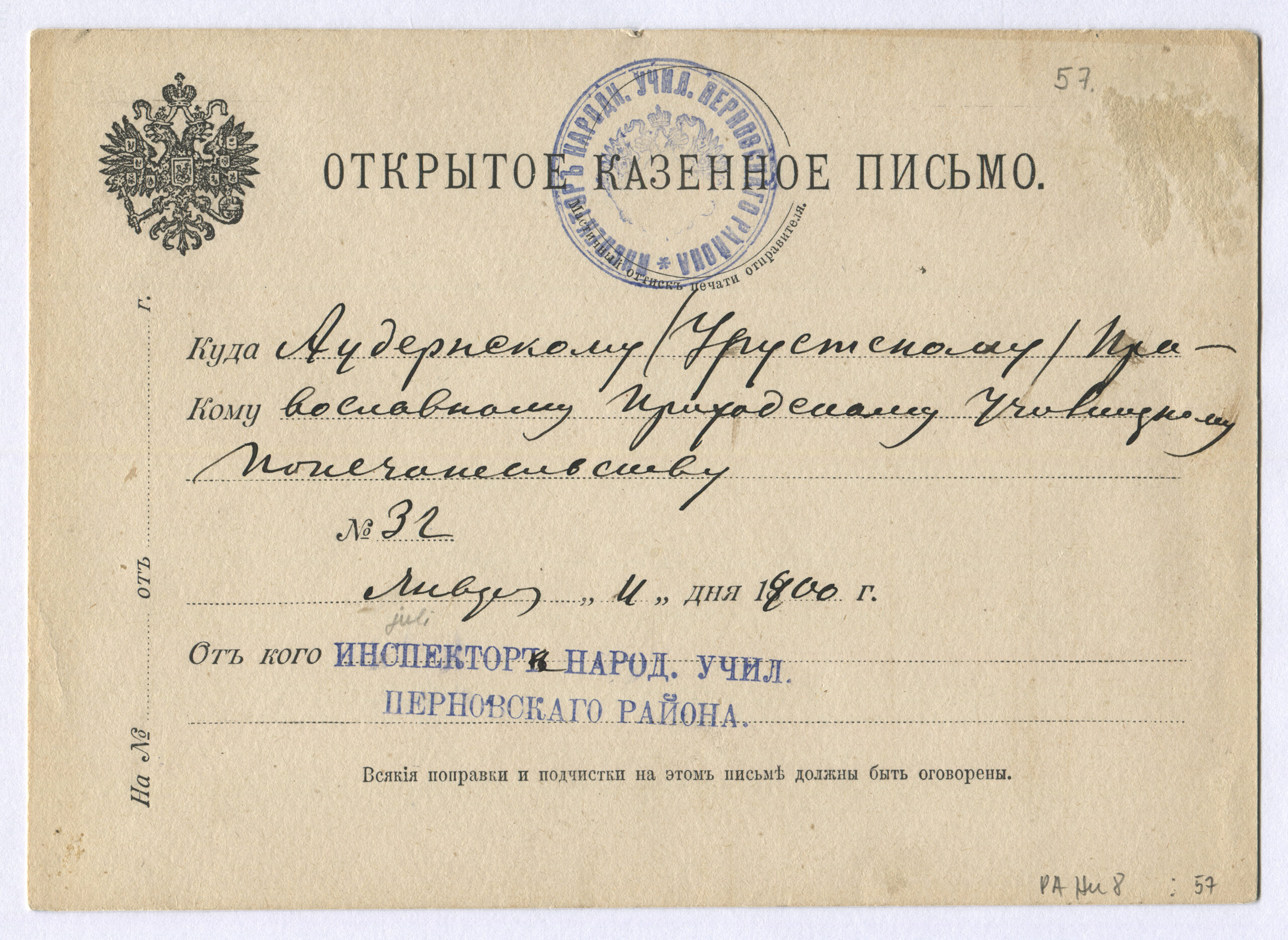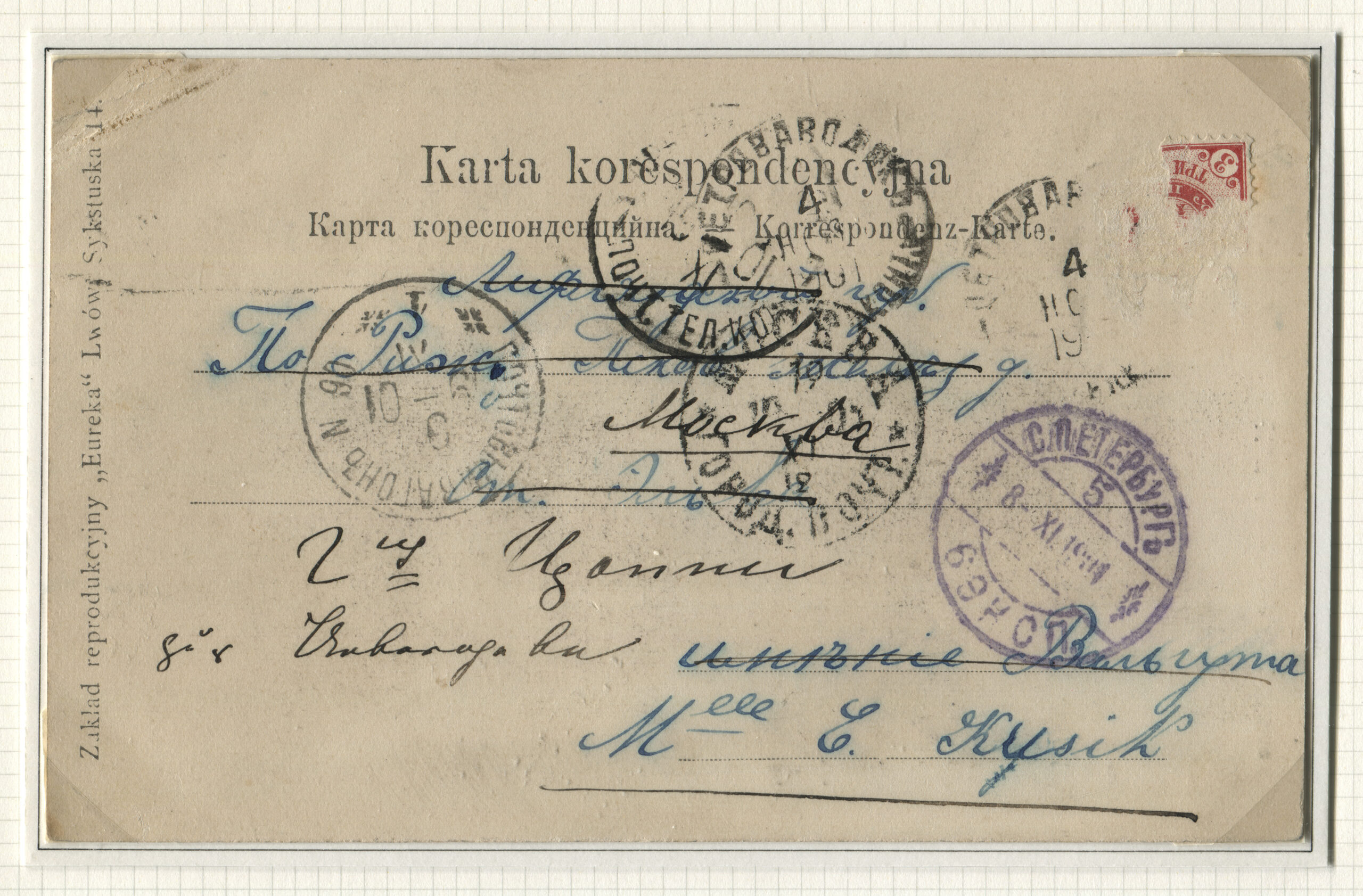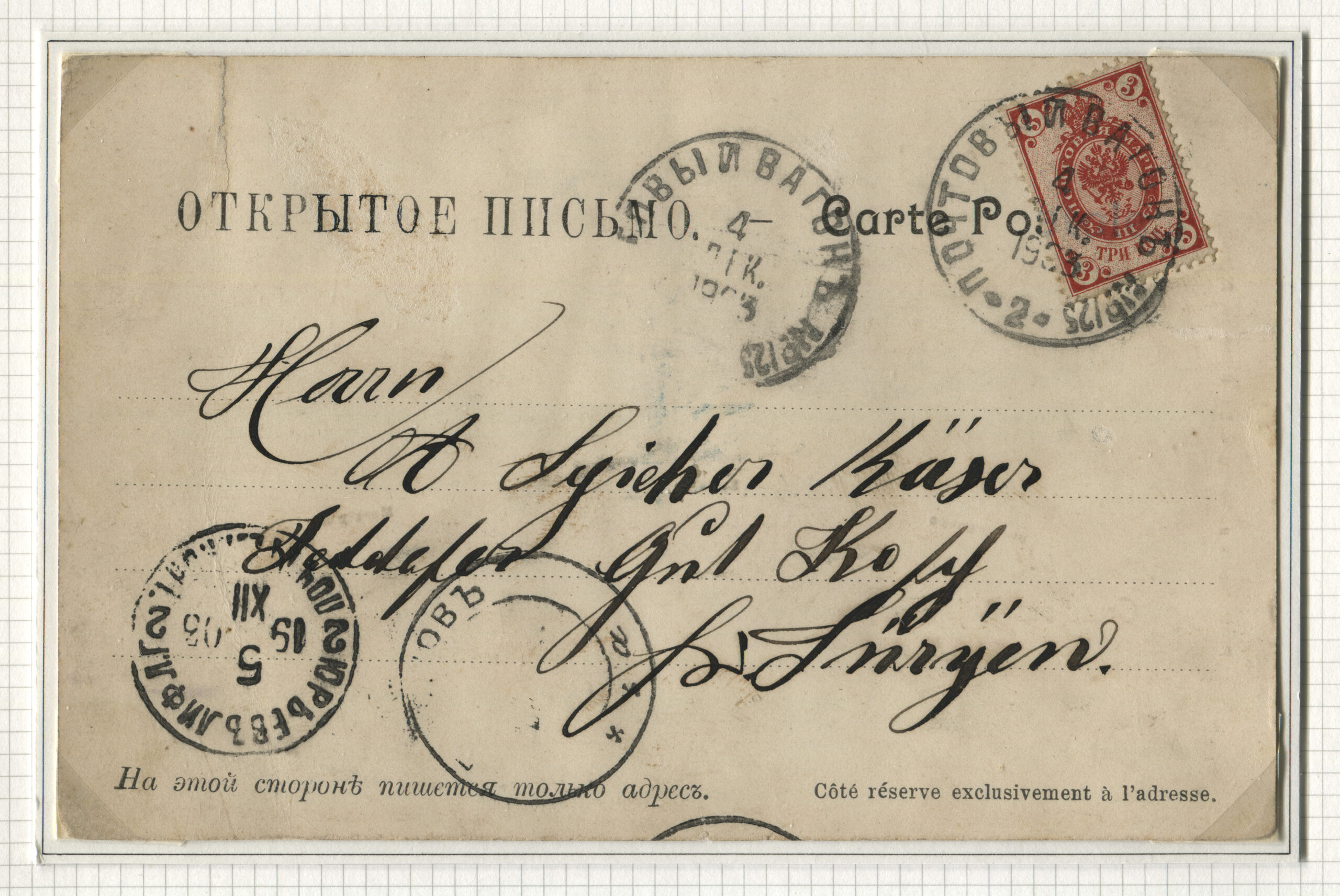 ERMi koguLahtine kiri saadetud 04.12.1903 Jädiveresse Tartu kaudu 05.12.1903, tembeldatud ka Pärnus Rongiliin Pihkva-125-Pärnu. Tempel: Postivagun 125 (2. vagun) 04.12.1903