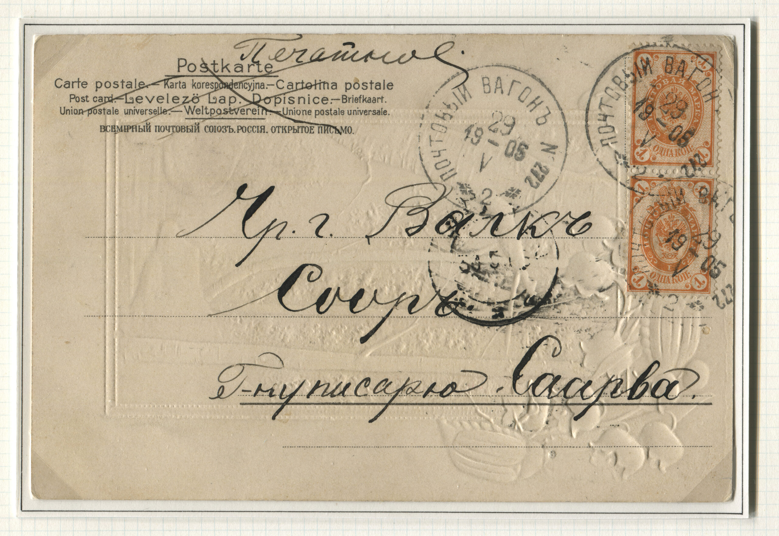 ERMi koguPostkaart saadetud Sooru (Tsooru) 29.05.1905 Rongiliin Nr 272 Stockmannshof-Valga. Tempel: Postivagun 272 (2. vagun) 29.05.1905