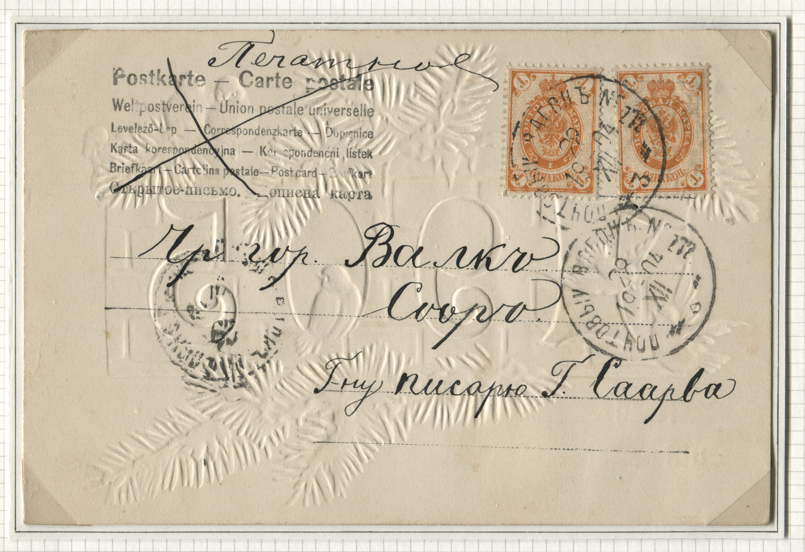 ERMi koguPostkaart saadetud Valga kaudu Sooru 29.12.1904 Rongiliin Nr 272 Stockmannshof-Valga. Tempel: Postivagun 272 (3. vagun) 29.12.1904
