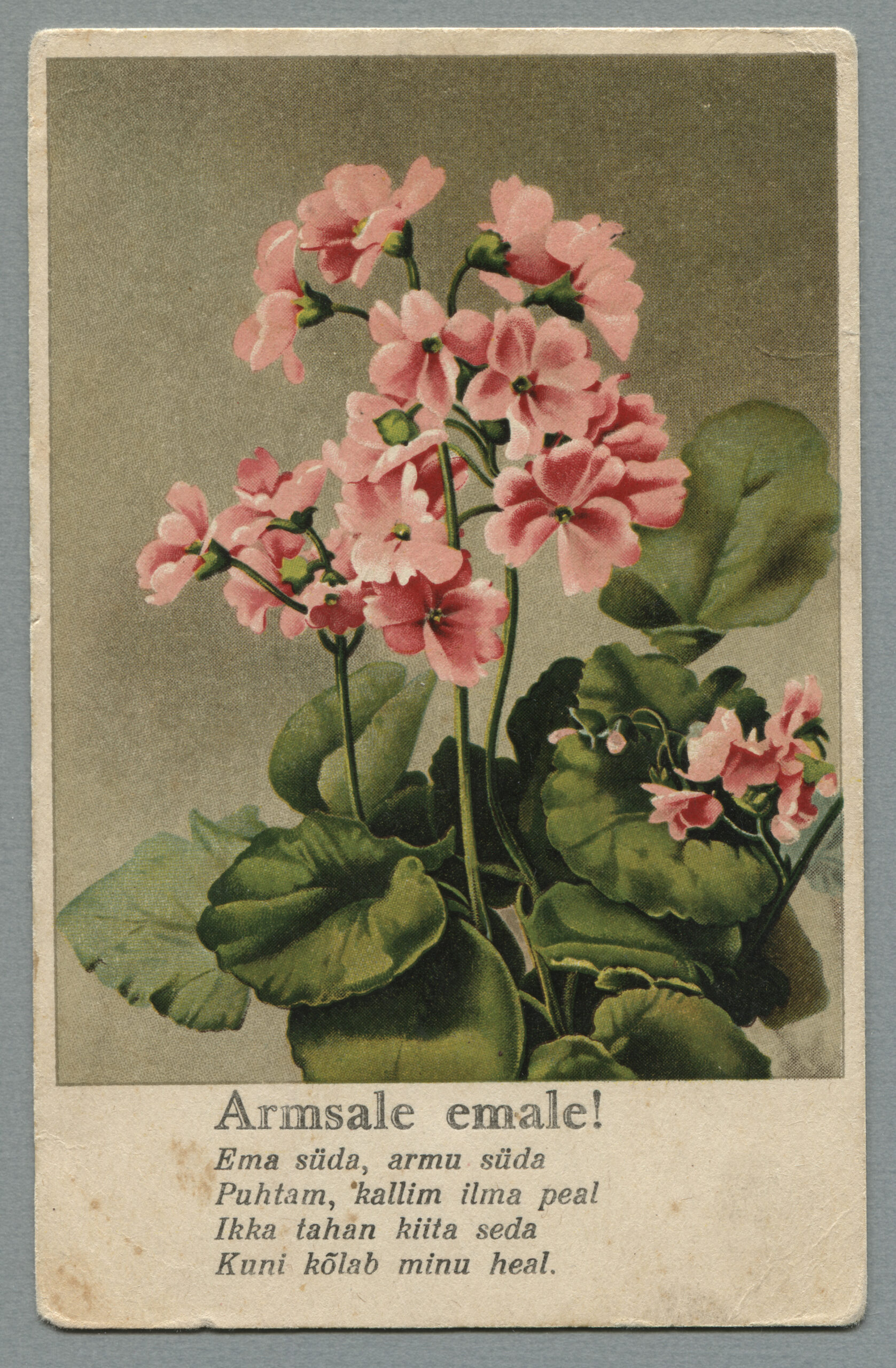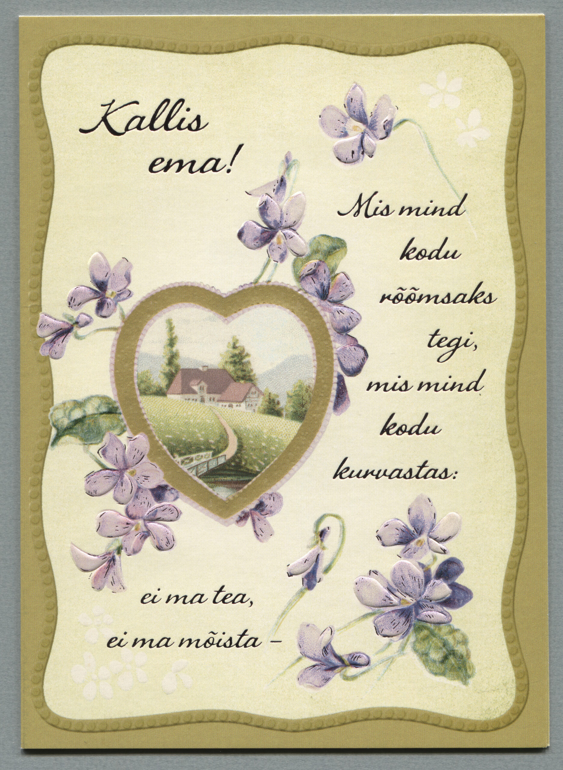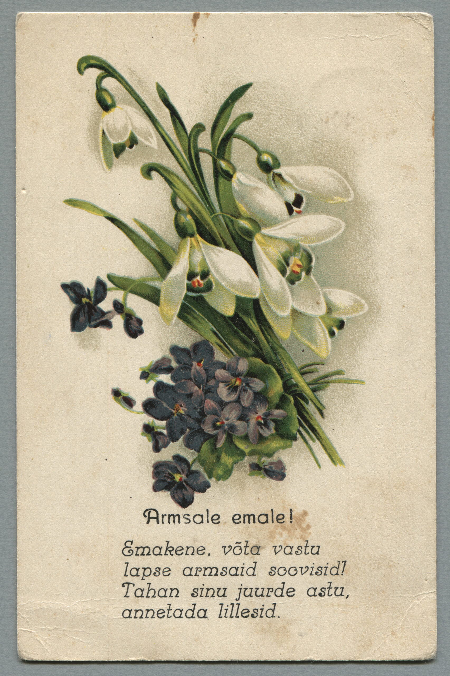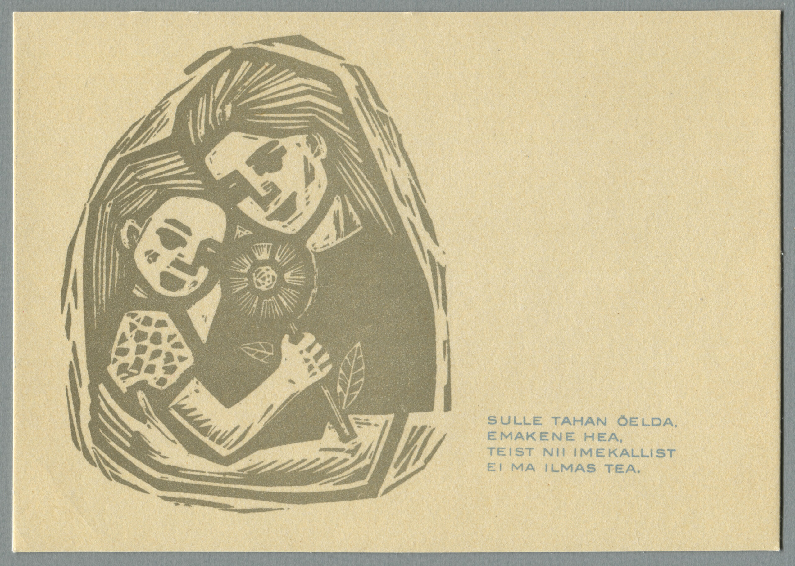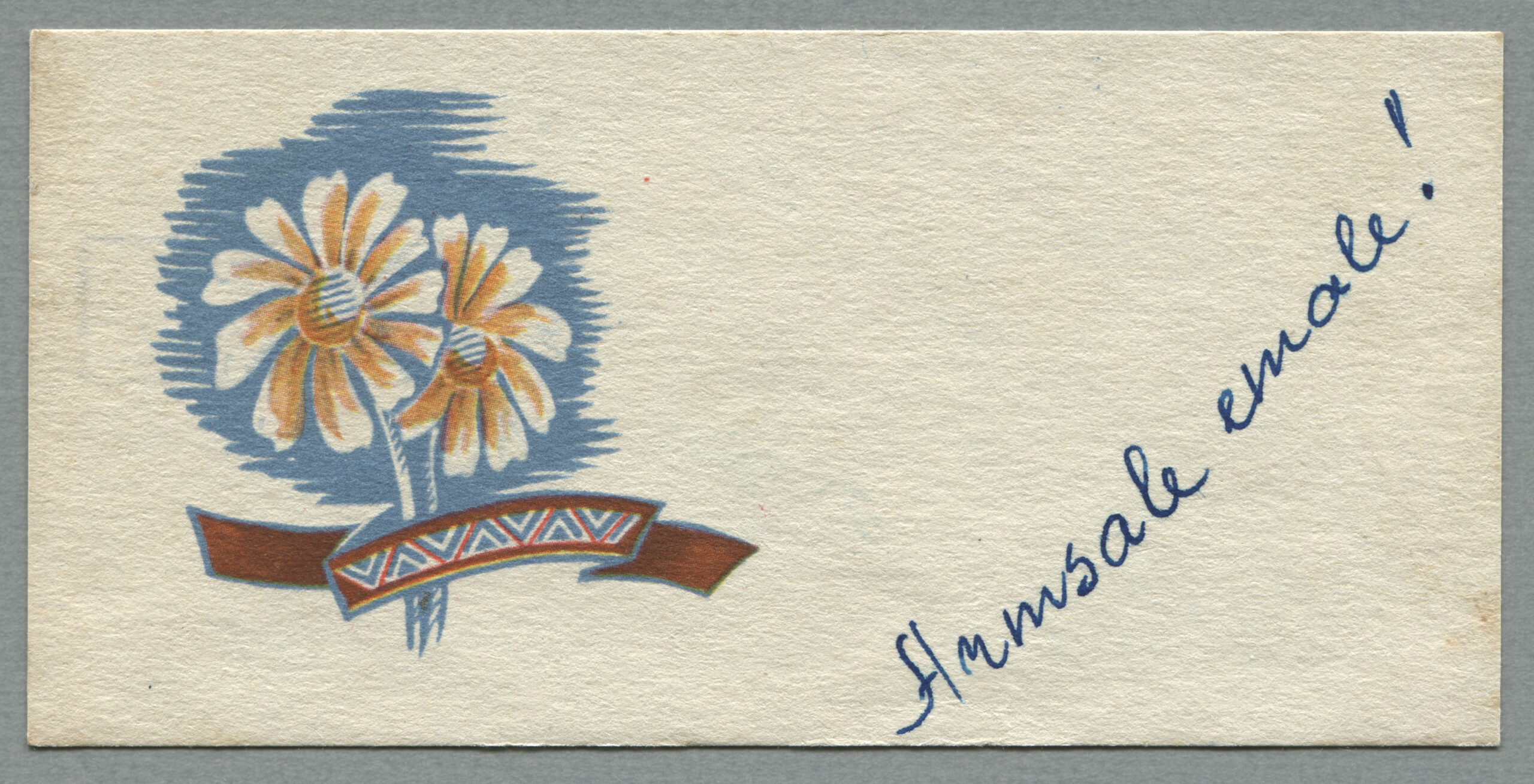 ERMi koguVega Küüni meisterdatud emadepäeva kaart Fernanda-Alide Küünile aastatel 1934–1947