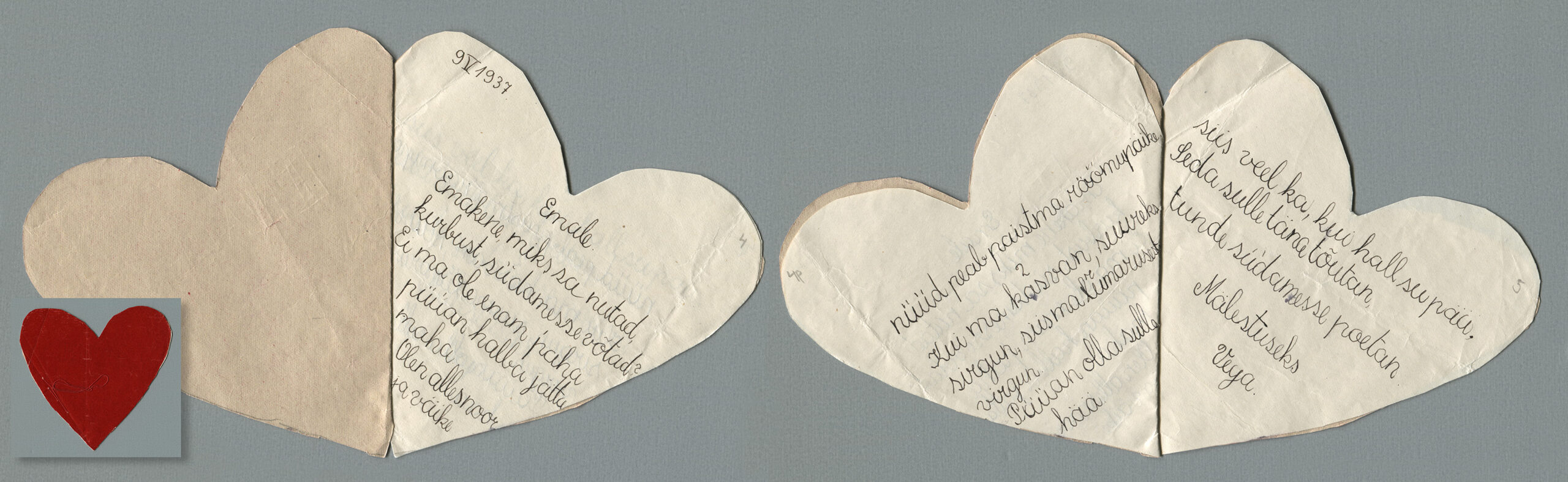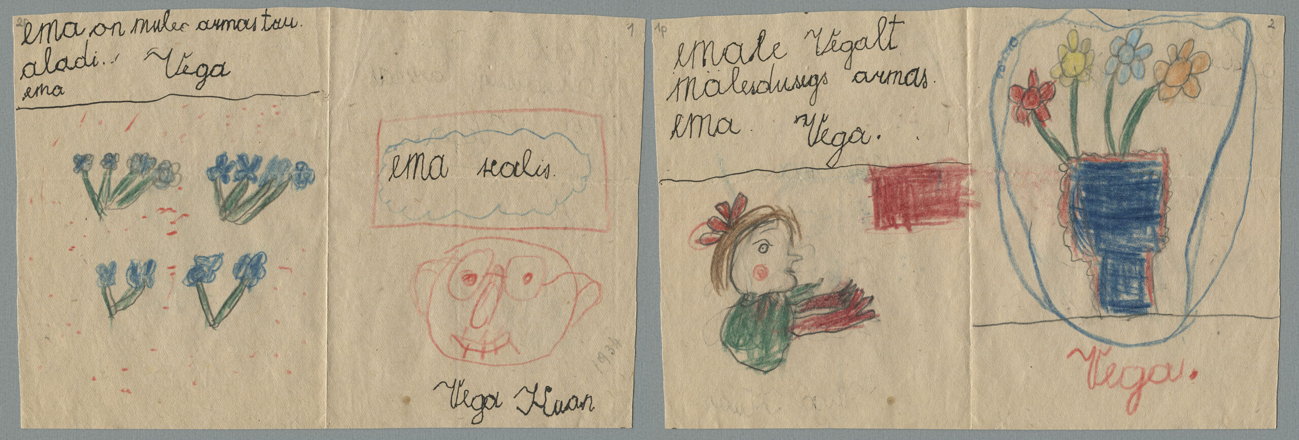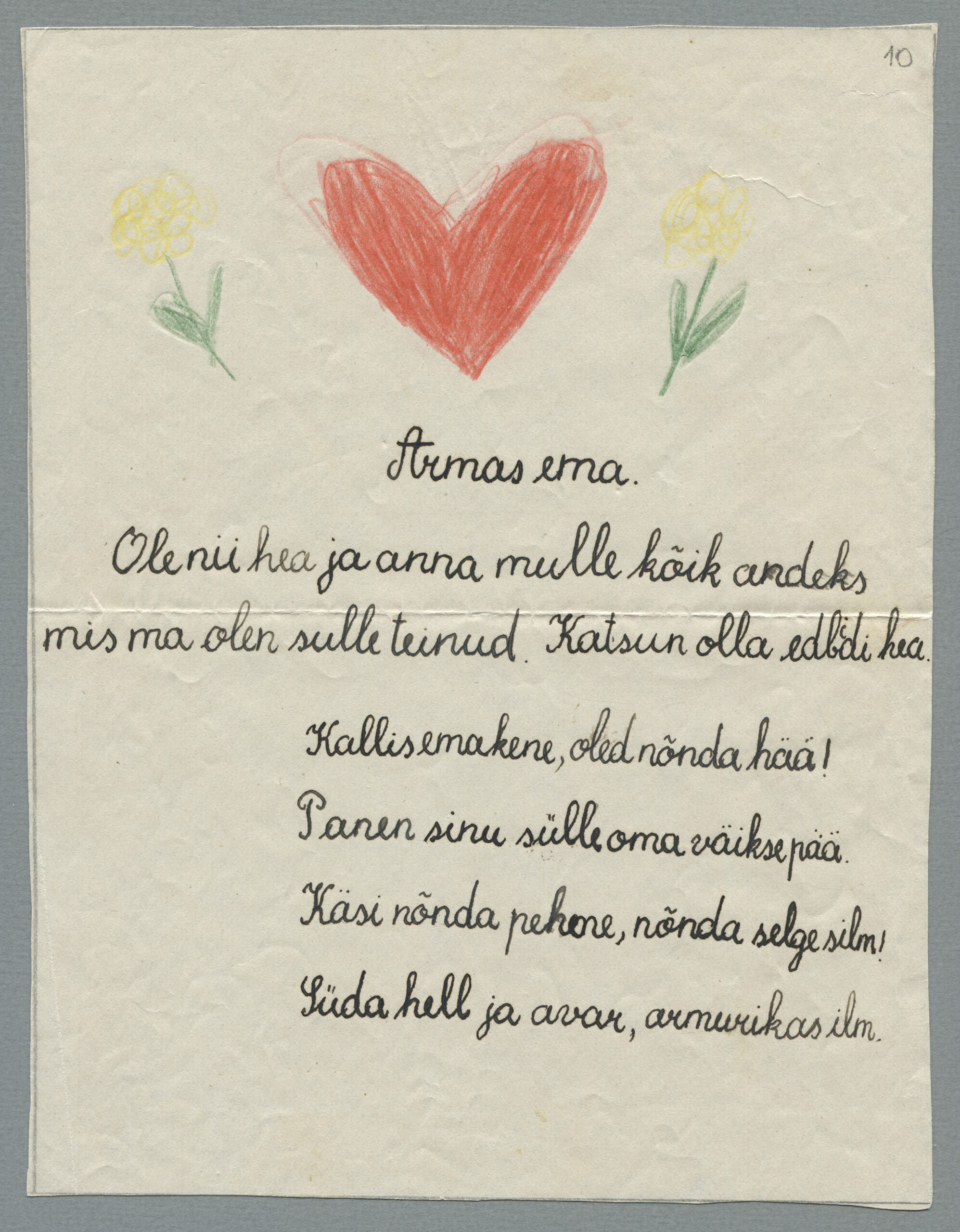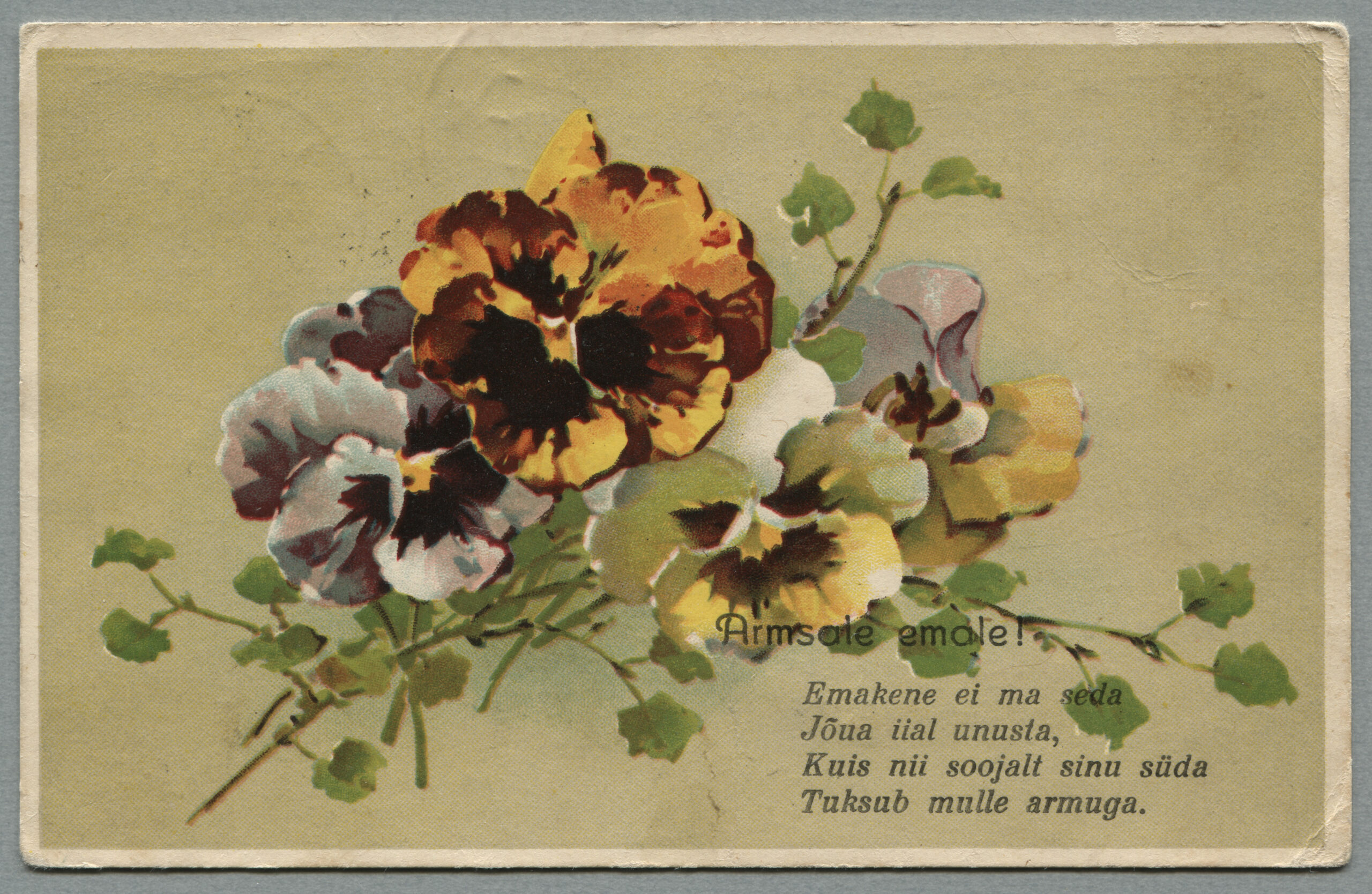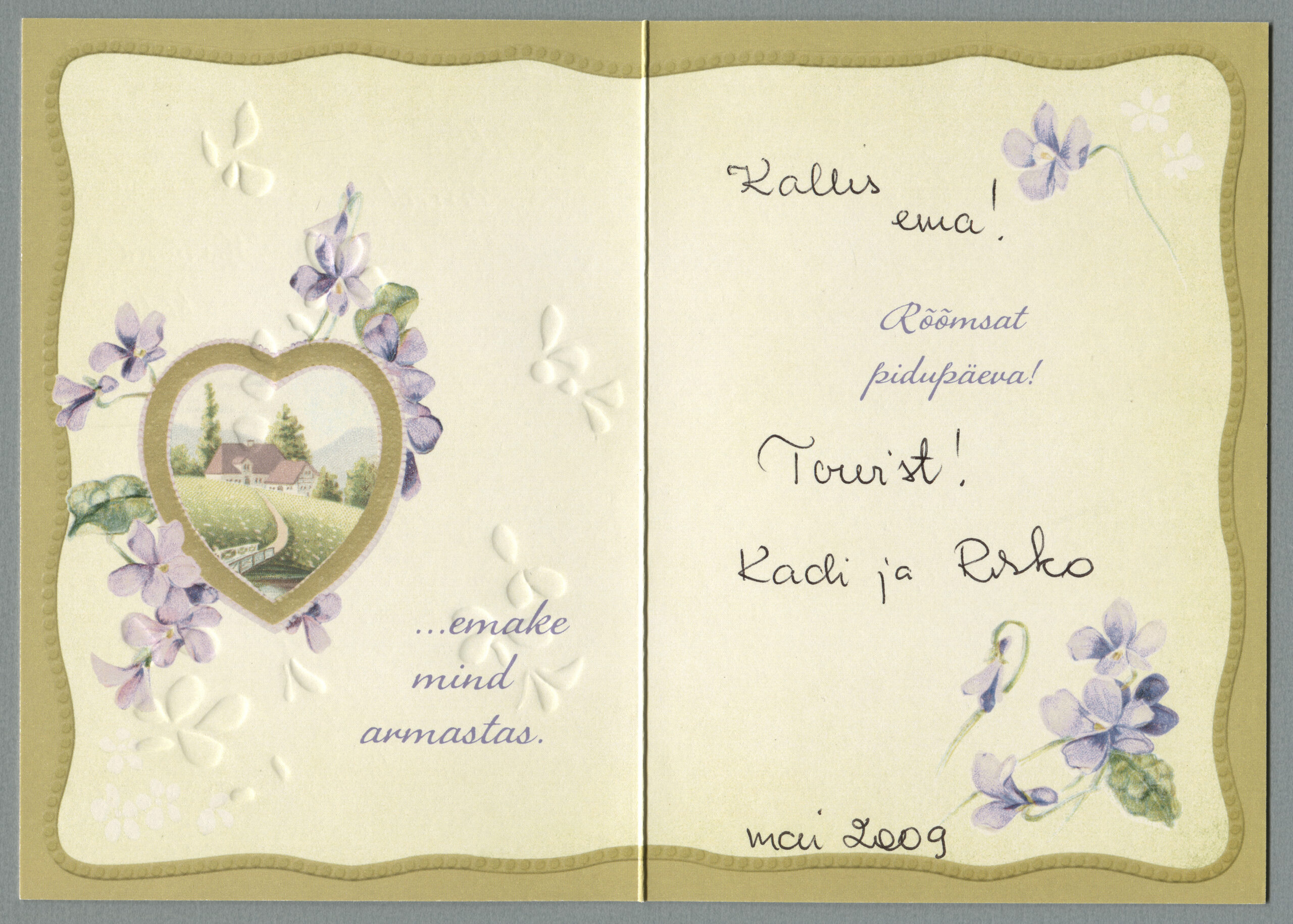 ERMi koguVega Küüni meisterdatud emadepäeva kaart Fernanda-Alide Küünile aastatel 1934–1947