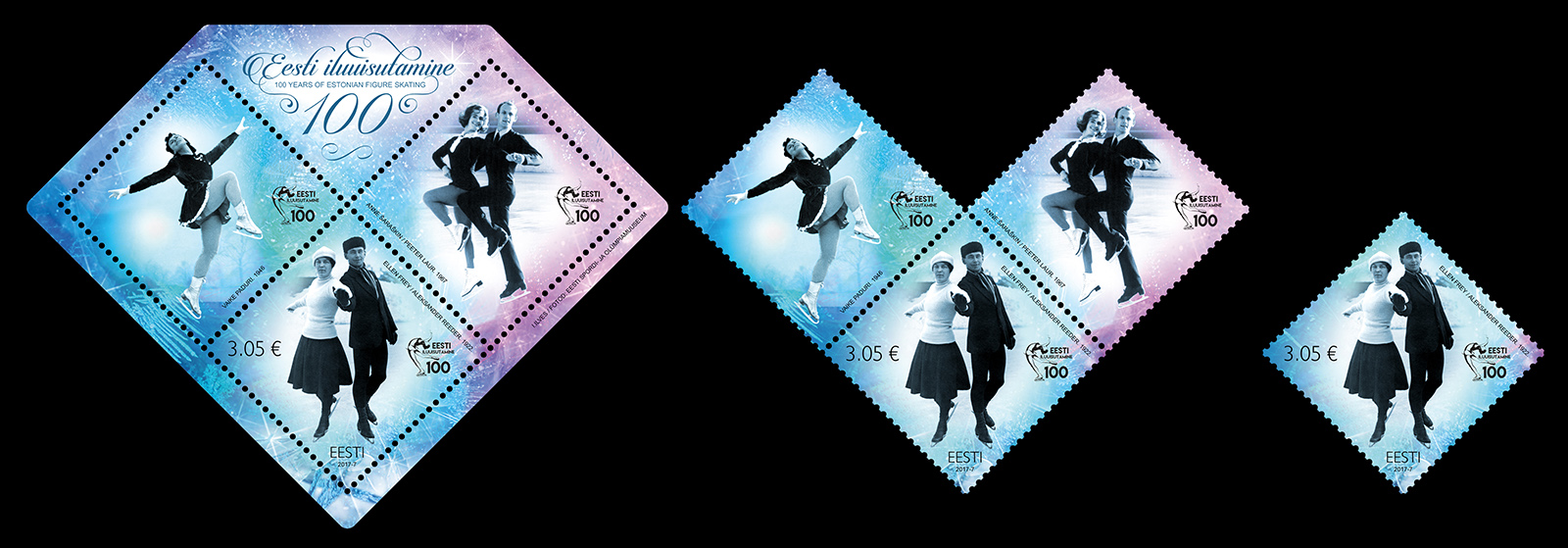 Teemandikujulisel margiplokil on uisutajatel seelik kaetud sädeleva lakiga, et jäist spordiala paremini edasi anda. Esmakordselt kasutati margiplokil kuponge.