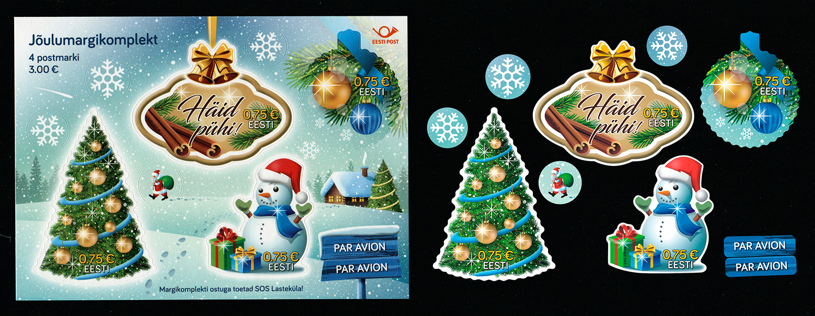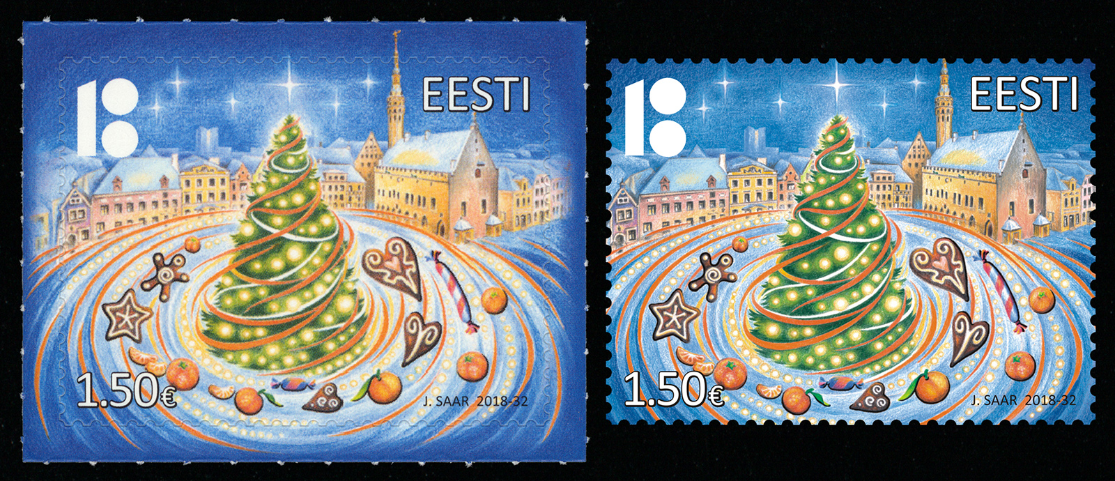 Trükiarv 20 000, trükikoda Cartor Security PrintingKaneelilõhnaliste jõulumarkide komplekt, 24.11.2017, kunstnik Indrek Ilves