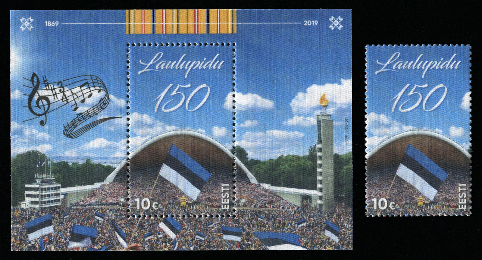 Laulev puuvillane postmargiplokk anti välja laulupeo 150 aasta juubeli puhul. Plokil „Laulupidu 150“ (5.07.2019) on kujutatud Tallinna lauluväljak, mis on kunstnik Indrek Ilvese sõnul sümboli väärtuses paik: „Seda teab iga eestlane ja see on mänginud olulist rolli nii meie riigi taasiseseisvumisel kui ka kultuuri kandmisel. Linasest ja villasest kangast on valmistatud meie rahvariided ning sellest inspireeritult on puuvillasele materjalile trükitud ka margiplokk.“ Margipilti spetsiaalses mobiilirakenduses CEE app skaneerides oli igaühel võimalik kuulata laulu „Mu isamaa on minu arm“. (NB! Rakendus ei tööta enam.)
