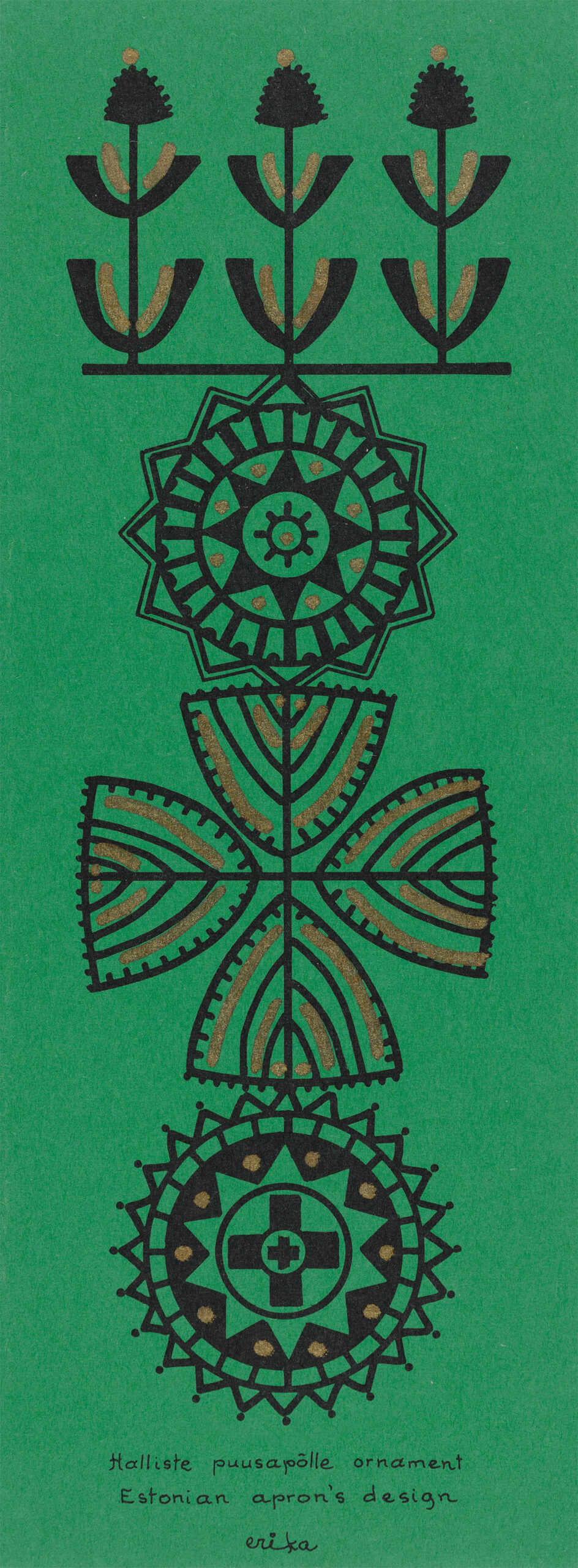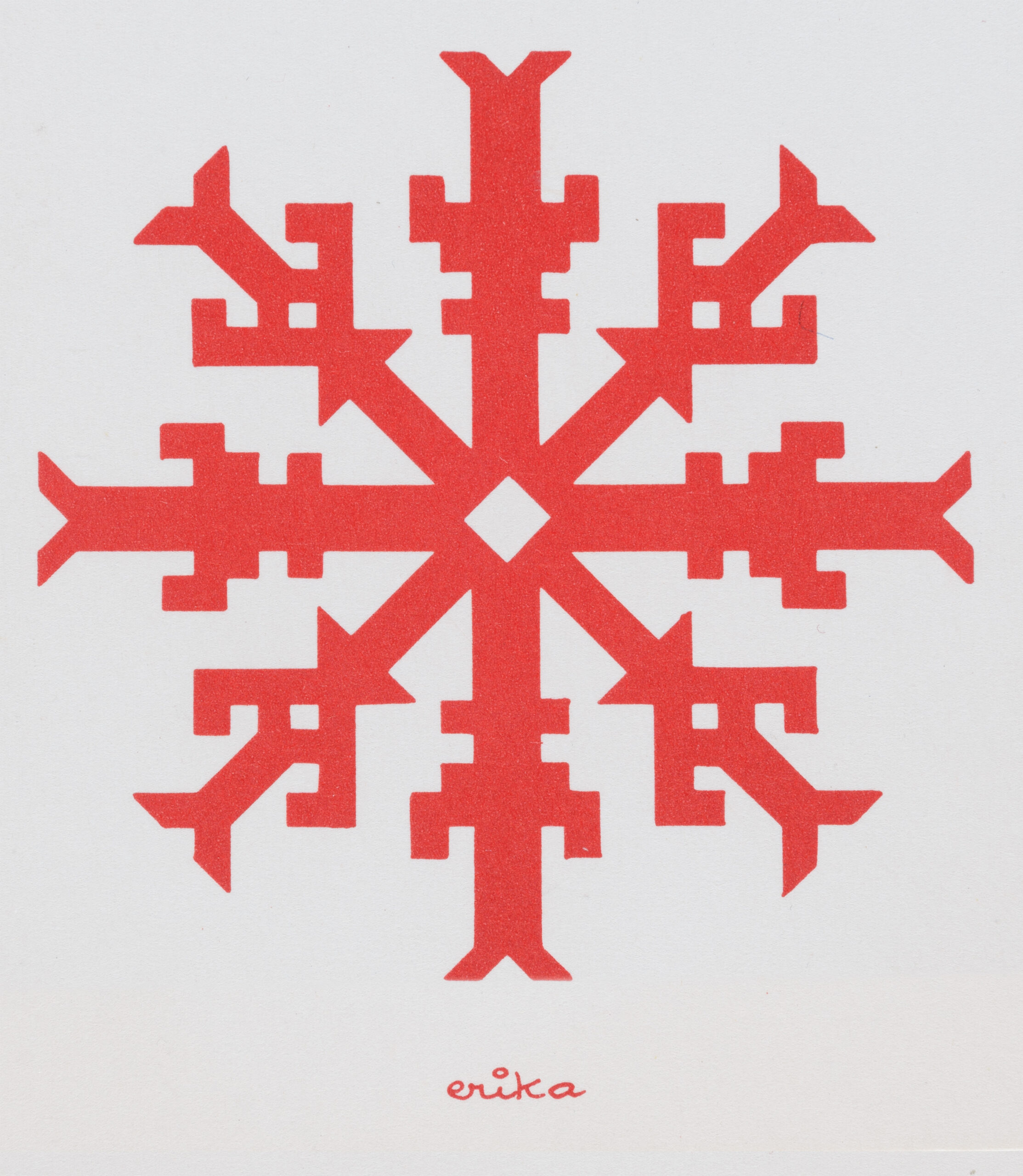 Erika Kalami postkaarte saadeti Eestisse USAst 1970.-80ndatel. Nüüd jõudsid Eesti Rahva Muuseumi tema etnograafiliste motiividega postkaartide originaalid. Need minimalistlikud ja kunstipärased jõulukaardid väljendavad koduigatsust ja neis tuleb esile mälus alles hoitud värvikirev rahvakultuuri maailm.