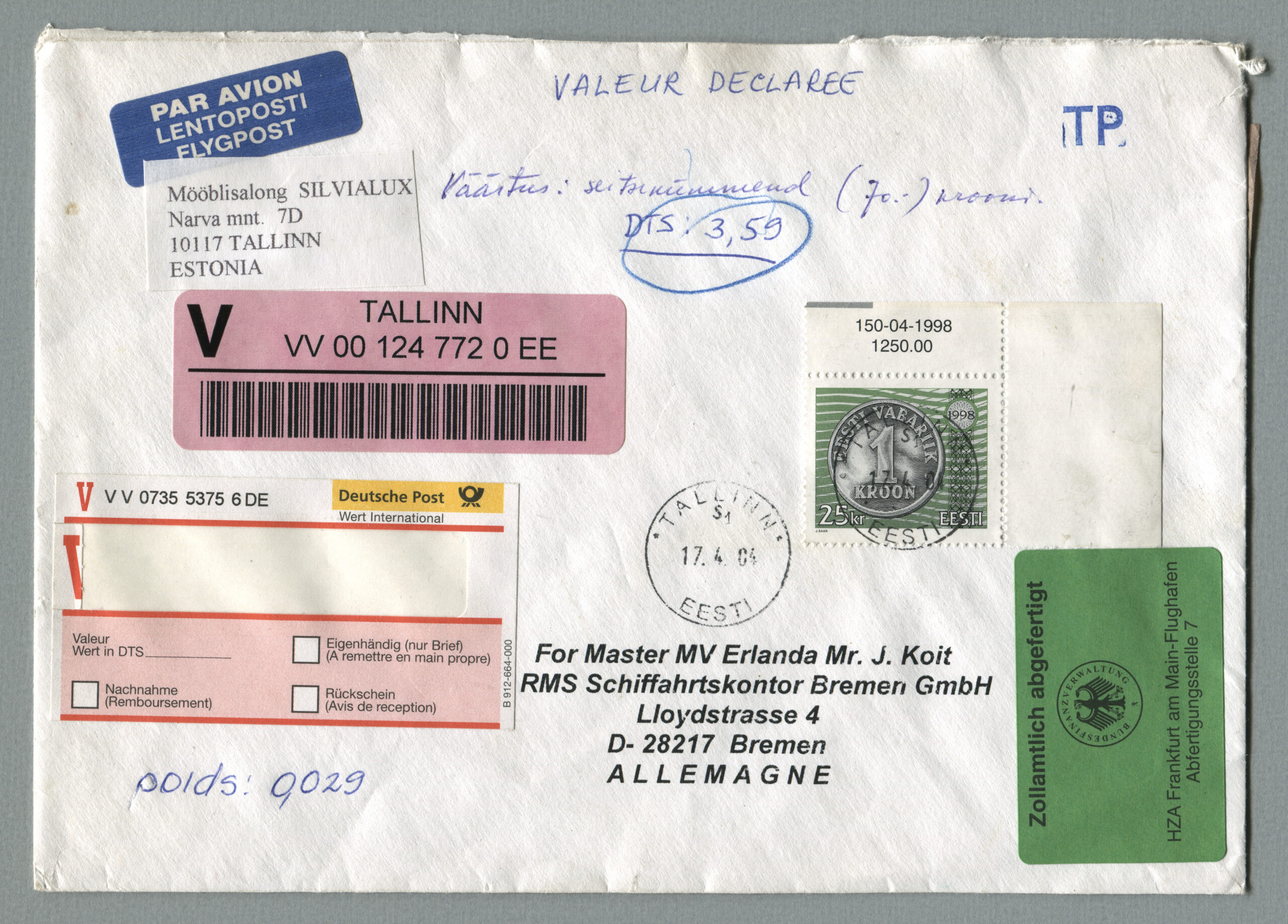 ErakoguVäärtkiri, mis on saadetud Tallinnast 18.12.2008 Lissaboni (Portugal).