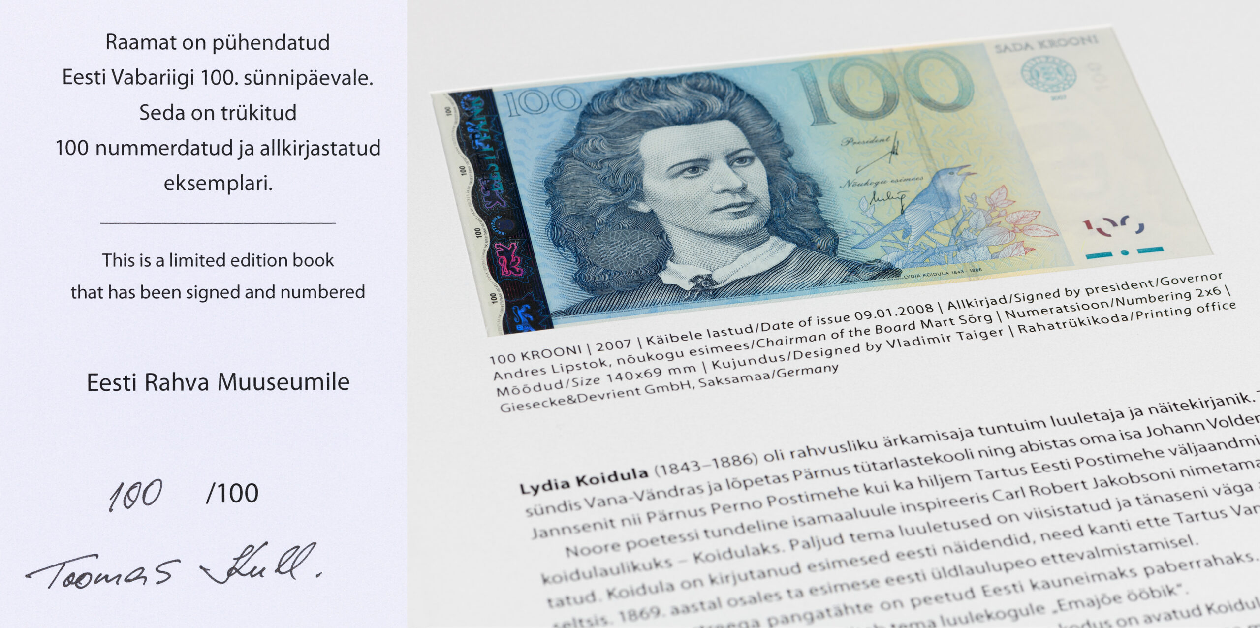 2018. aastal ilmus Toomas Kullil, kes kogus Eesti krooni rahatähti, Eesti Vabariigi 100. aastapäevale pühendatud raamat „Eesti krooni originaalpangatähed 1991–2007″. Sajast ilmunud raamatust suurema osa kinkis autor välismaistele Eesti seltsidele, majadele ja raamatukogudele, aga ka kohalikele asutustele. Raamatus on kaheksa Eesti krooni paberraha.