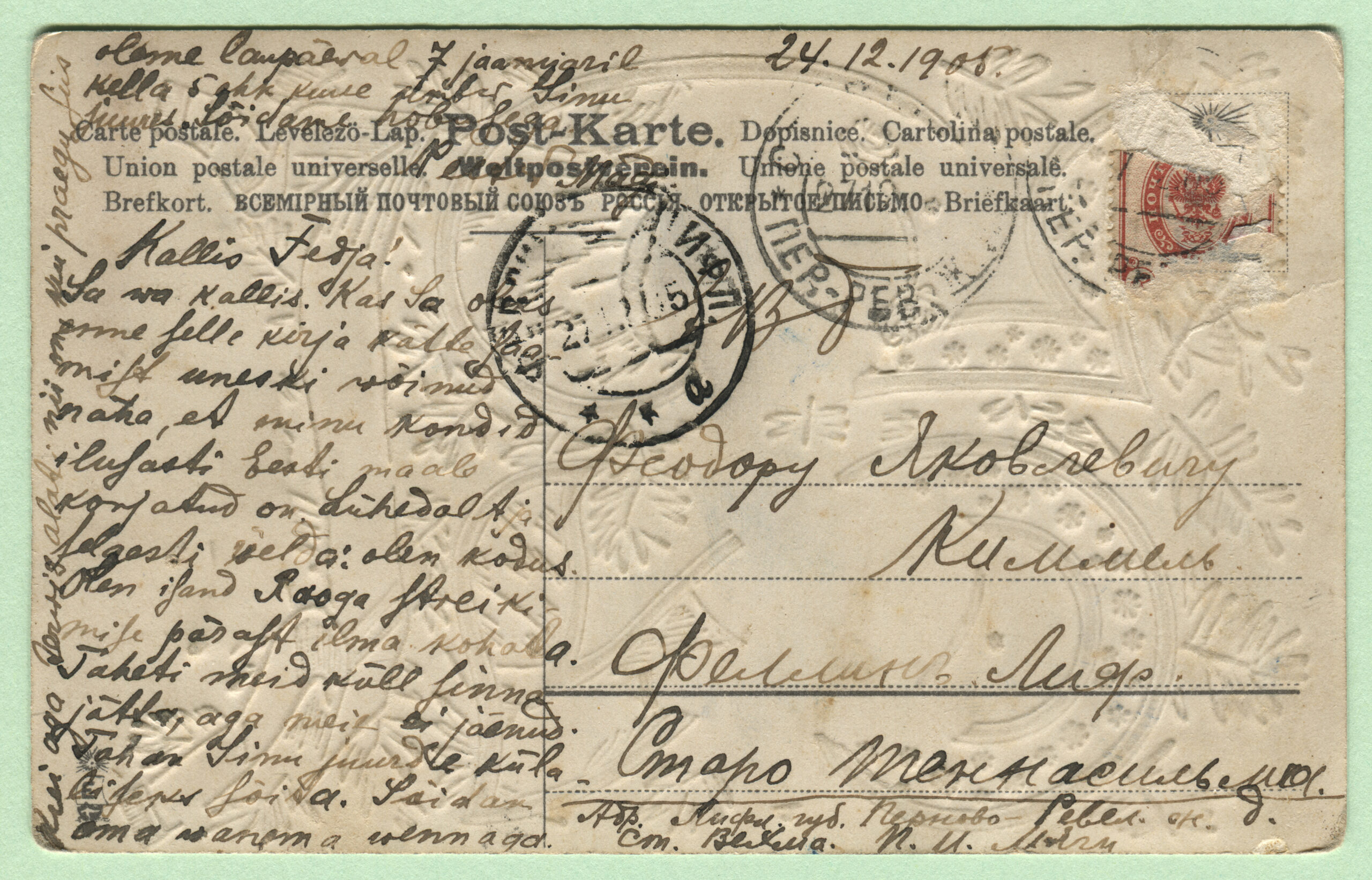 ERMi koguPostkaart saadetud 24.12.1905