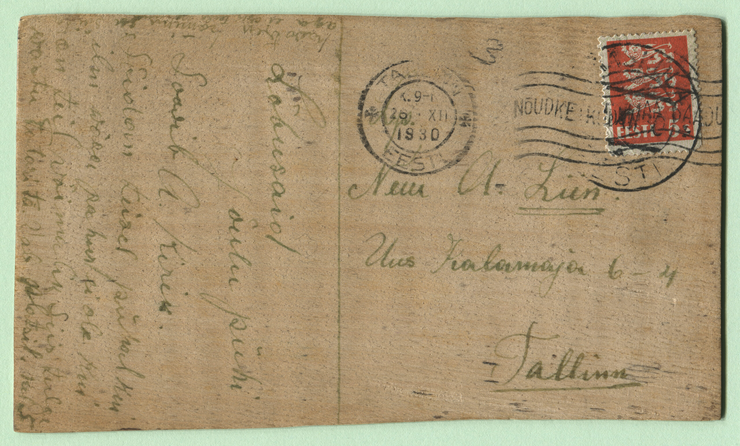 ERMi koguPostkaart saadetud 30.12.1908