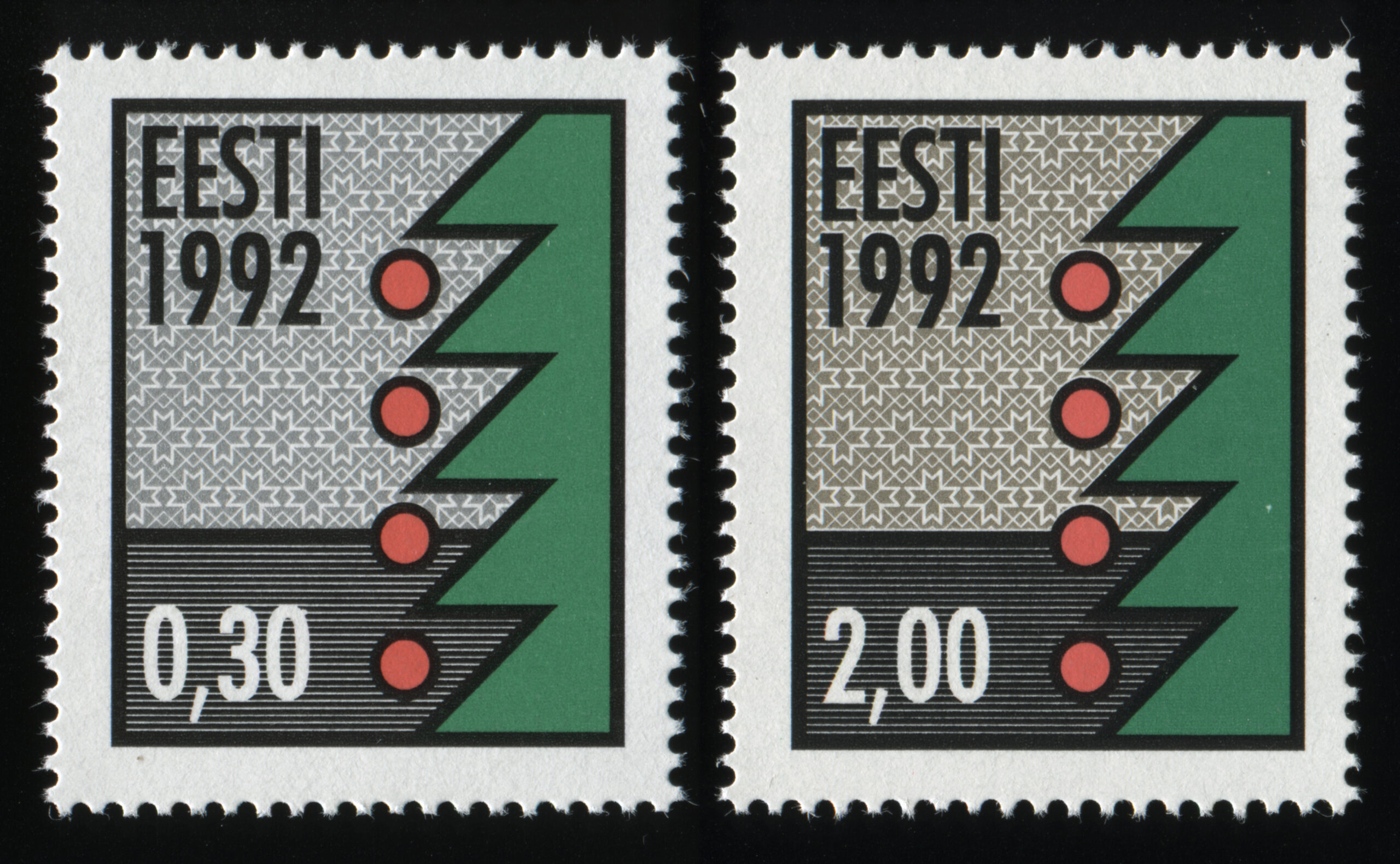 Esimene uusaasta postmark, millel on ka eesti keeles kirjutatud „Uus aasta Eestis“, ilmus 4. oktoobril 1991. Taasiseseisvunud Eesti esimene jõulumark tuli käibele 15. detsembril 1991. Varem olid kasutusel pühadeteemalised meene- ja heategevusmargid. Ka ühelt Kanada margilt leiame eestikeelse jõuluvana.