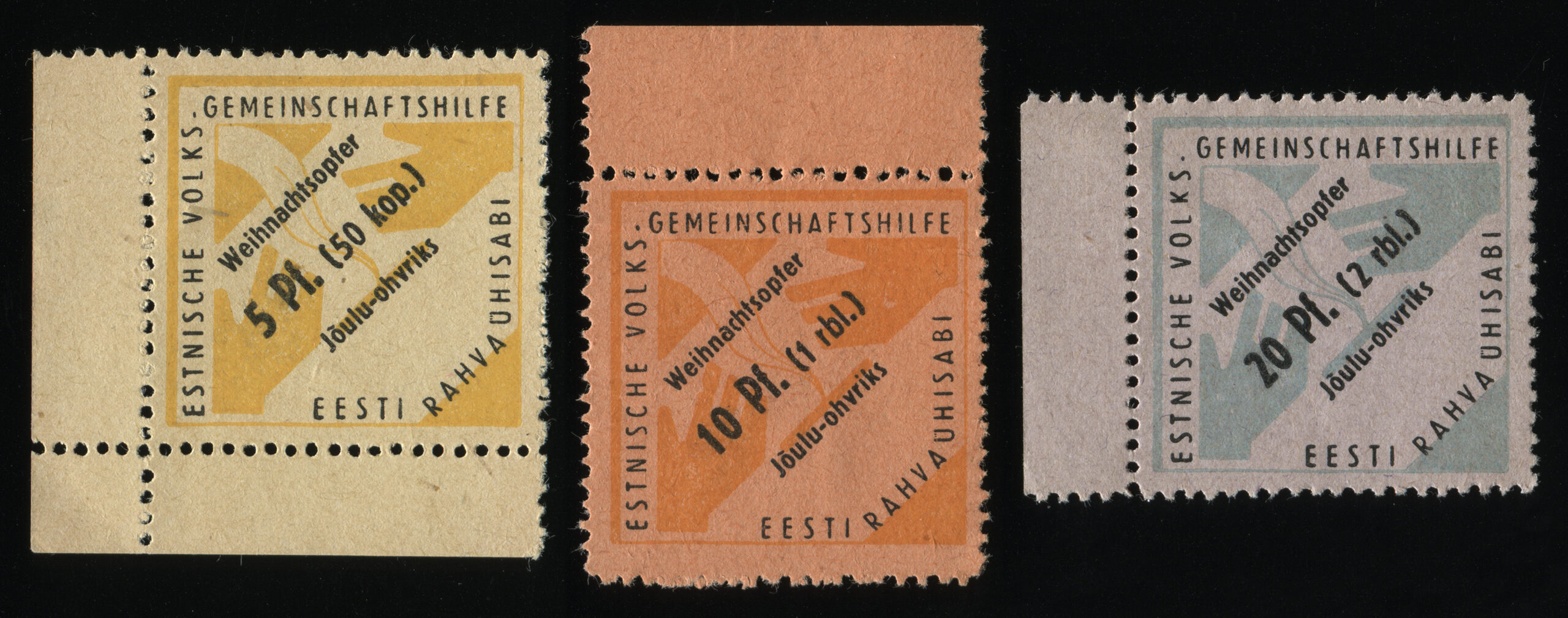 Erakogu (Ants Linnard)Eesti Rahva Ühisabi korjandusmark „Jõulu ohvriks“, 1941 (5 Saksa penni, 50 kop; 10 Saksa penni, 1 rubla; 20 Saksa penni, 2 rubla)