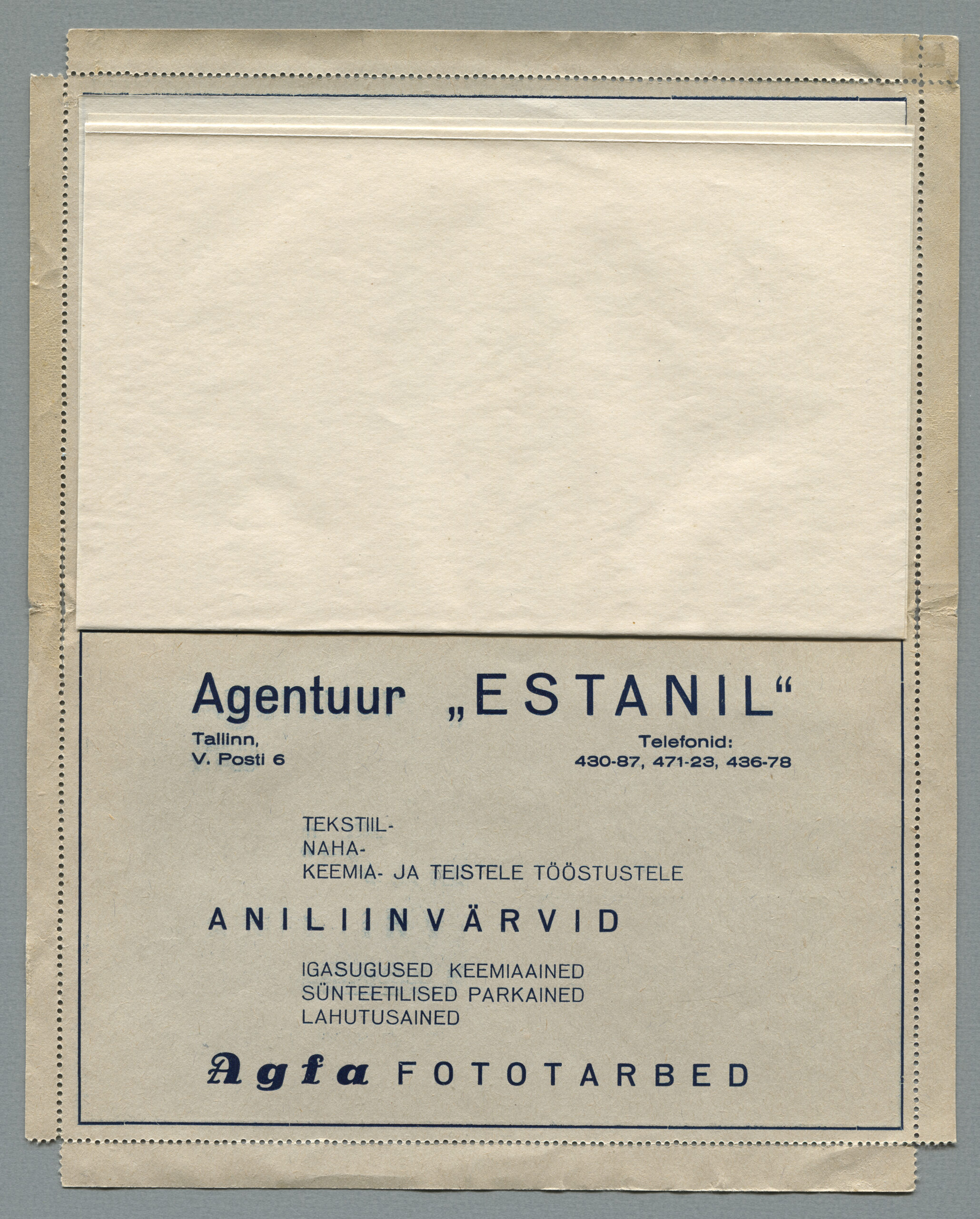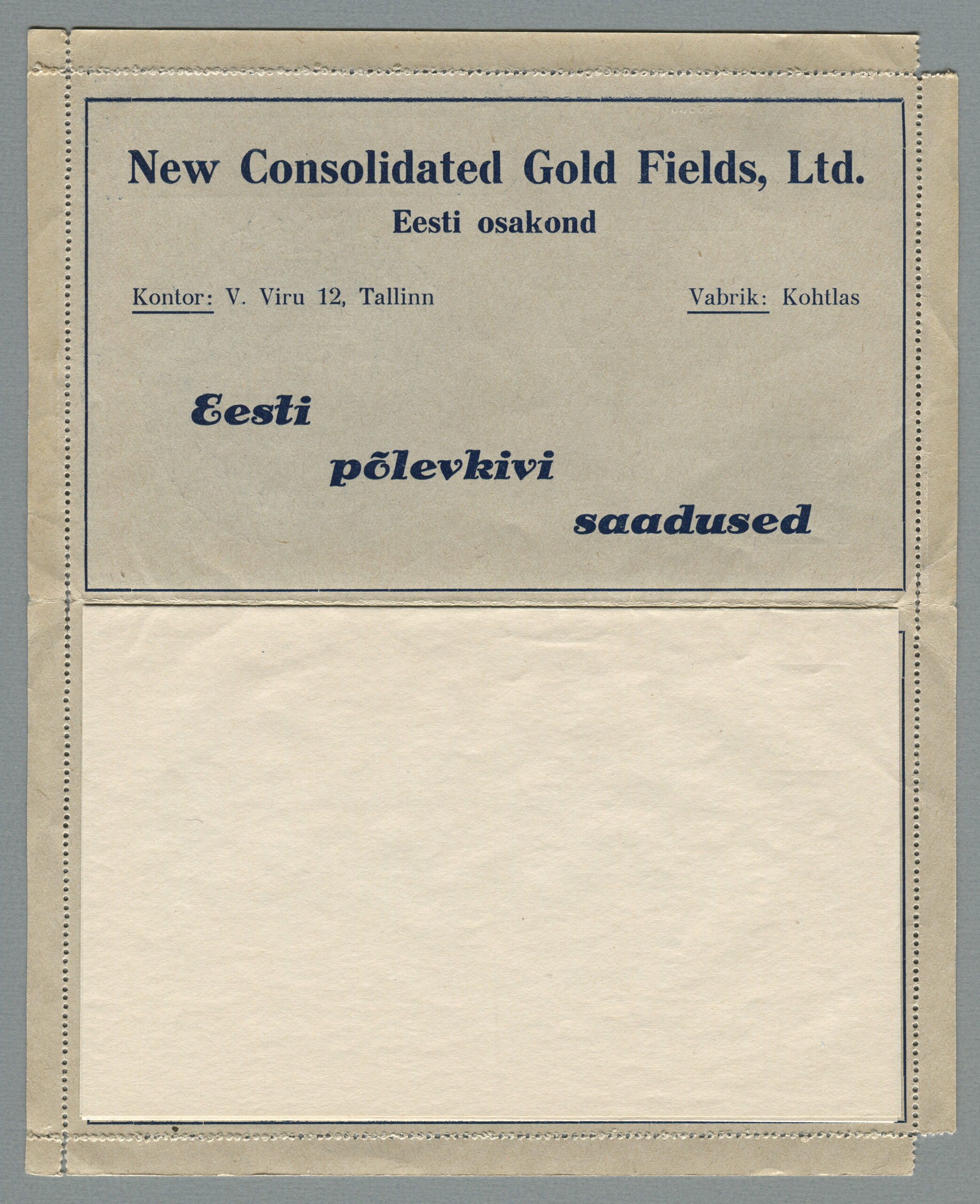 Kaartkirju (ingl Letter Cards, sks Kartenbriefe) valmistati 28 seeriat, mis erinesid reklaamide ja nende paigutuse poolest. Õhuke hallikas kartong murti kokku, ääred perforeeriti ja ülejäänud servad kaeti liimiga. Sõnumi tarvis oli kartongi vahele liimiga kinnitatud valge paber. Mõnel puhul on reklaam trükitud ka sellele valgele lehele. Nii kaartkirja hallist kartongist ümbrisel kui ka siselehel trükiti reklaamid tumesinise värviga.