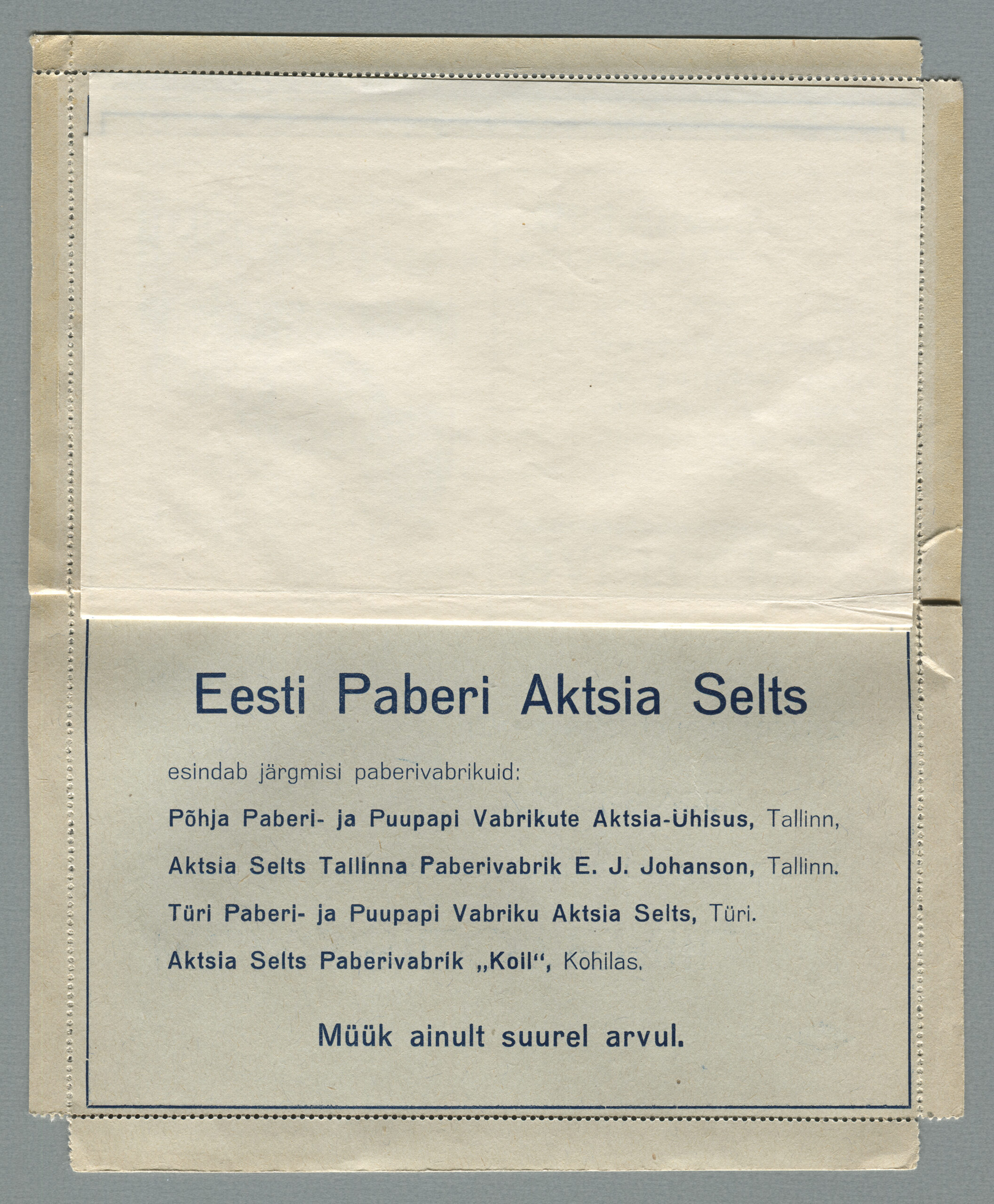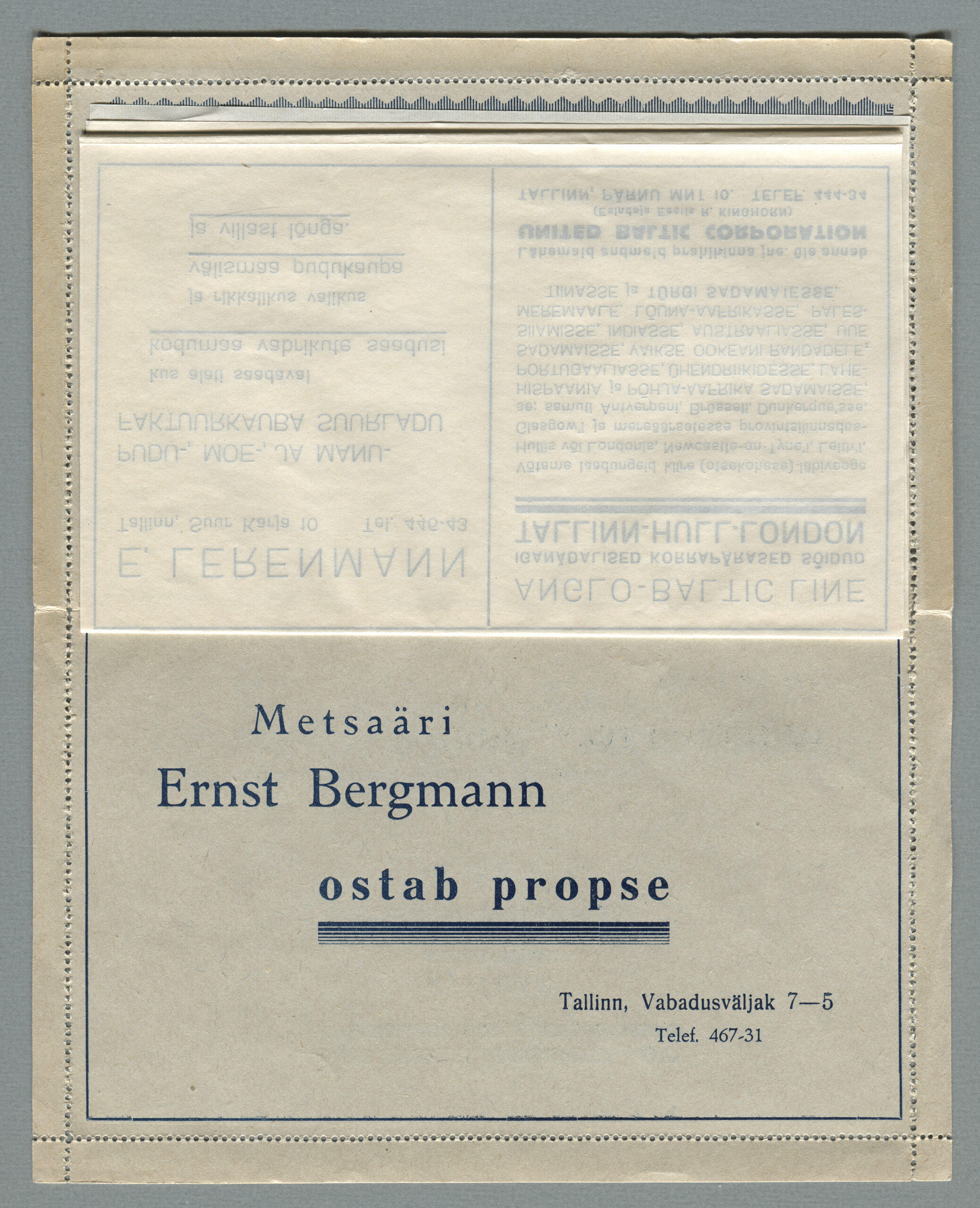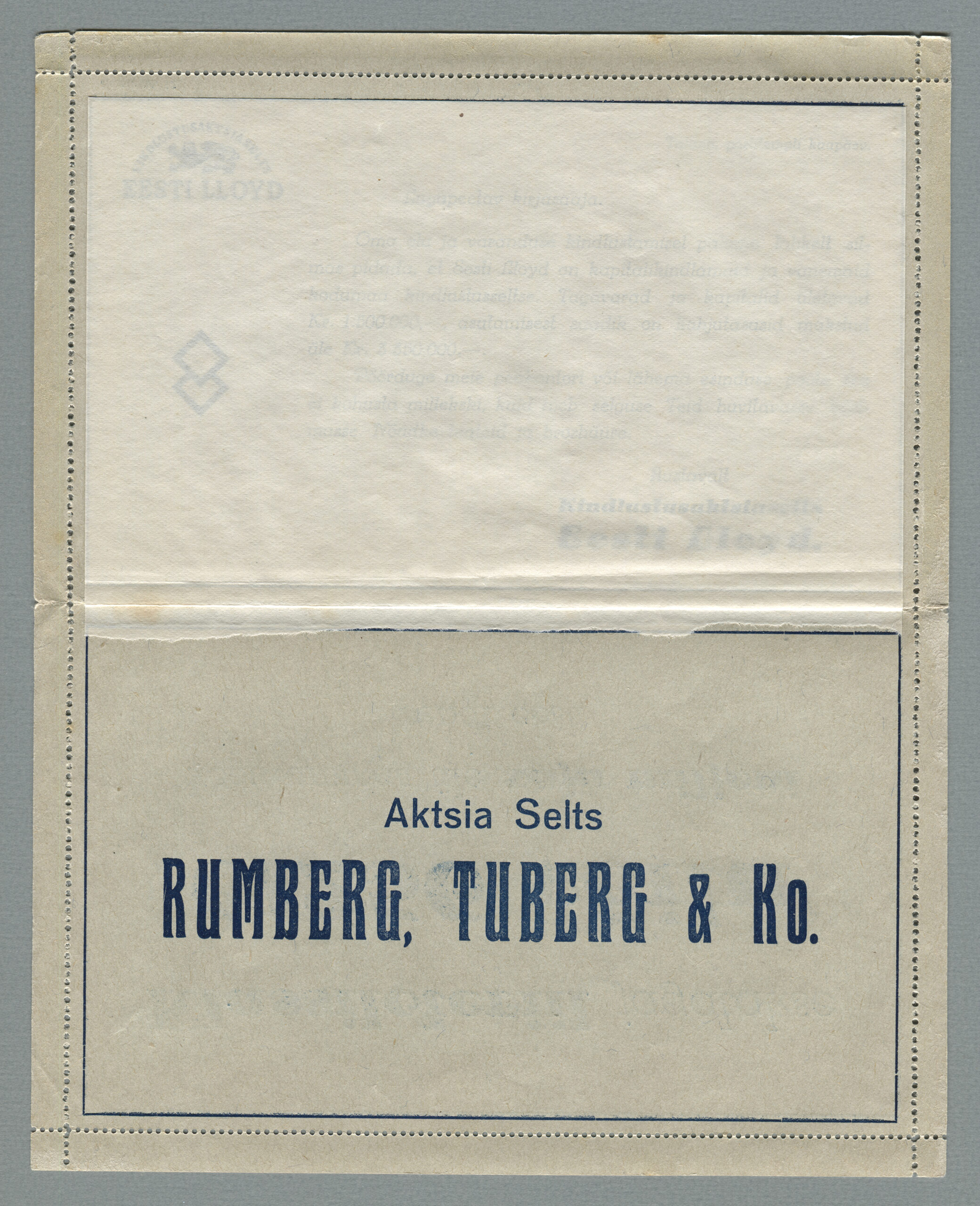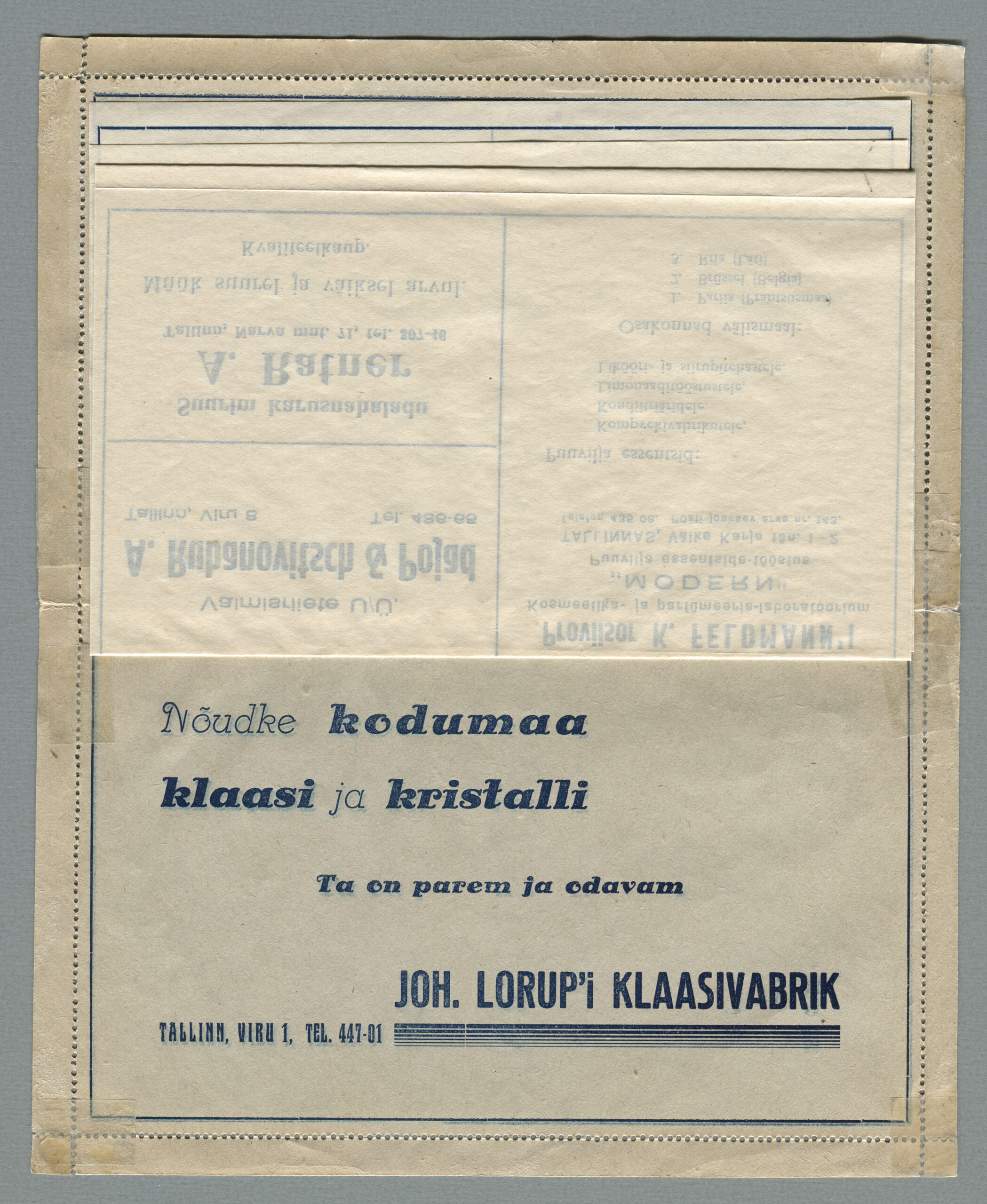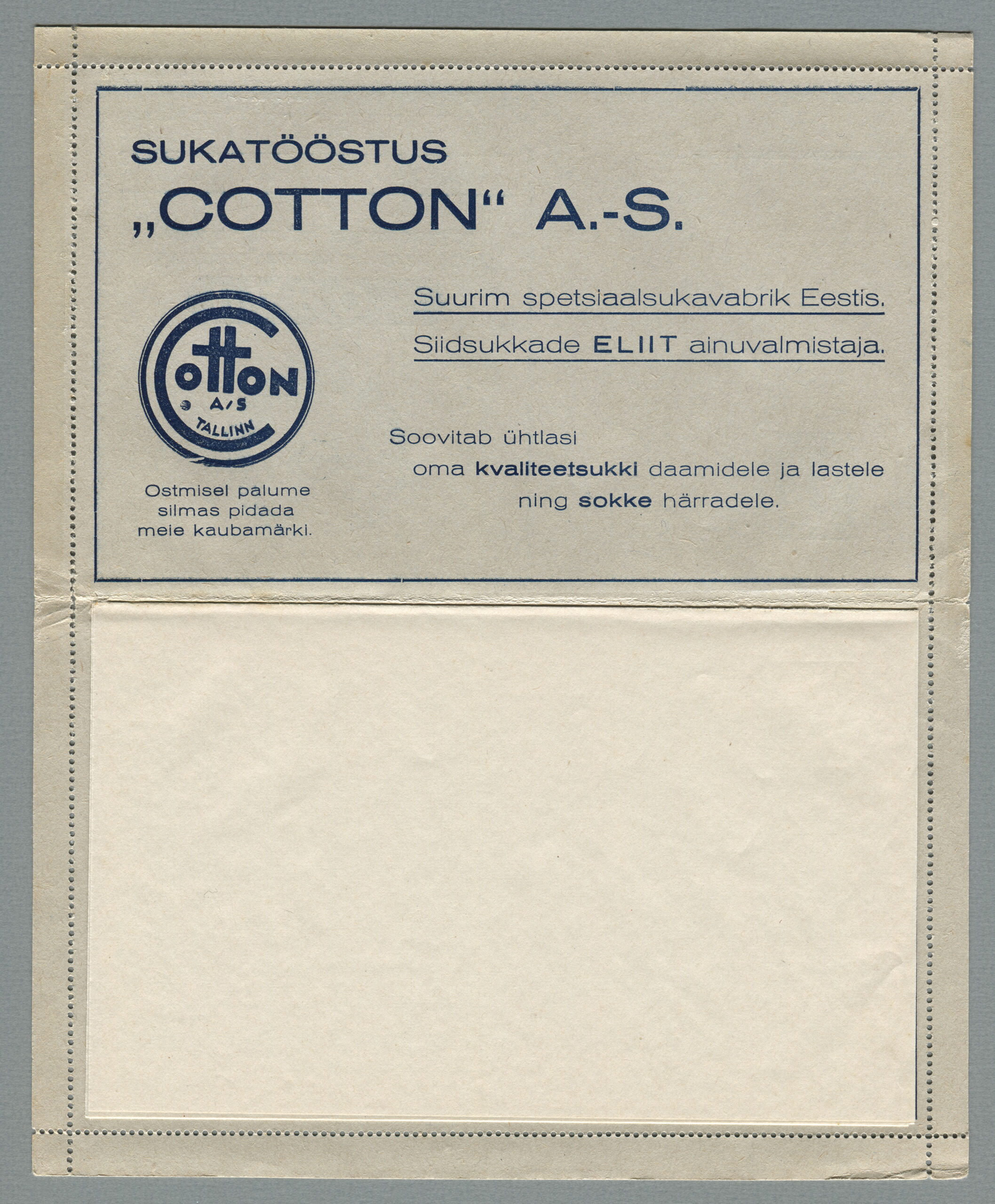 Ideena polnud reklaamiga varustatud tervikasjad tegelikult midagi uut. On teada, et neid esines Tsaari-Venemaal, ka mujal. Mõnel kaartkirja seerial (nr 2, 5, 6, 18) on märgitud Pat. Berne 6538/37, millest võib järeldada, et idee oli patenteeritud.