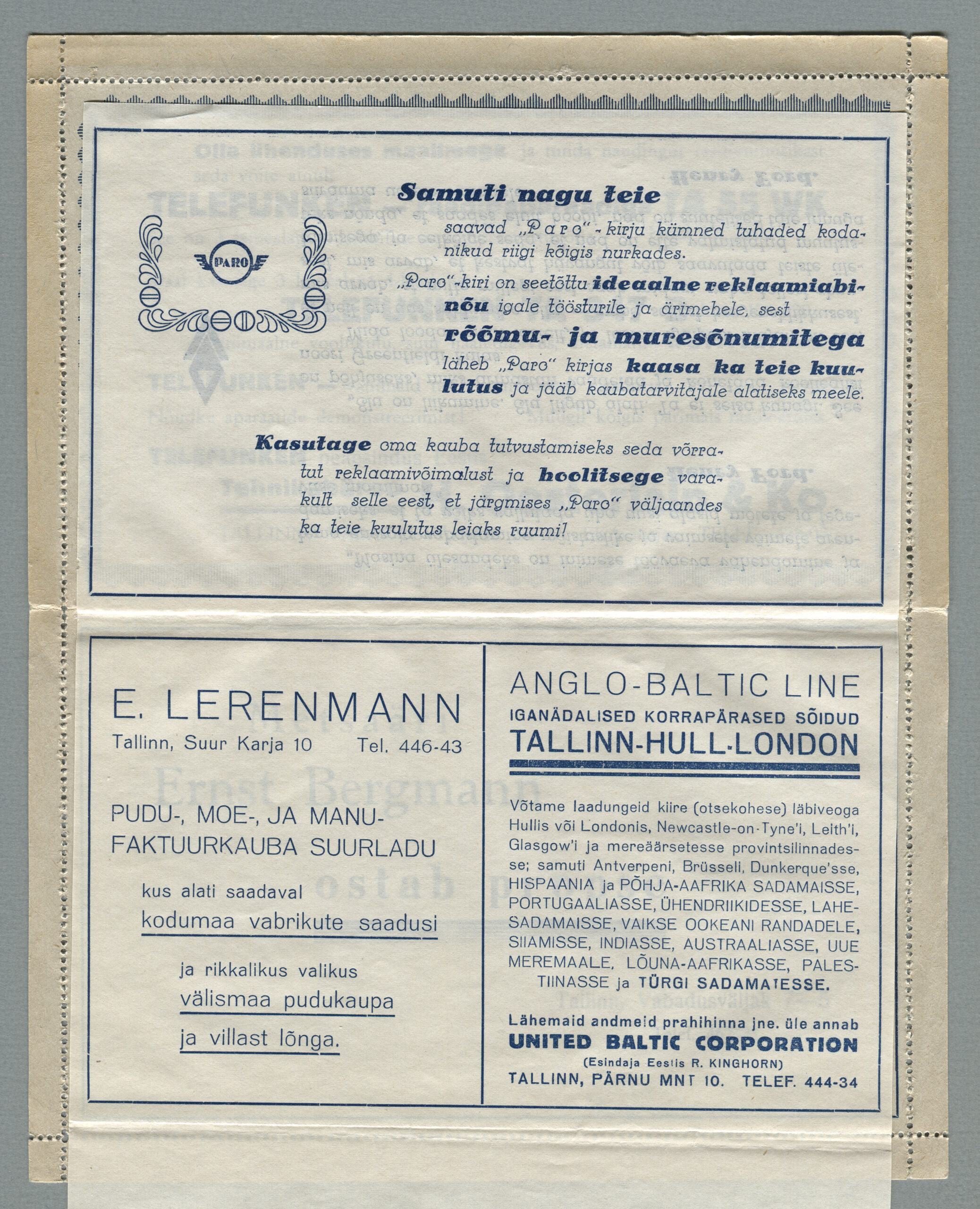 Heinrich Köhleri oksjonimaja sõnutsi müüsid nad Paro kaartkirjade täiskomplekti 2015. aastal, mis oli osa suurest Dr. Hubert Schrodinger Balti filateeliakollektsioonist. Oksjon toimus 25. septembril 2015. aastal Wiesbadenis. Puhas, väikeste vigadega PARO kaartkirjade kogu alghind oli 2000 eurot ja see müüdi 2400 euroga.