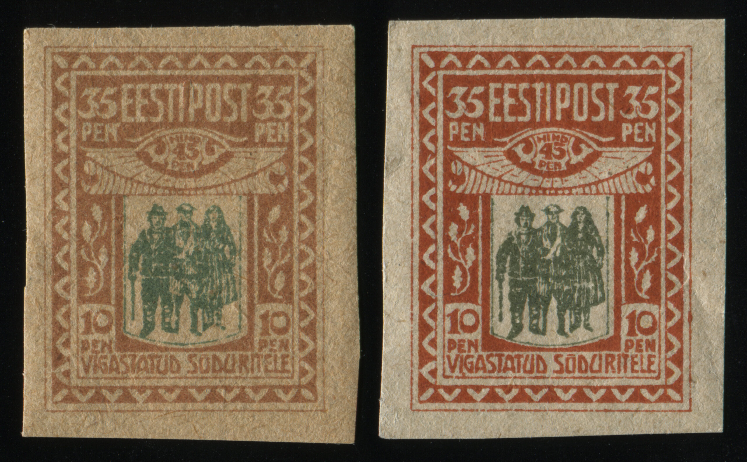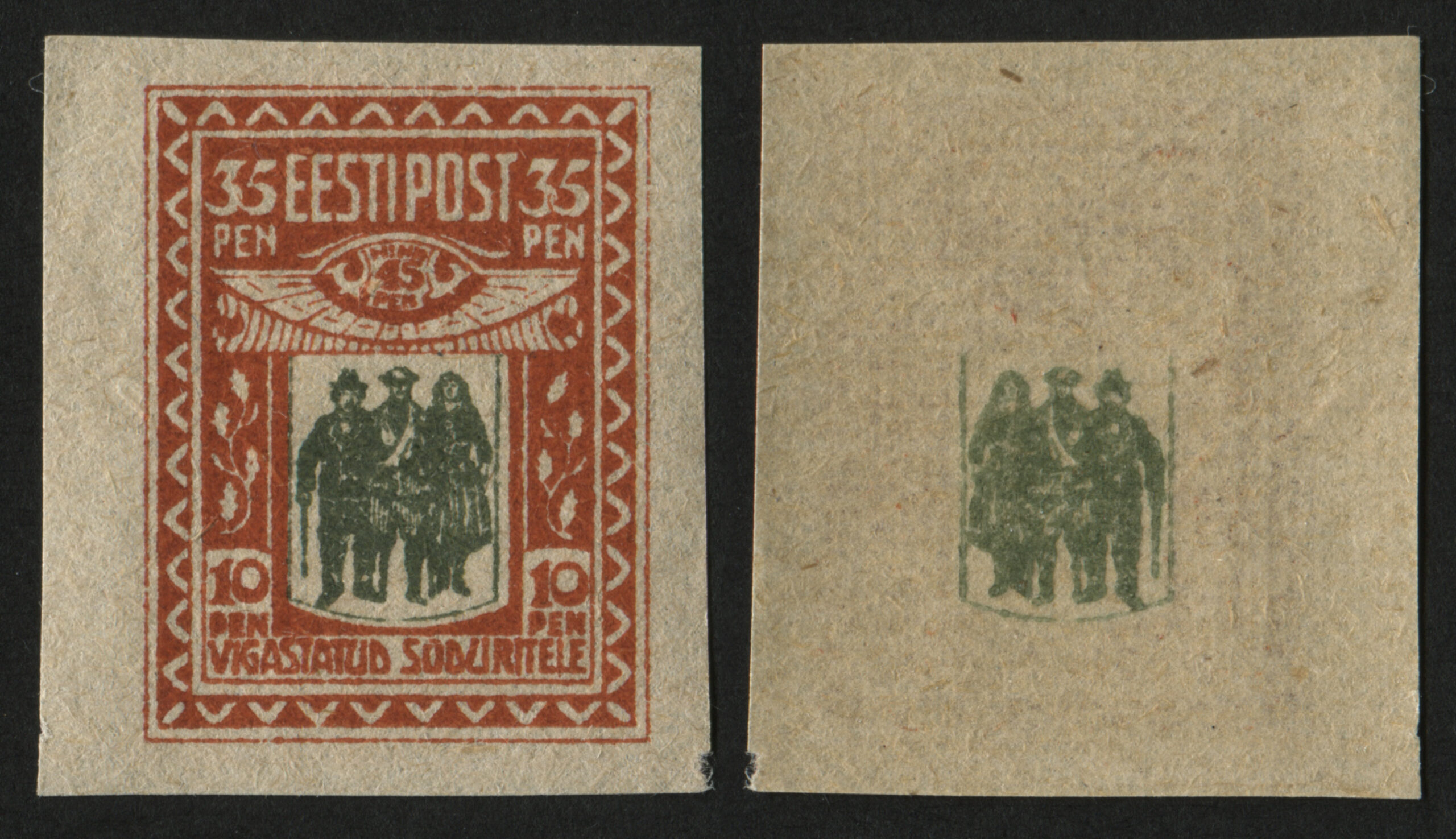 Karl-Ferdinand Triumph (27.11.1900–30.11.1941) oli postiametnik ja margikunstnik ning Valgetähe V klassi teenetemärgi kavaler (1938), Kaitseliidu liige. Eduard Poland (27.12.1883–18.08.1957). Aastatel 1901–1906 õppis ta Tallinnas saksa teatri kunstniku V. Marischi, 1903 Peterburis Maria teatri dekoraatorite ja Tartu F. Von Bazani juures ning 1907–1909 Berliinis mitmes eraateljees ja kunstkäsitöömuuseumi kunstikursustel. Tarbegraafikuna kujundas rahamärke, post- ja tempelmarke, pakendeid jm.