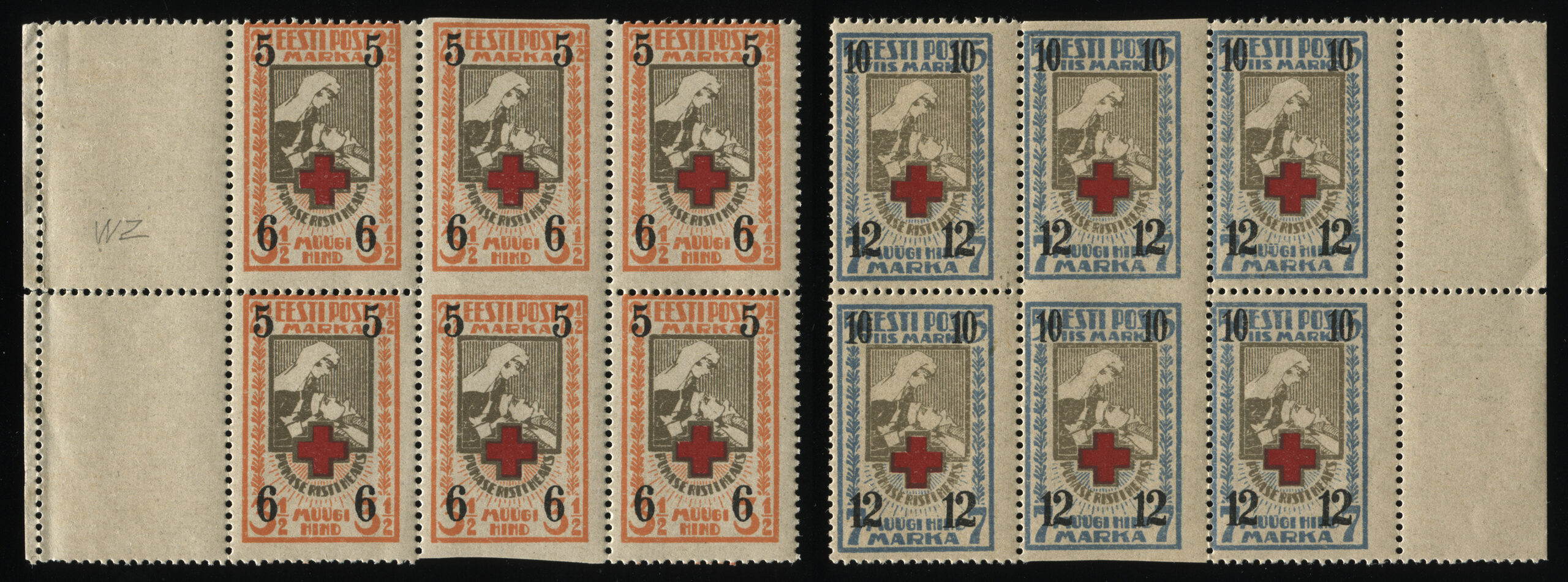 Erakogu„Punase Risti heaks“ mõeldud markide variandid: lõigatud, hammastatud ja lõigatud margid horisontaalse hammastusega. Lõigatud margid olid müügil 1.08.1921–15.06.1926, hammastatud margid 26.04.1922–31.12.1927. Margid kehtisid kuni 29.02.1928.