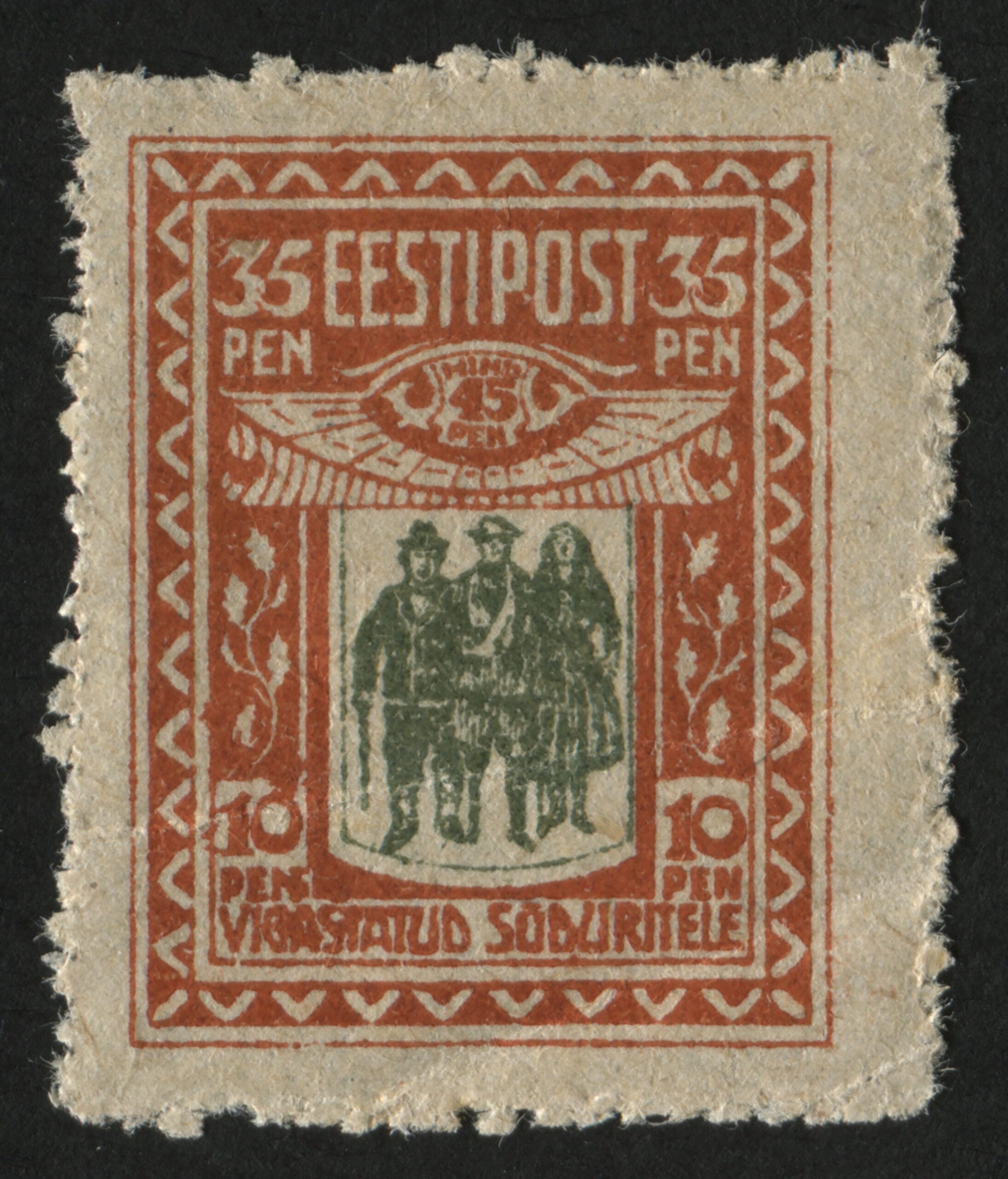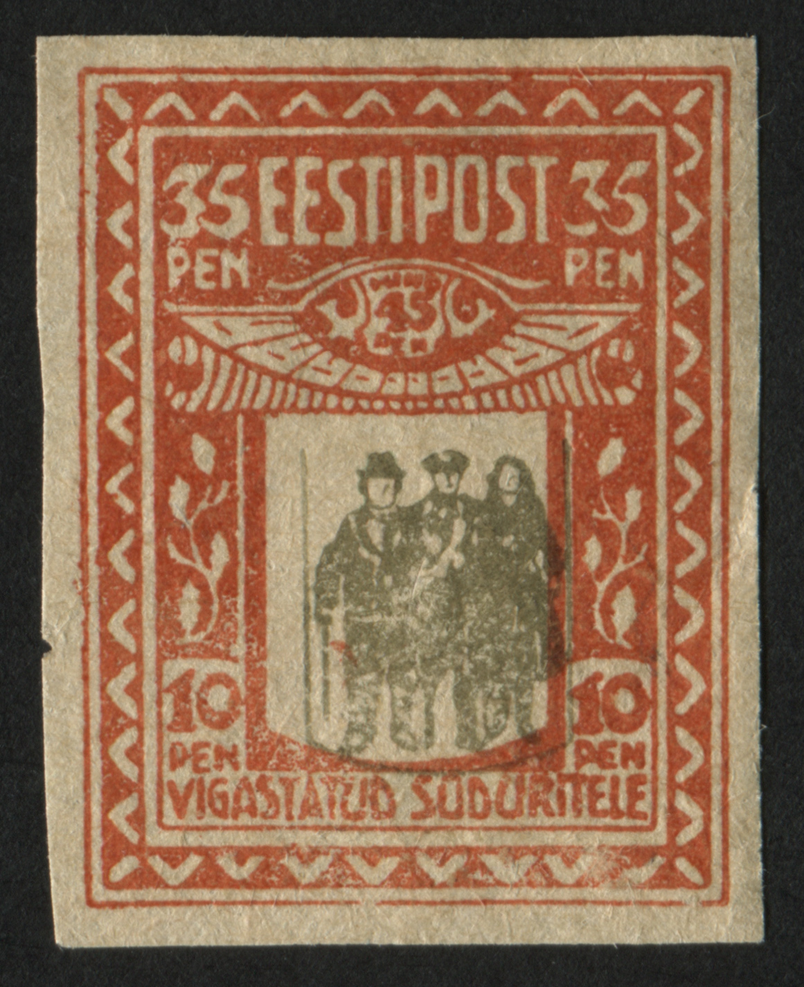 Vigastatud sõduritele Eesti esimesed juurdemaksuga margid „Vigastatud sõduritele“ anti välja 22. juunil 1920 (70 + 15 penni) ja 26. juunil 1920 (35 + 10 p). Need kehtisid kuni 30. juunini 1926. Sügisel 1920 tehti postmarkidele ületrükk. 6. oktoobril tulid käibele margid ületrükiga 2 marka (70 + 15 p) ja 6. novembril ületrükiga 1 mark (35 + 10 p). Markide postimüük toimus kuni 31. detsembrini 1921, ilma lisamaksuta võeti need taaskasutusele 27. aprillil 1922. Margid nominaaliga 1 mark kehtisid 31. märtsini 1926 ja 2 marka kuni 31. detsembrini 1940.