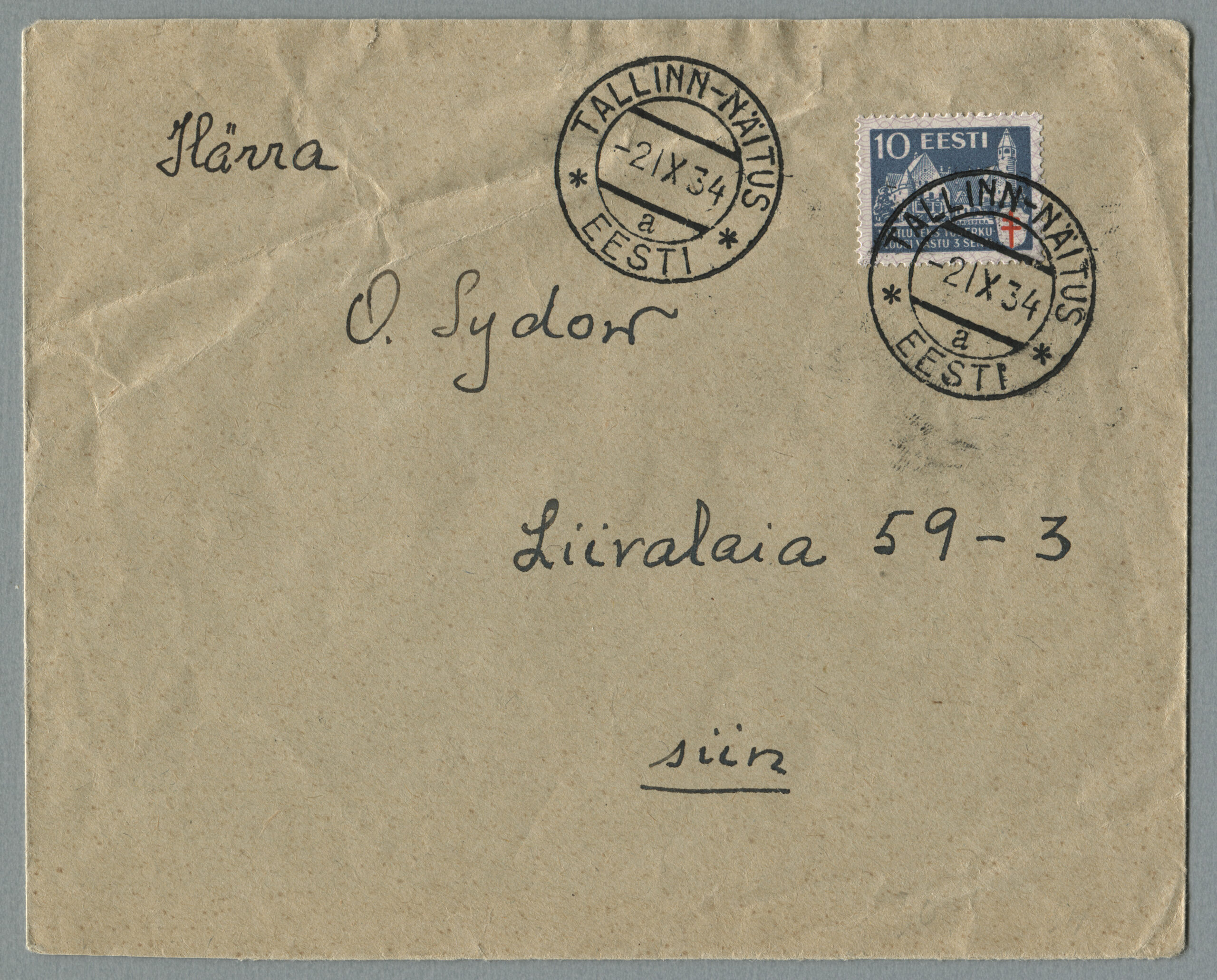 ERMi koguKohalik kiri. Tallinn 21.10.1934. Eritempel „TALLINNA NÄITUS 21.10.1934“.