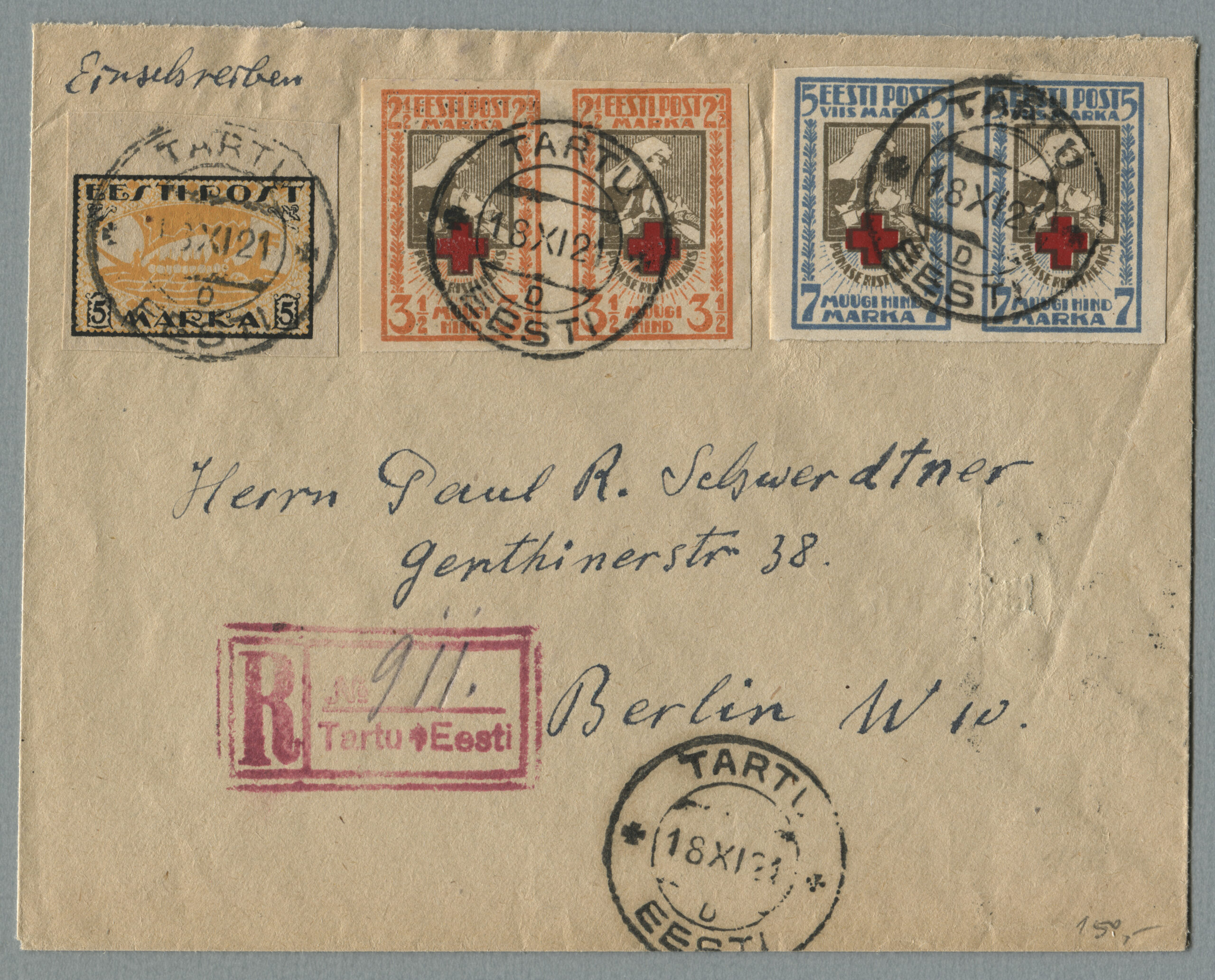 ERMi koguTähitud kiri Tartust Berliini, 18.11.1921.