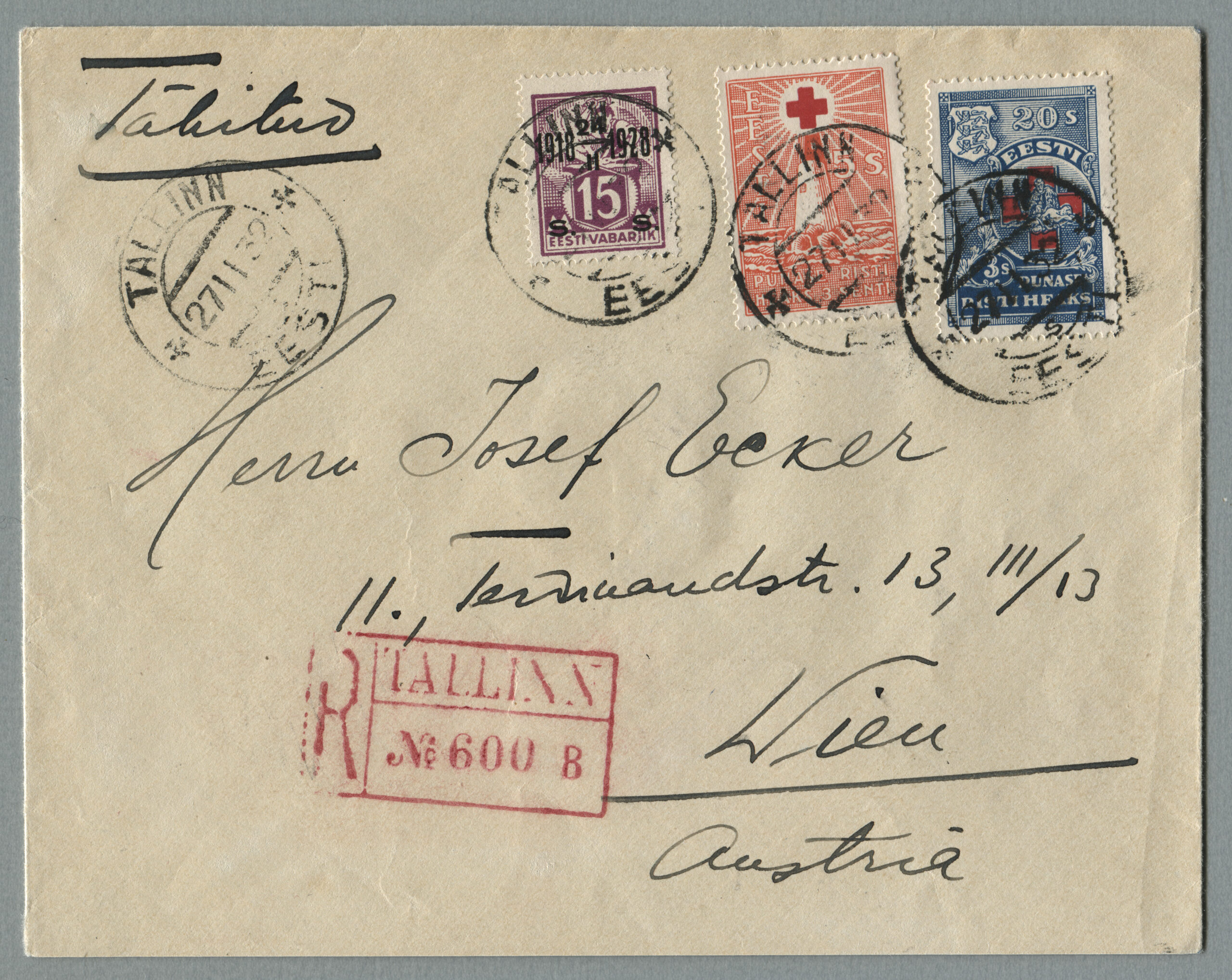 ErakoguTähitud kiri Tallinnast 27.11.1932 Viini.