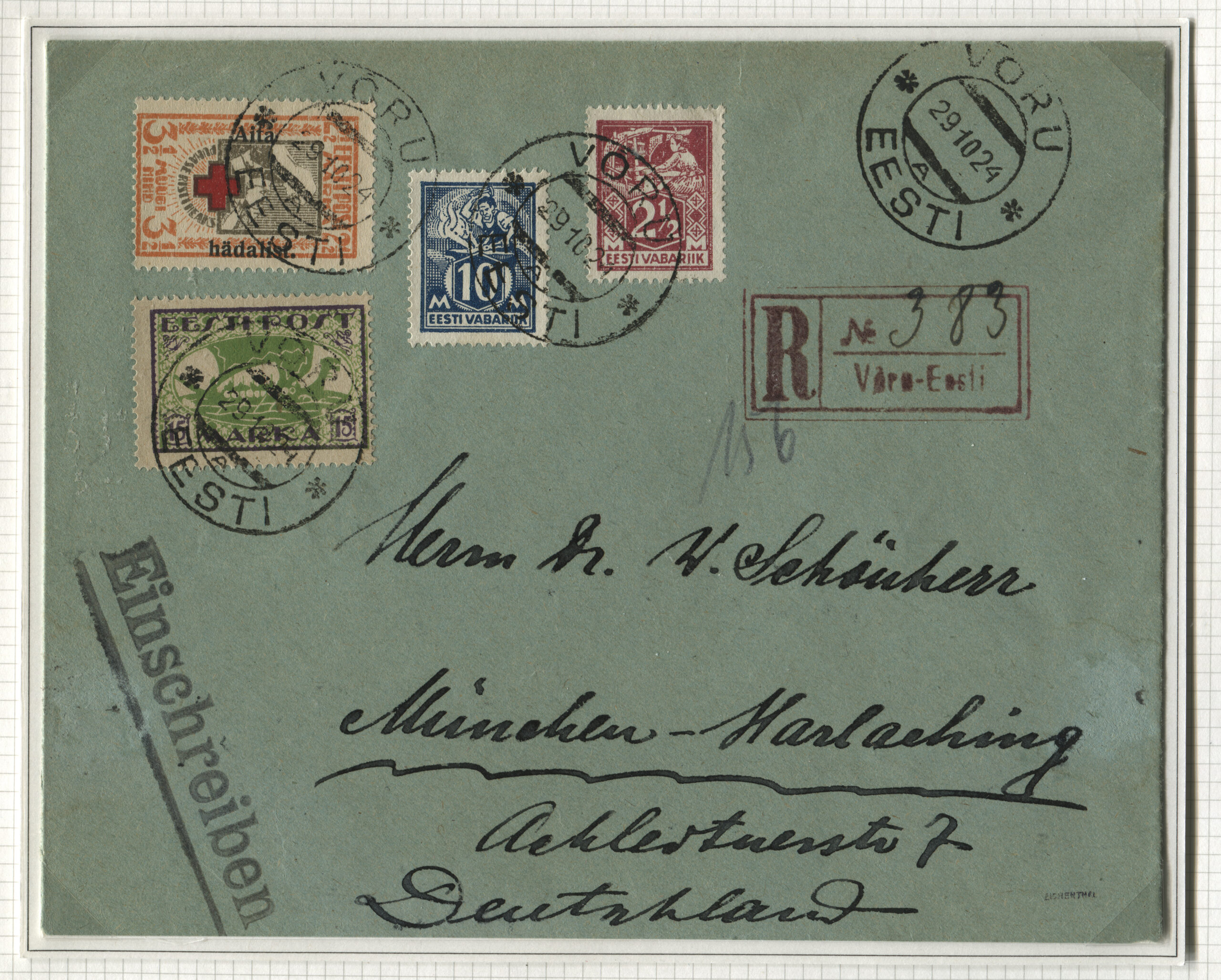 ERMi koguTähitud kiri on saadetud Võrust 29.10.1924 Münchenisse.