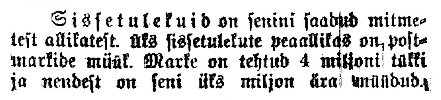 Postimees, nr 176 (8.08.1921): „Nende markide ostmisega toetate Eesti Punast Risti. Ärgu jätku keegi oma väikest annet toomata või see on iga kodaniku kohus.“
