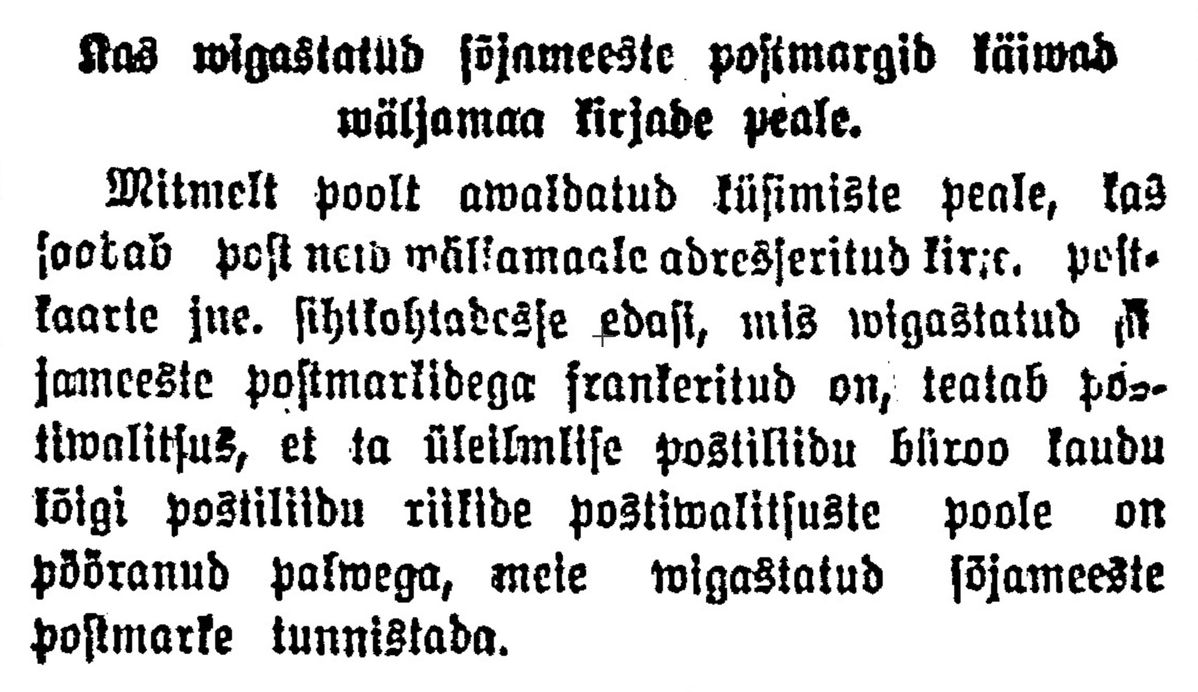 3. üleriiklikust vigastatud sõjameeste kongressist teeb ülevaate Päewaleht nr 240 (22.10.1920), puudutades põgusalt ka postmarke: „Sissetulekuid on senini saadud mitmestest allikatest. Üks sissetulekute peaallikas on postmarkide müük. Marke on tehtud 4 miljonit tükki ja nendest on seni üks miljon ära müüdud.“