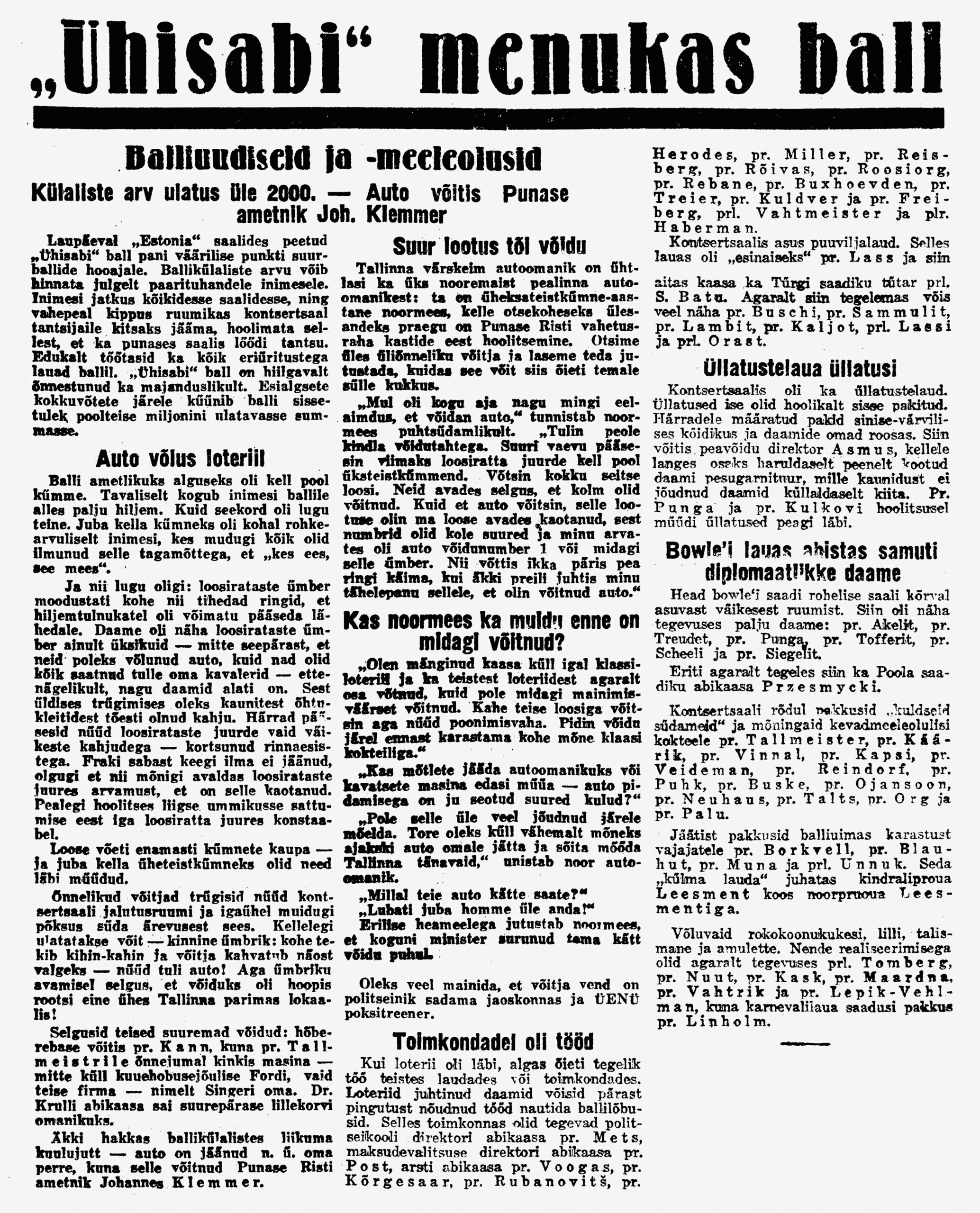 ERMi koguTempel Tallinn „Estonia“ 27.02.1937 oli kasutusel ainult kuus tundi sihtasutuse Ühisabi korraldatud heategevuslikul suurballil „Estonia“ saalides.