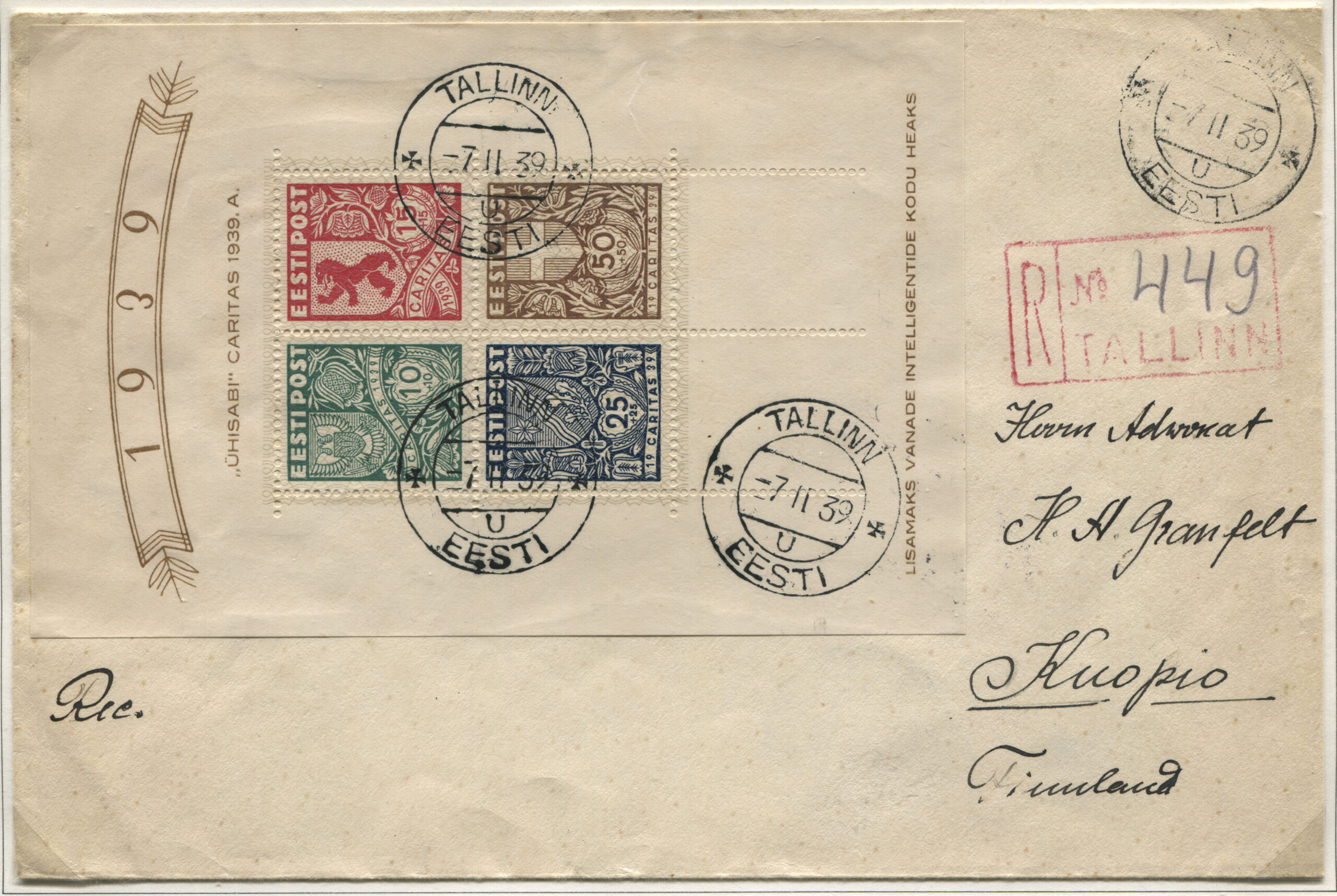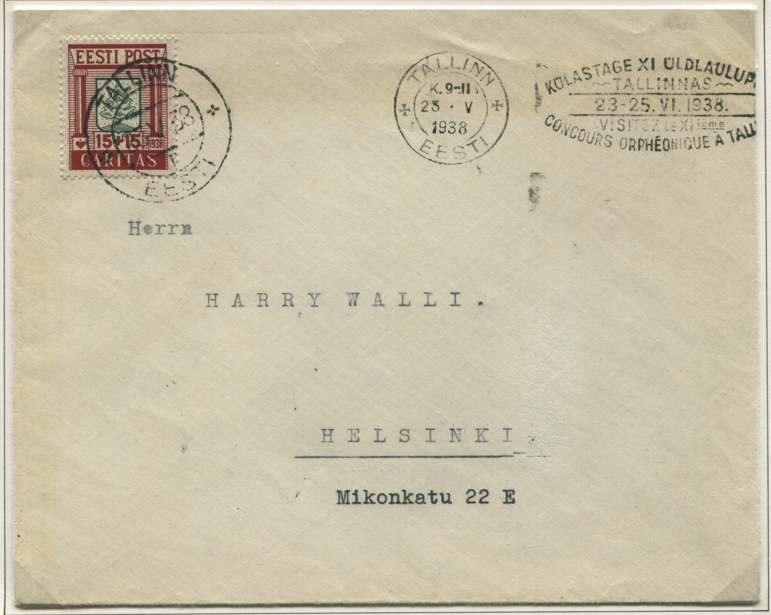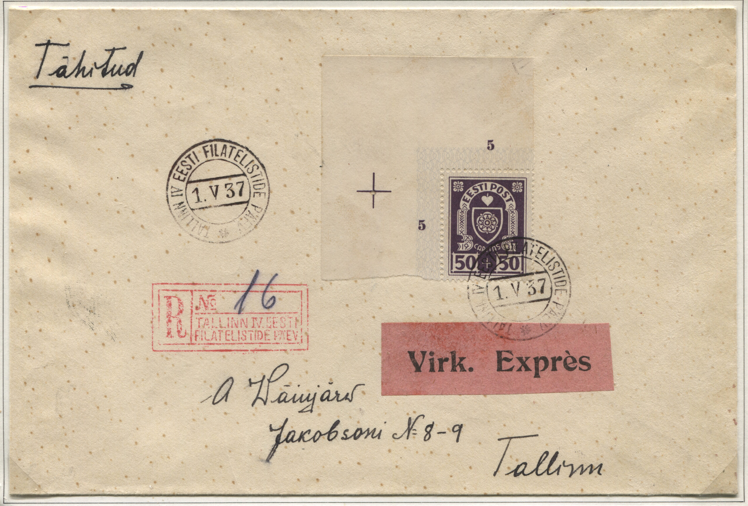 ERMi koguTähitud kiri eritempliga „Tallinna IV Eesti filatelistide päev“ 1.05.1937, saadetud Tallinna.