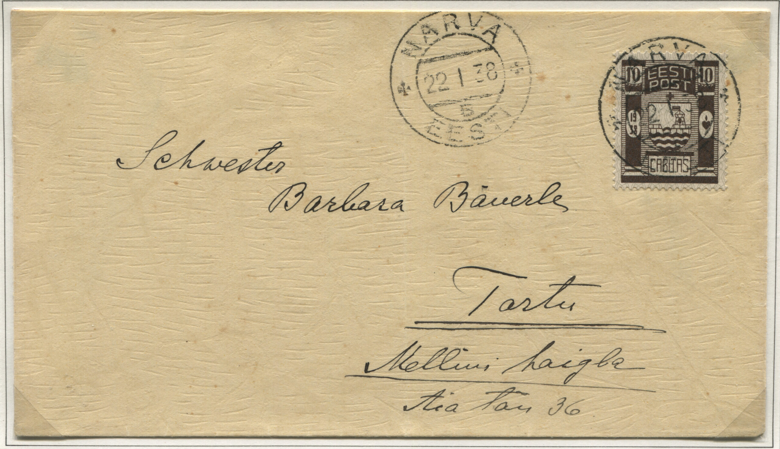 ERMi koguTähitud kiri (kohalik) saadetud Tartus 27.09.1938.