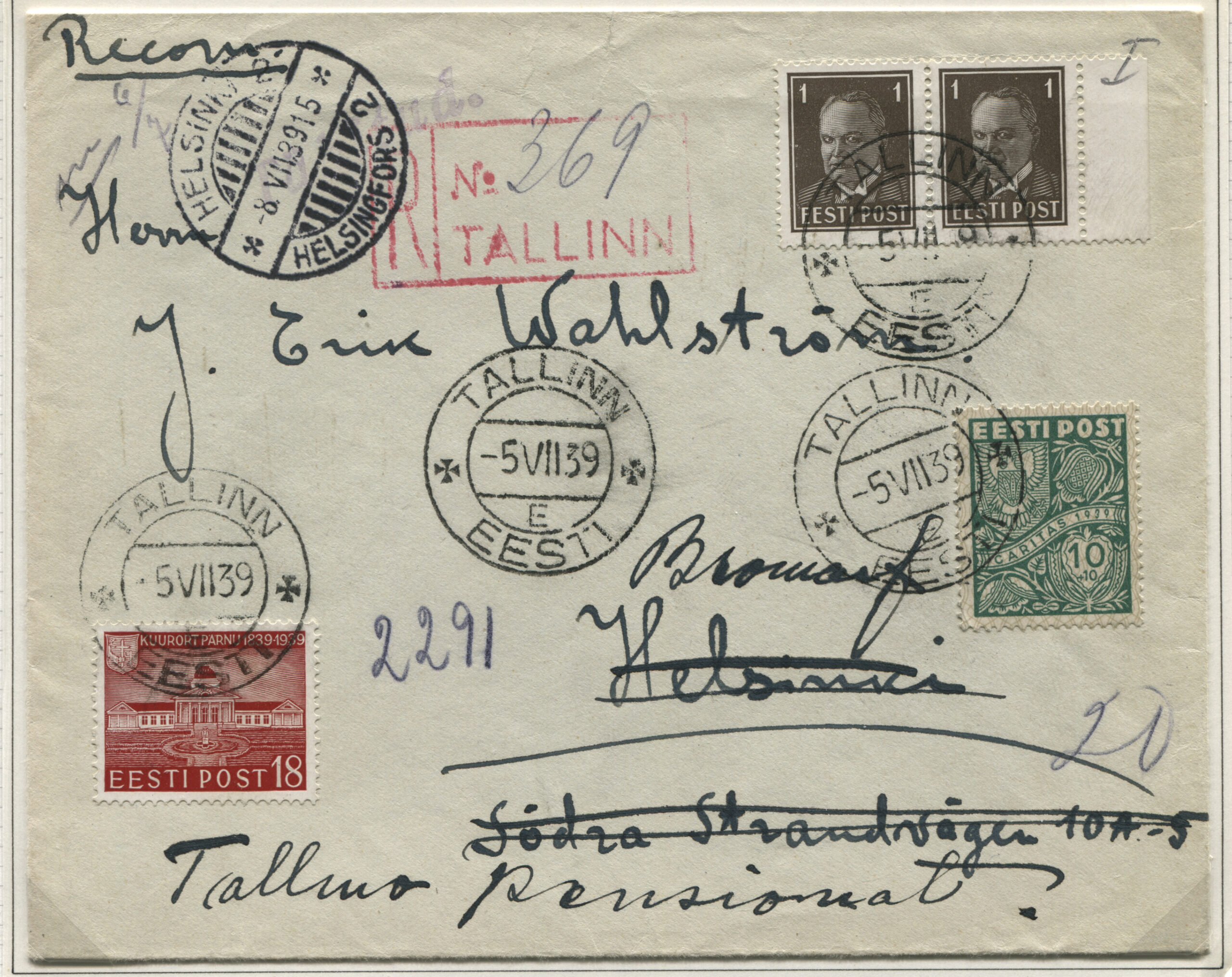 ErakoguTähitud kiri Tallinnast 5.07.1939 (Helsingi 6.07.1939) Bromarfi (Soome) 10.07.1939.