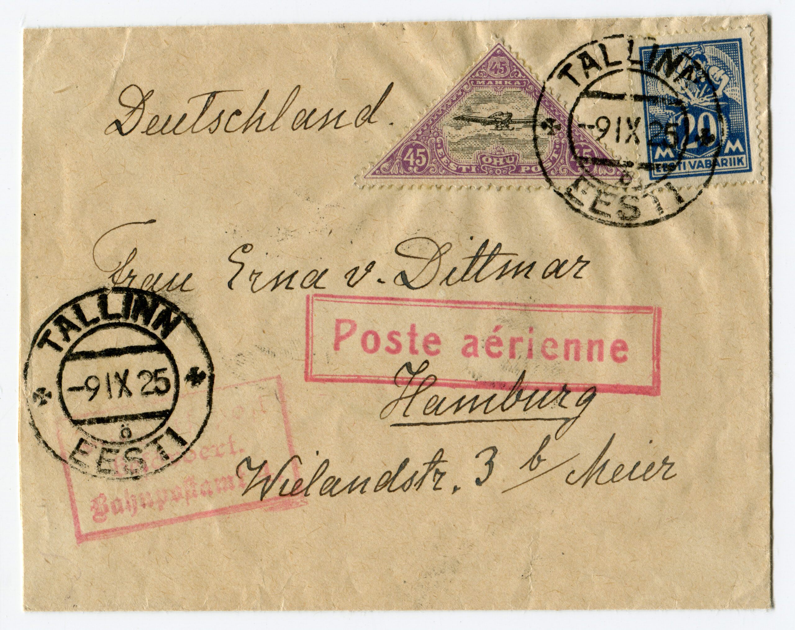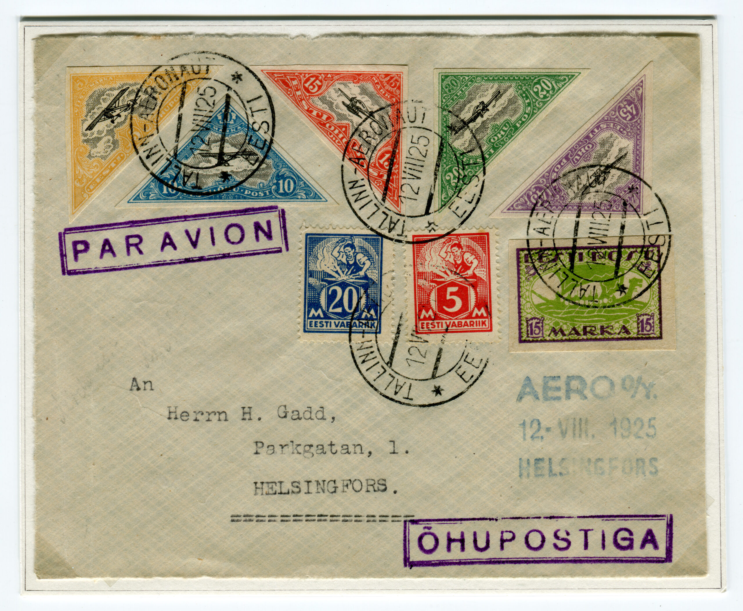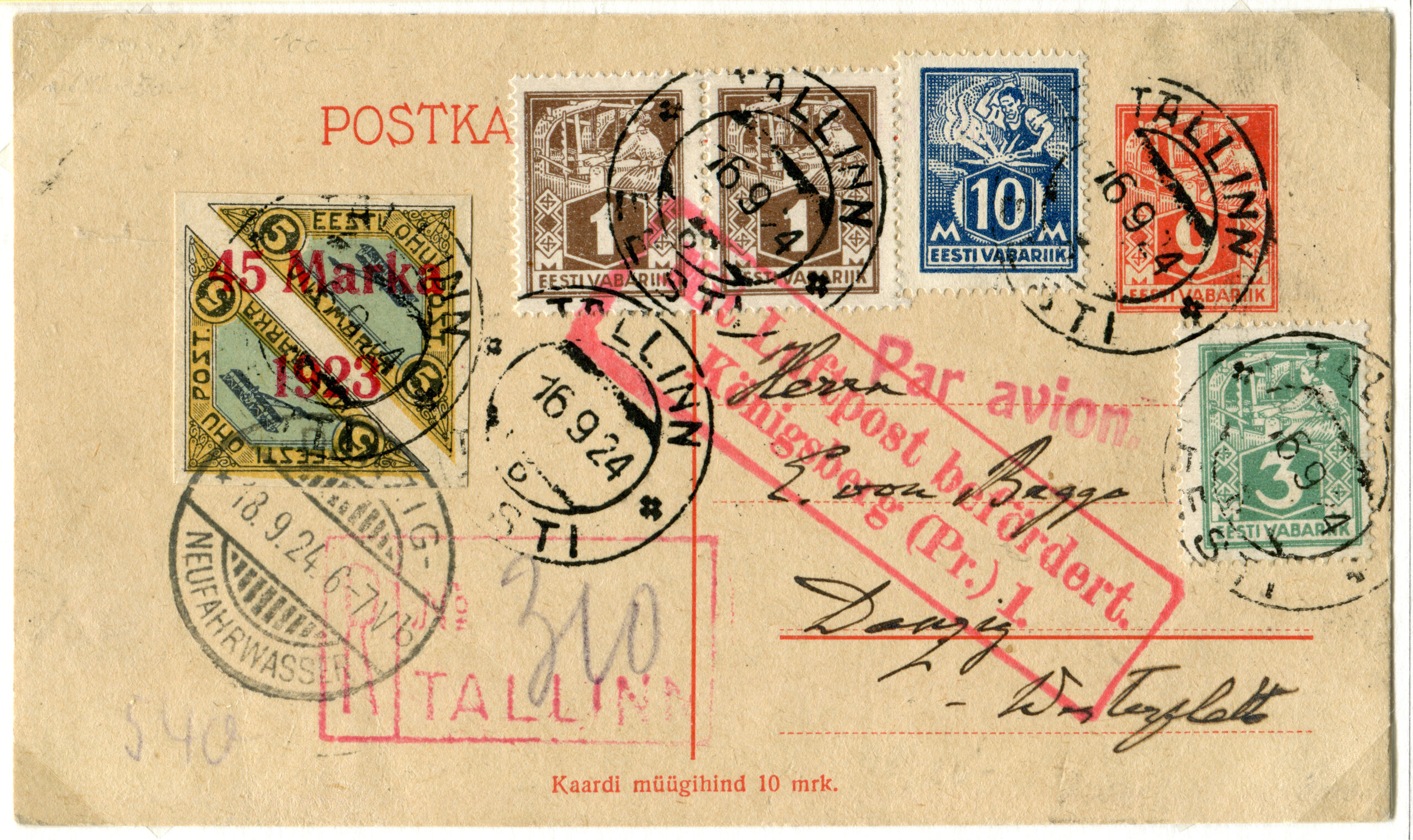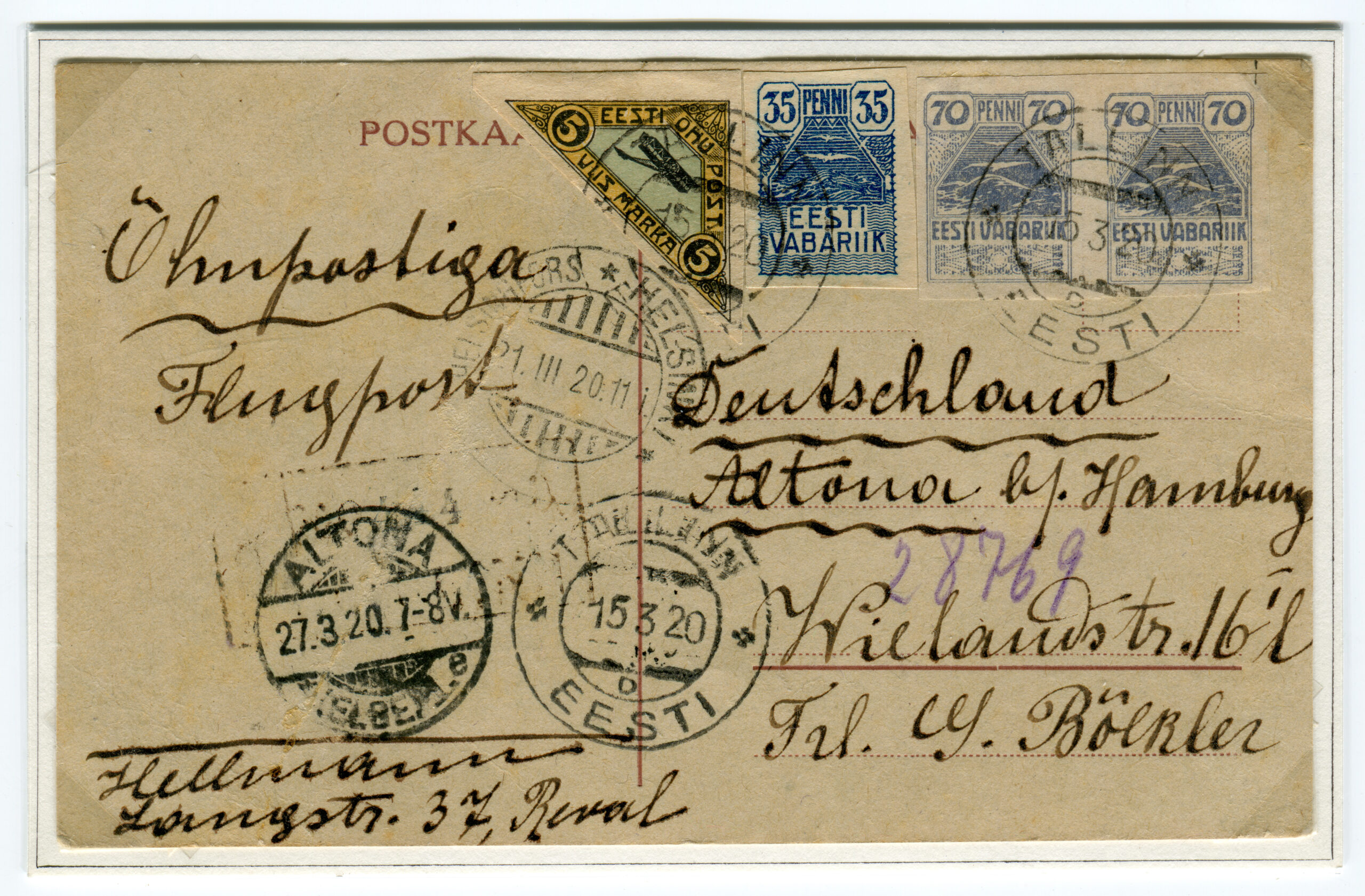 Oktoobrini 1923 oli lennupostiühendus Tallinna ja Helsingi vahel juhuslik. 1. oktoobril 1923 avati aga korrapärane lennuühendus Tallinna-Helsingi ja Tallinna-Riia vahel, kust oli ühendus ka Königsbergiga. Samal päeval võeti kasutusele varem ilmunud õhupostimargid hinna ületrükiga 5, 10, 15, 20 või 45 marka.