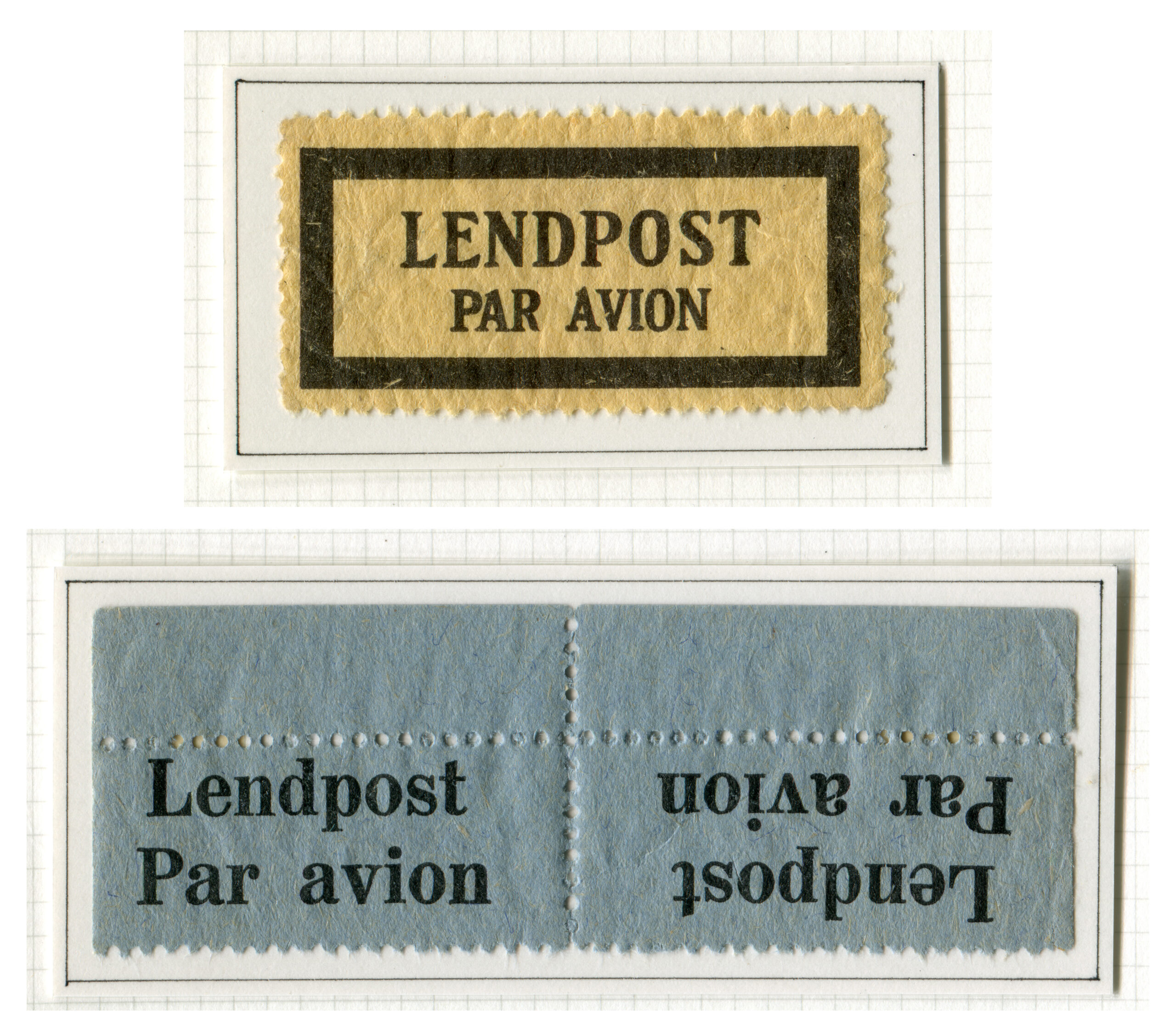 Aeronaut võttis oma kontoris templi kasutusele 8. juulil 1925. Esimesed kollased hammastatud lipikud „Lendpost“, „Par Avion“ võttis Postipeavalitsus käibele novembris 1927. Järgmise aasta detsembris asendati need uute sinist värvi lipikutega „Lendpost“, „Par Avion“.
