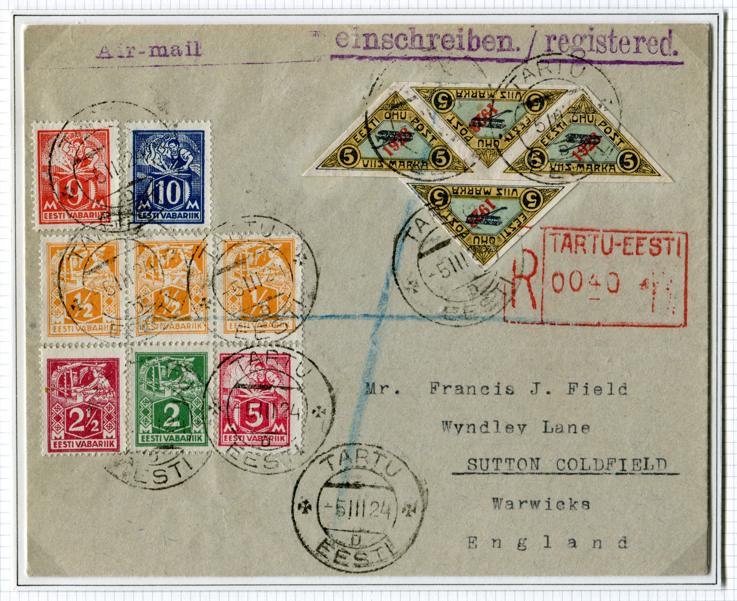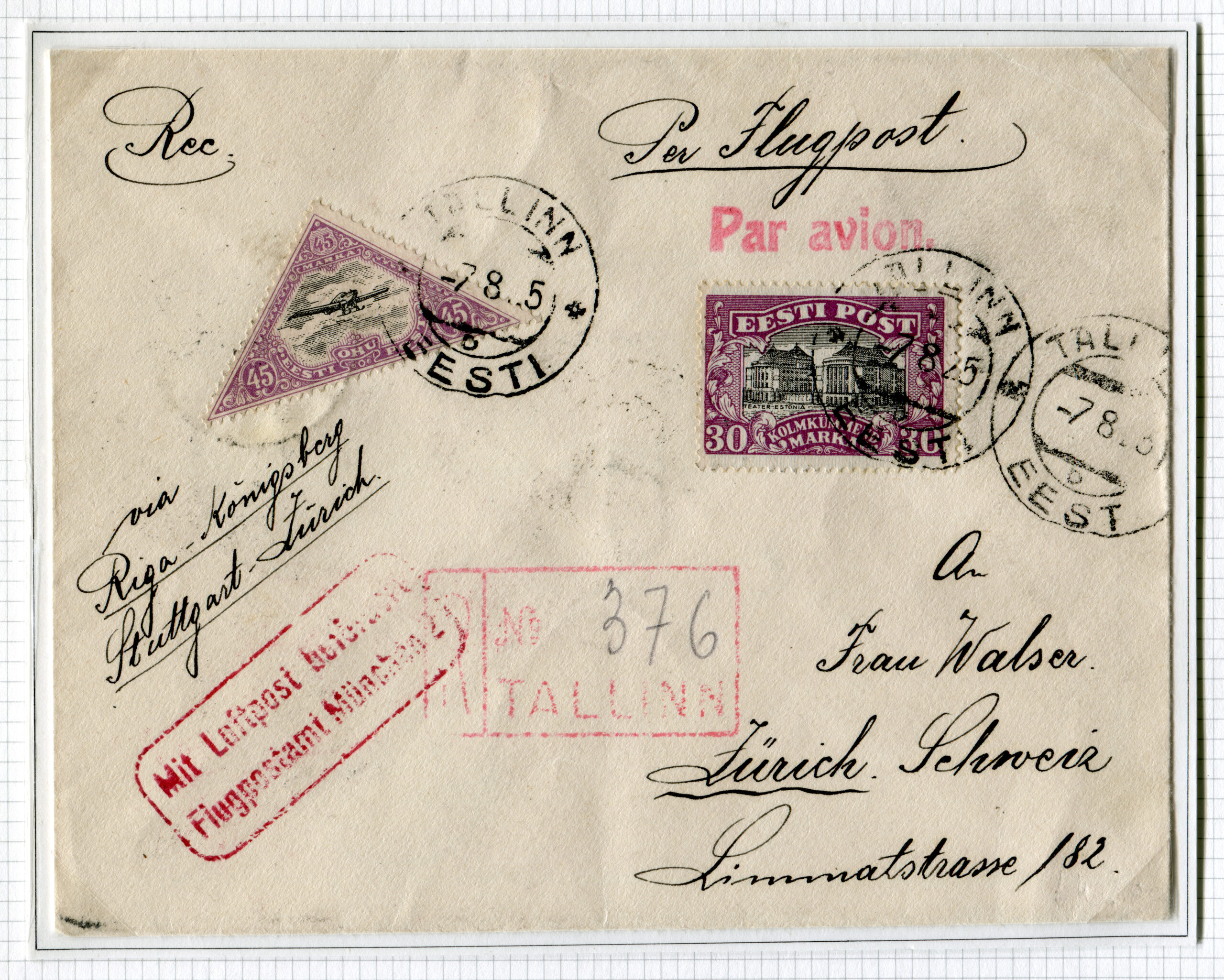 Eesti oli üks esimesi riike maailmas, kus võeti kasutusele lennuposti erimark (USA 1918, Saksamaa 1919) ja esimene kolmnurkne lennupostimark.