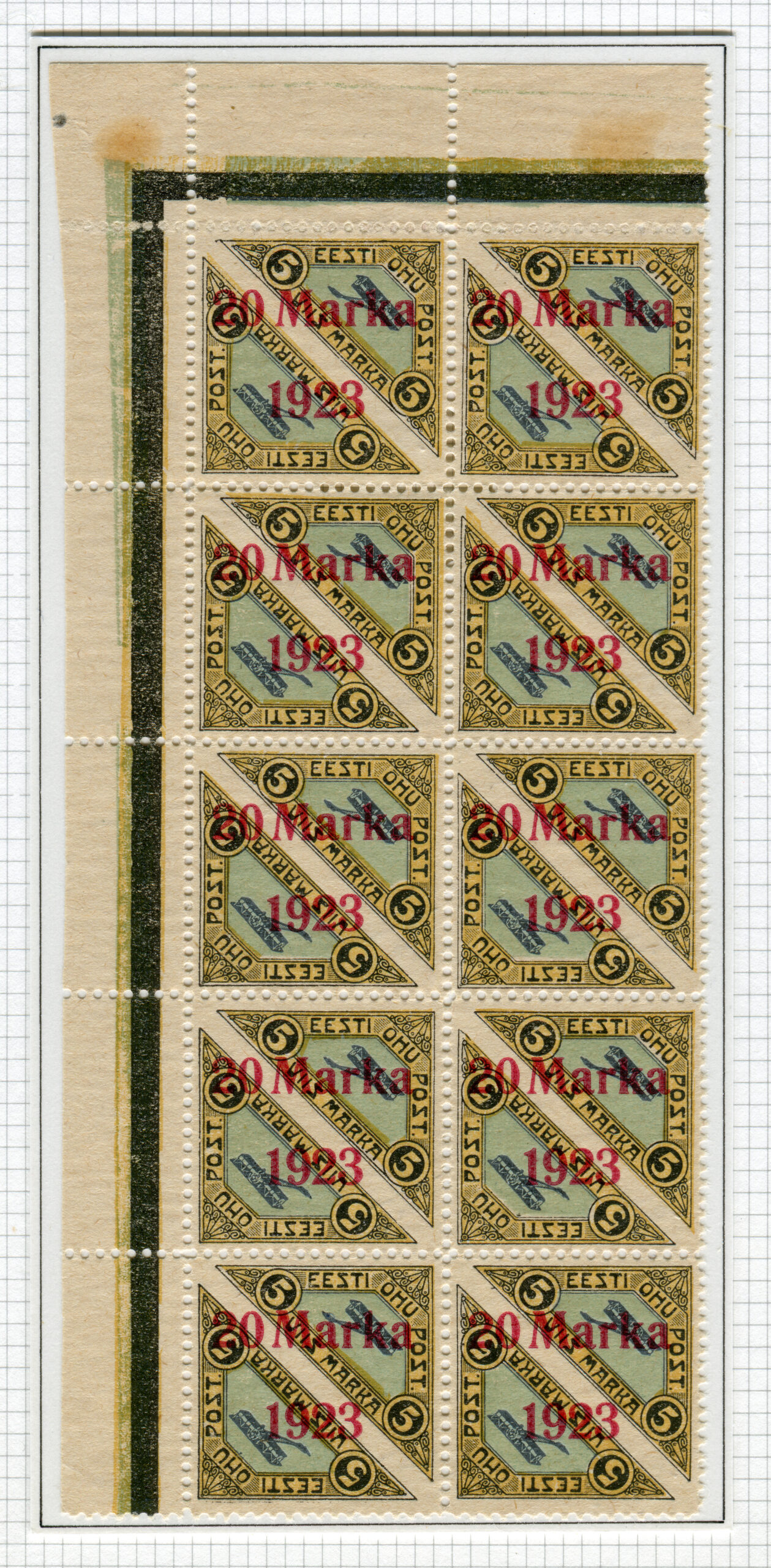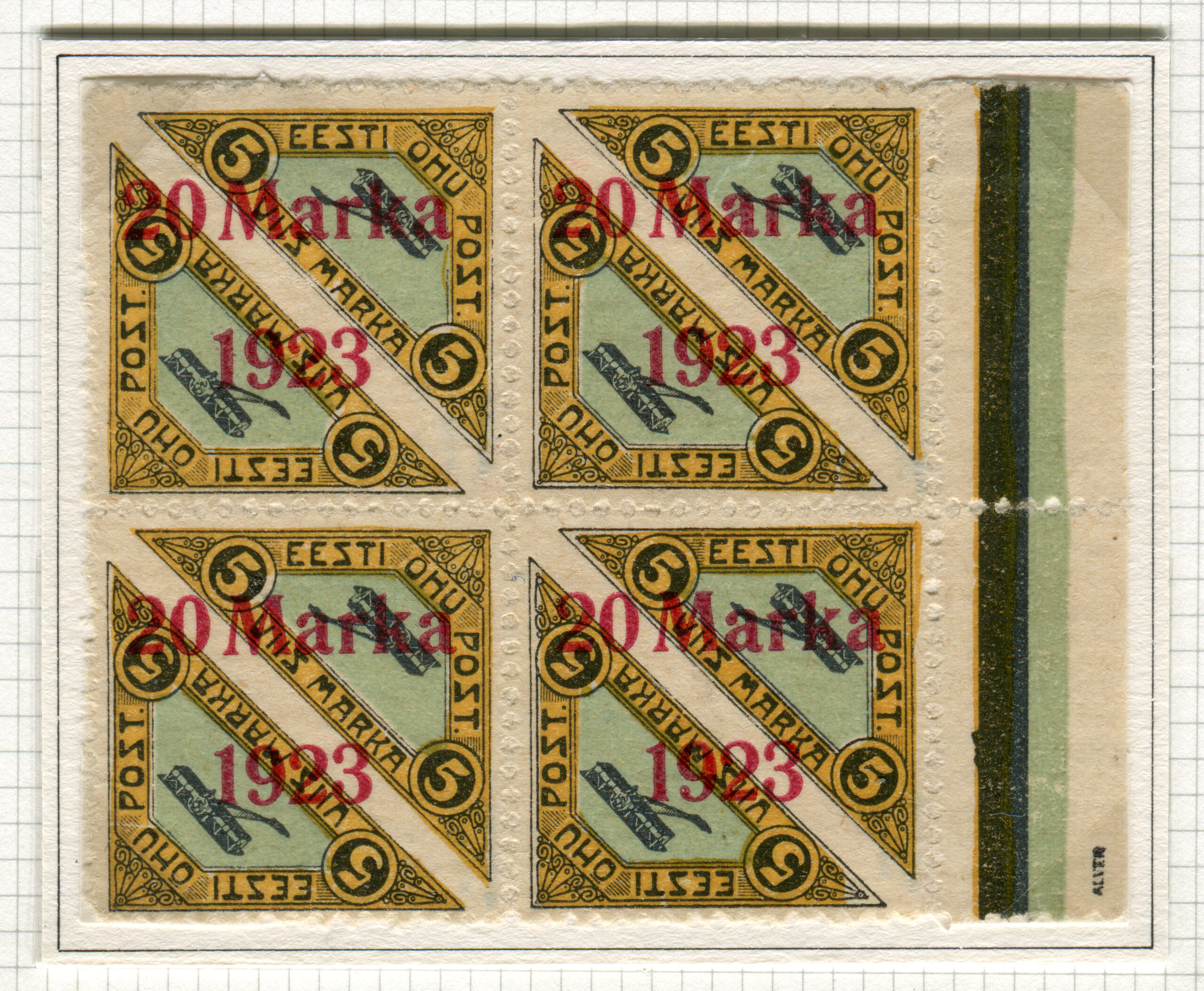 Õhupostimargi ületrükk, 20 marka, 1923. Aeronaudi perforatsioon.