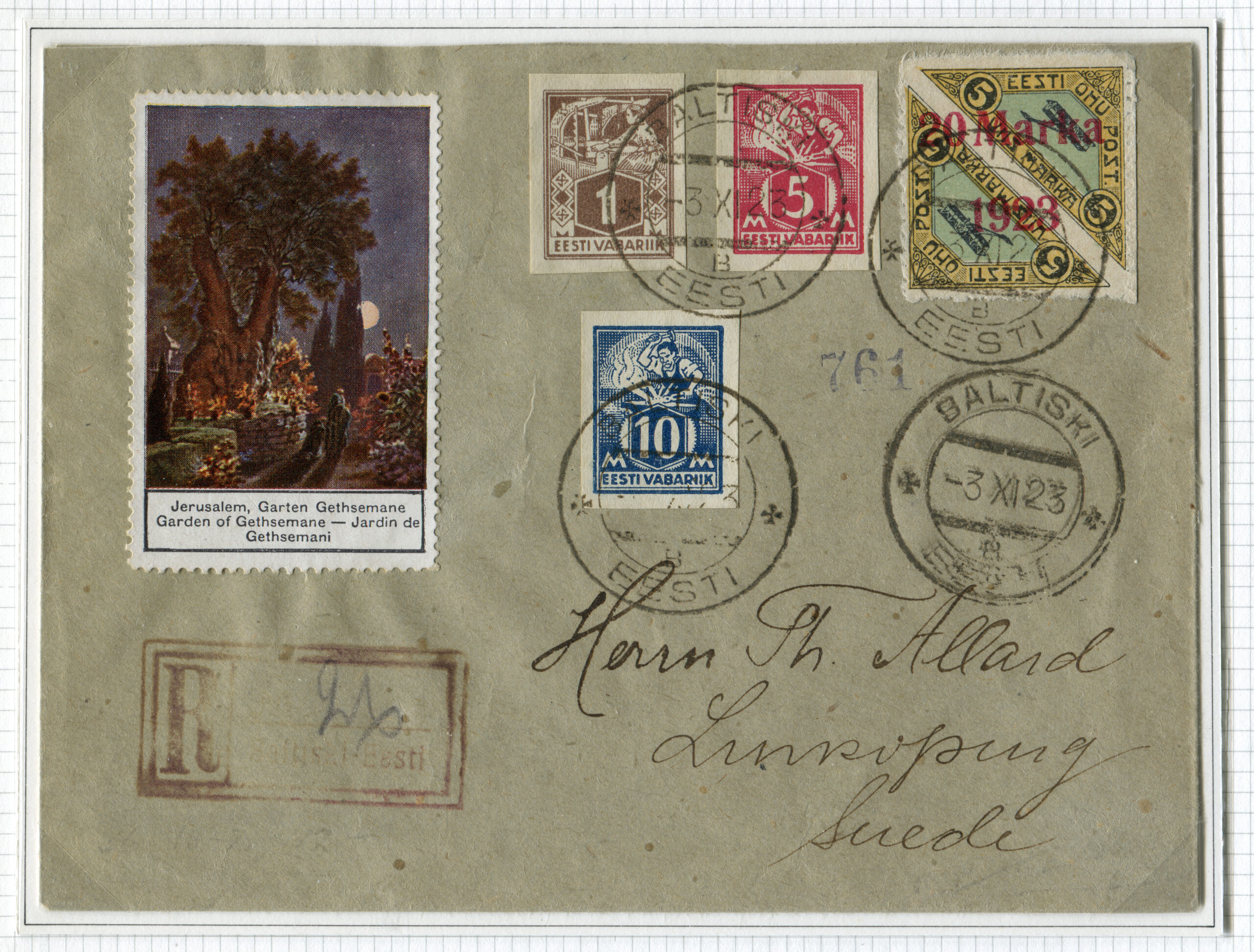 Kiri on saadetud Paldiskist 3.11.1923 Linköpingisse (Rootsi) Helsingi kaudu.