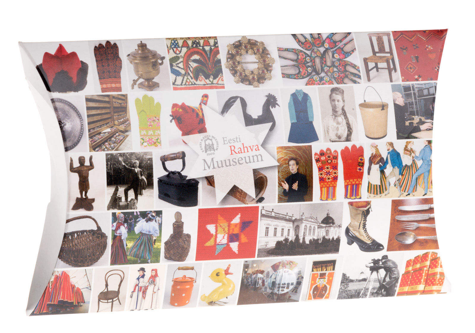 Muhu pätid, kuivainete purgid ja soojad käpikud. Kinkekarbil on pisike valik kõigest põnevast, mida ERMi kogudest võimalik leida on. Tugevast kartongist kinkekarp mõõtudega 15 x 11 x 3 cm