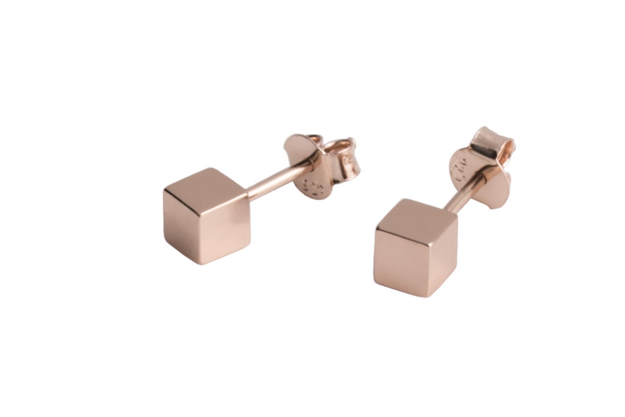 Kõrvarõnga mõõdud: 4 x 4 x 4 mm, hõbedast kõrvarõngad on kaetud roosa kullaga.